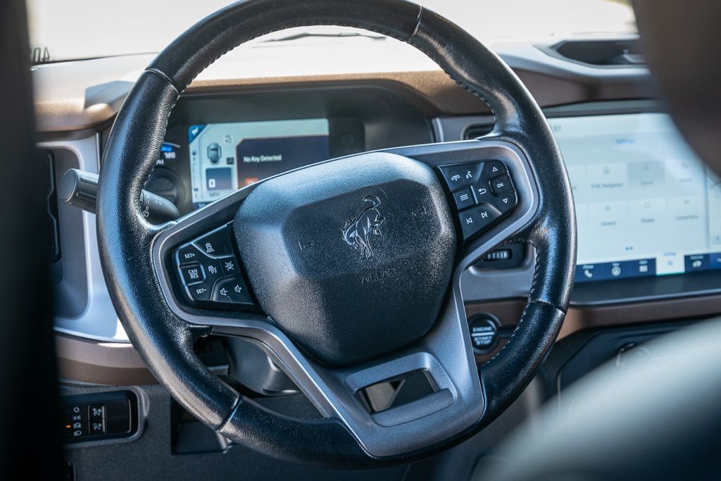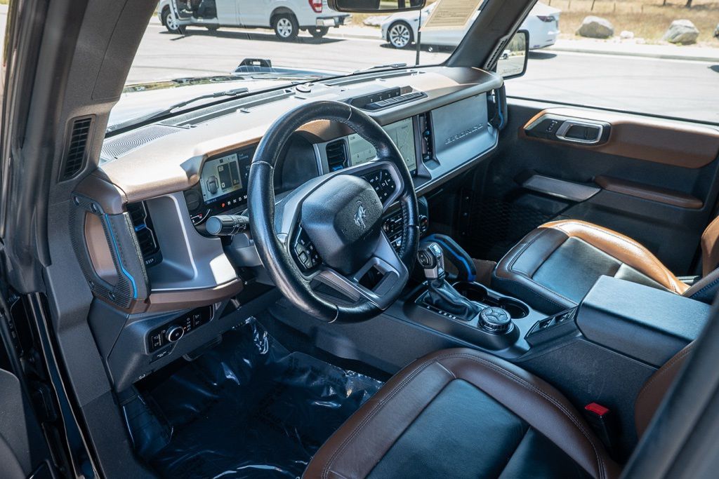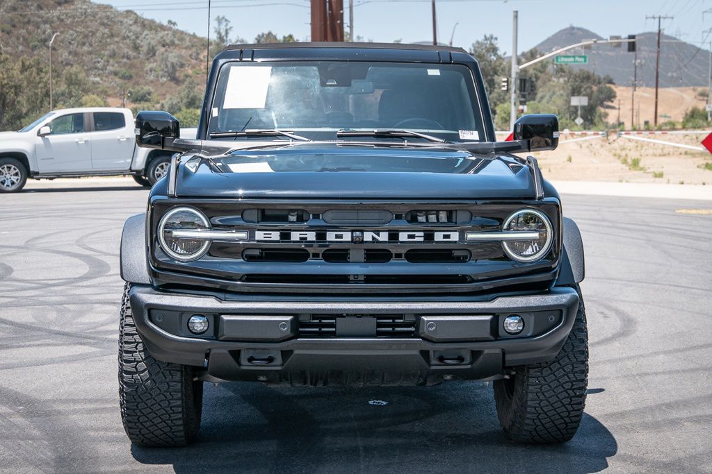 Shadow Black 2023 Ford Bronco 4WD 10-Speed Automatic 2.7L EcoBoost V6 10 Speakers w/Subwoofer, 12" LCD Capacitive Touchscreen w/Swipe Capability, 18" Bright Machined Aluminum Wheels, 2 Smart Charging USB Ports In Dashboard, 360-Degree Camera, 4.7 Final Drive Ratio, Adaptive Cruise Control, Additional Sound Deadening, Air Conditioning, Auto High-beam Headlights, Automatic temperature control, Connected Built-In Navigation, Equipment Group 314A Lux Package, Evasive Steering Assist, Exterior Parking Camera Rear, Front dual zone A/C, Front Parking Sensors, Heated front seats, Heated Steering Wheel, High Clearance Fender Flares, High Clearance Suspension, Information on Demand Panel, Navigation system: Connected Navigation, Position-Sensitive Bilstein Shock Absorbers, Radio: B&O Sound System by Bang & Olufsen, Sasquatch Package, Sideview Mirrors, SYNC 4, Universal Garage Door Opener, Wireless Charging Pad.