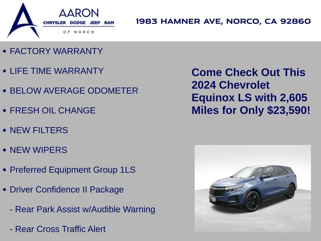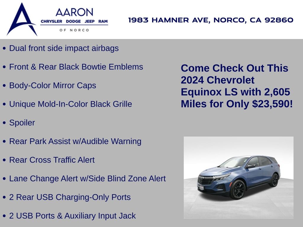 Priced below KBB Fair Purchase Price!FACTORY WARRANTY, LIFE TIME WARRANTY, BELOW AVERAGE ODOMETER, FRESH OIL CHANGE, NEW FILTERS, NEW WIPERS, Equinox LS, 4D Sport Utility, 1.5L DOHC, 6-Speed Automatic Electronic with Overdrive, FWD, 2 Rear USB Charging-Only Ports, 2 USB Ports & Auxiliary Input Jack, Alloy wheels, Body-Color Mirror Caps, Driver Confidence II Package, Dual front side impact airbags, Front & Rear Black Bowtie Emblems, Lane Change Alert w/Side Blind Zone Alert, Midnight Edition, Overhead airbag, Preferred Equipment Group 1LS, Premium audio system: Chevrolet Infotainment 3, Rear Cross Traffic Alert, Rear Park Assist w/Audible Warning, Spoiler, Sport Edition, Unique Mold-In-Color Black Grille, Wheels: 18" Gloss Black Aluminum.Clean CARFAX.CARFAX One-Owner.