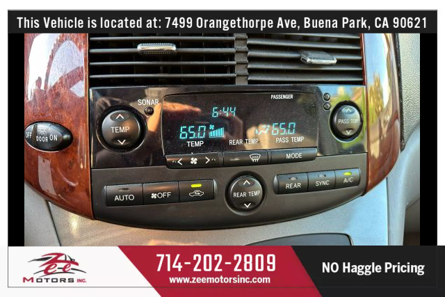 THIS VEHICLE IS LOCATED AT OUR BUENA PARK LOCATION: 7479 ORANGETHORPE AVE, BUENA PARK CA 90621. Please Call us at 657-255-4555 or 714-202-2809 or email us at BUENAPARK@ZEEMOTORSINC.COM To Check Availability. **** SIENNA XLE LIMITED ALL WHEEL DRIVE **** * Clean Title. * Very Well Maintained Vehicle, Service records available on CARFAX. * Very Clean Inside and Outside.* Passed Safety inspection and Smog Check.Attention to all buyers: All special prices are cash price and it does not include sales tax, license and registration fee, documentation fee, smog fee or any dealer add-ons / accessories. Additional financing charges may apply on approved credit. While great effort is made to ensure the accuracy of the information provided on this site, errors do occur so please verify information with a team member. This is easily done by contacting us via phone or email (Call or Text 657-346-8544) **** THIS VEHCILE IS EQUIPPED WITH ANTI-THEFT DEVICE AND GPS TRACKING SYSTEM ****All our Vehicles are sold as is where is with no warranty expressed written or implied. The Seller shall not be responsible for the correct description authenticity genuineness or defects herein and makes no warranty in connection therewith. No allowance or set a side will be made on account of any incorrectness imperfection defect or damage. Any descriptions or representations are for identification purposes only and are not to be construed as a warranty of any type. It is the responsibility of the buyer to have thoroughly inspected the vehicle and to have satisfied himself or herself as to the condition and value and to buy based upon that judgement solely. The seller shall and will make every reasonable effort to disclose any known defects associated with this vehicle at the buyer's request prior to the close of sale. Seller assumes no responsibility for any repairs regardless of any oral statements about the vehicle.