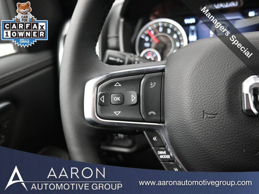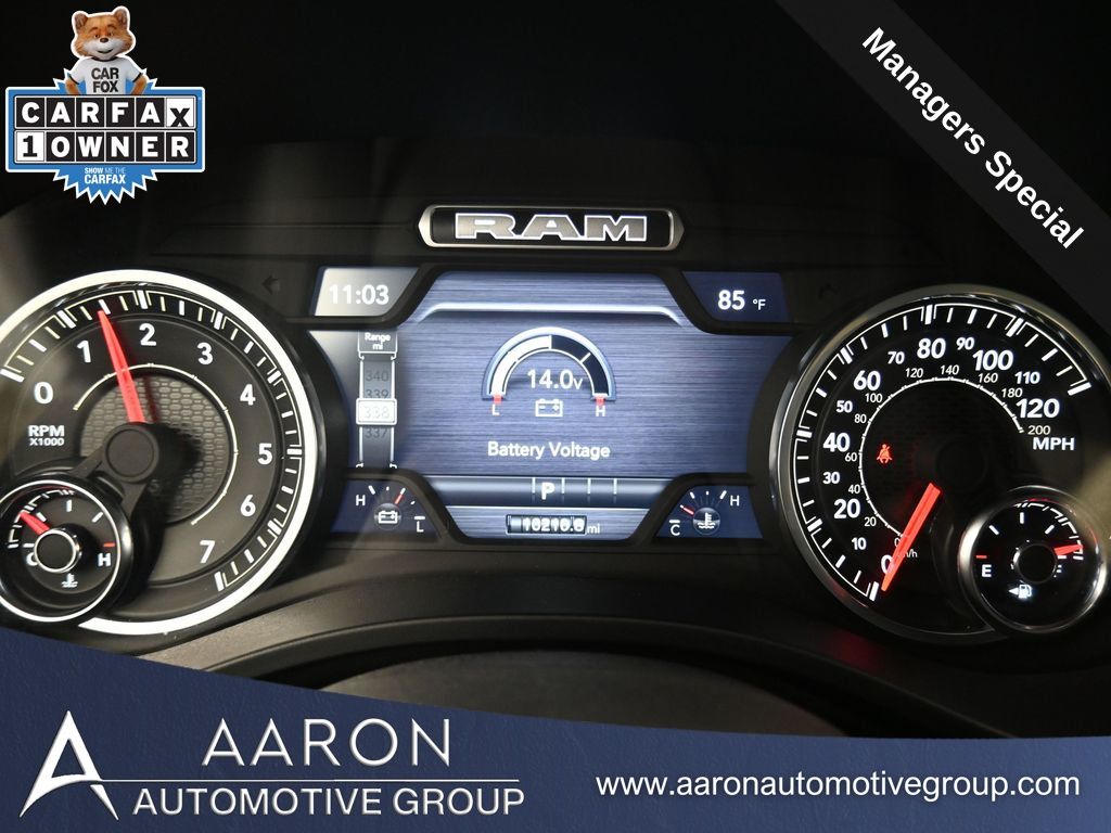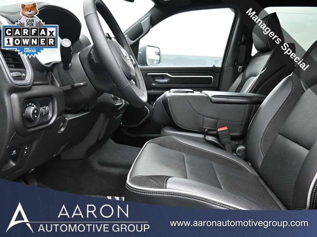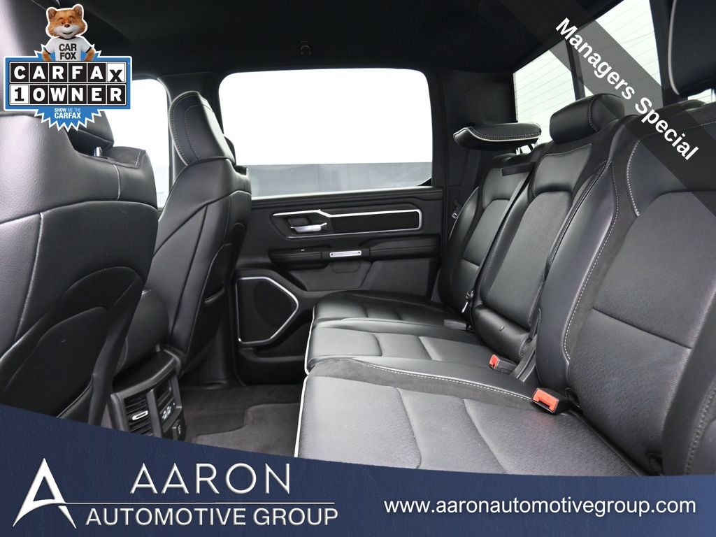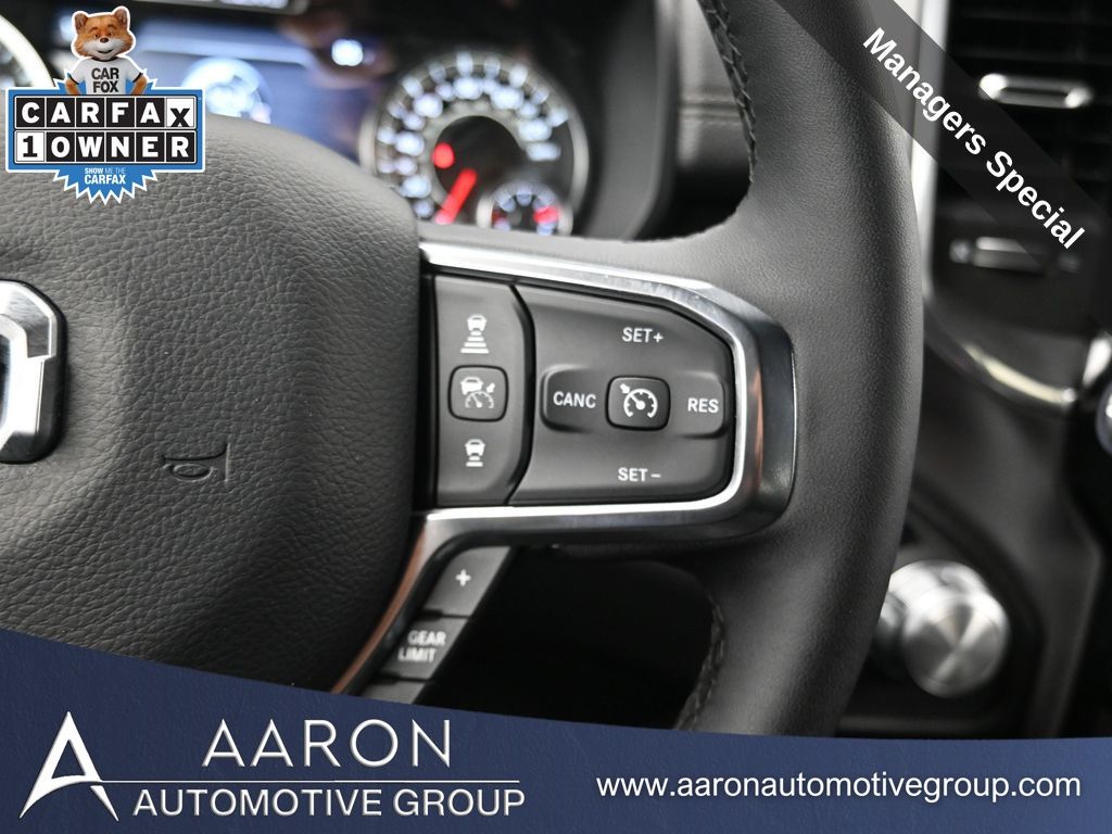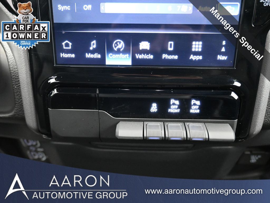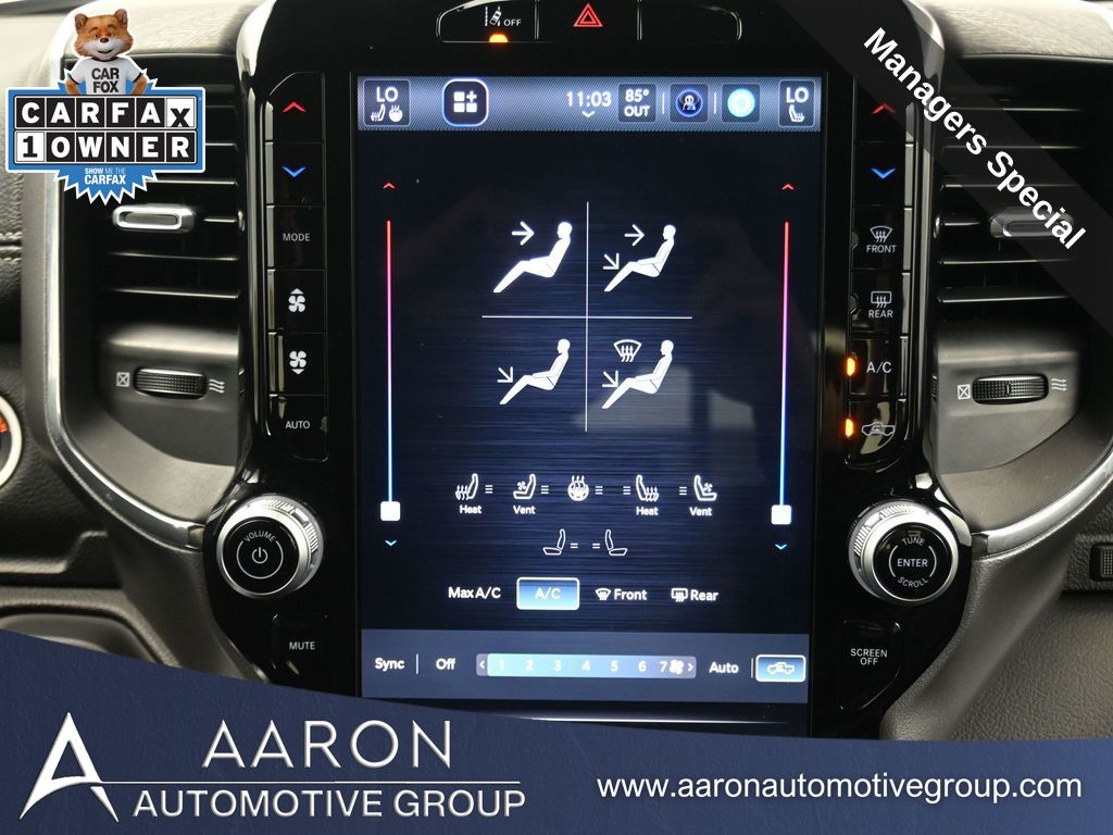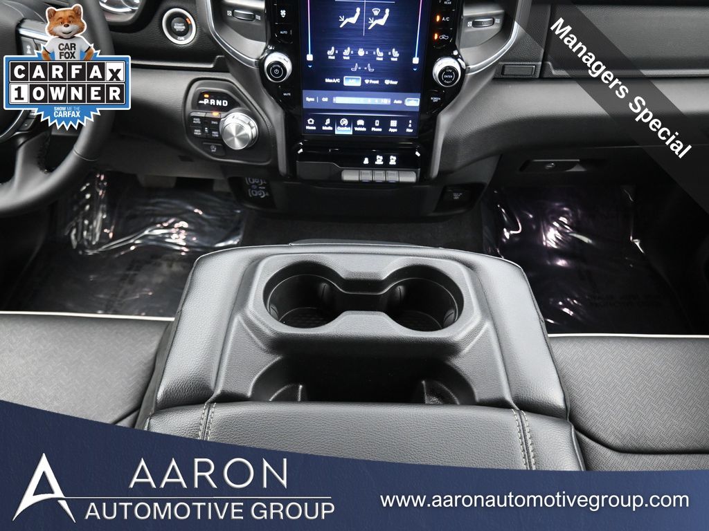 Experience unmatched strength, luxury, and technology in this 2025 Ram 1500 Laramie Crew Cab 4x4, a premium full-size pickup that delivers refined performance and utility from bumper to bumper. With just 10,161 miles, this 1-owner vehicle features a clean Carfax report, no accidents, and a documented service history, making it an outstanding opportunity for drivers seeking like-new reliability and modern capability. Under the hood, the powerful and efficient 3.0L I6 Turbocharged engine pairs with a TorqueFlite 8-speed automatic transmission and electronic shift-on-demand transfer case, producing confident torque and fuel-saving efficiency at an EPA-estimated 19 MPG combined (17 city and 24 highway). Finished in sleek Diamond Black Crystal Pearl-Coat Paint over a luxurious Black leather interior, this Laramie makes a bold statement on and off the road. The truck sits on 20-inch polished aluminum wheels, with LED headlamps, fog lamps, and chrome exterior trim enhancing its commanding presence. Inside, enjoy premium features including heated and ventilated leather front seats, heated rear seats, 8-way power-adjustable driver and passenger seats, Uconnect 5 NAV with 12-inch touchscreen, Apple CarPlay, Android Auto, SiriusXM with 360L, and a 9-amplified speaker Alpine audio system. Technology extends to convenience with remote start, power tailgate, dual-zone automatic climate control, rear power sliding window, and memory driver settings for seat, pedals, and mirrors. Safety features include Full-Speed Forward Collision Warning Plus, Blind Spot and Cross-Path Detection, ParkView rear backup camera, ParkSense front and rear park assist, pedestrian emergency braking, and Rain Brake Support. This truck is also optioned with the Customer Preferred Package 21H and a Diamond Black painted exterior for a sleek, upgraded appearance. Backed by Rams 5-year/60,000-mile powertrain warranty, this low-mileage Laramie 4x4 is ready for whatever the road, job site, or weekend throws your way. When you're ready to invest in something built to last and designed to impress, you can trust this Ram to deliver performance and dependability with every mile.