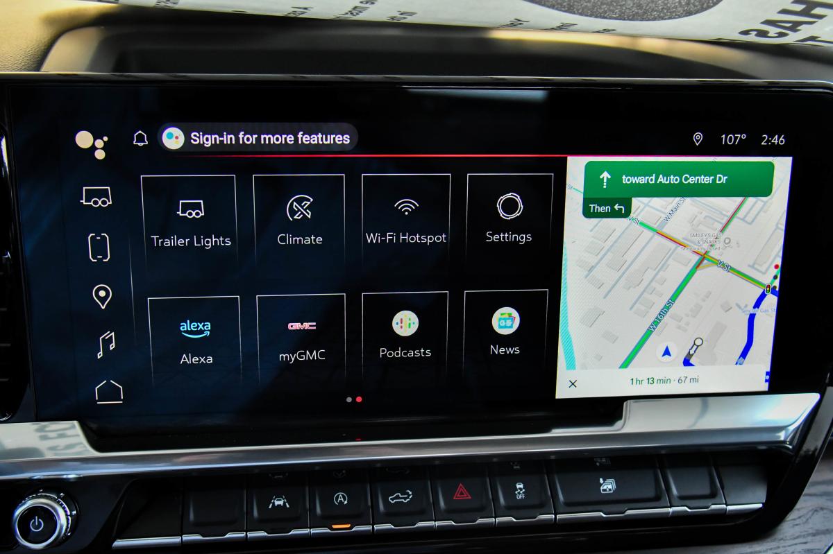 This GMC Sierra 1500 has a dependable Gas V8 5.3L/325 engine powering this Automatic transmission. Only 4,428 Miles! WHEELS, 18 X 8.5 (45.7 CM X 21.6 CM) 6-SPOKE MACHINED ALUMINUM with Dark Grey Metallic accents (STD), TRANSMISSION, 10-SPEED AUTOMATIC, (COLUMN SHIFTER) ELECTRONICALLY CONTROLLED with overdrive and tow/haul mode. Includes Cruise Grade Braking and Powertrain Grade Braking (STD), TIRES, 265/65R18SL ALL-SEASON, BLACKWALL (STD).*This GMC Sierra 1500 Comes Equipped with These Options *TIRE, SPARE 265/70R17SL ALL-SEASON, BLACKWALL (STD), SUMMIT WHITE, SLT PREFERRED EQUIPMENT GROUP Includes Standard Equipment, SEATS, FRONT 40/20/40 SPLIT-BENCH with covered armrest storage and under-seat storage (lockable) (STD), REAR AXLE, 3.23 RATIO, LICENSE PLATE KIT, FRONT, JET BLACK, PERFORATED LEATHER-APPOINTED FRONT OUTBOARD SEAT TRIM, GVWR, 7100 LBS. (3221 KG) (STD), ENGINE, 5.3L ECOTEC3 V8 (355 hp [265 kW] @ 5600 rpm, 383 lb-ft of torque [518 Nm] @ 4100 rpm); featuring Dynamic Fuel Management (STD), AUDIO SYSTEM, 13.4 DIAGONAL PREMIUM GMC INFOTAINMENT SYSTEM WITH GOOGLE BUILT IN APPS SUCH AS NAVIGATION AND VOICE ASSISTANCE, INCLUDES COLOR TOUCH-SCREEN, MULTI-TOUCH DISPLAY, AM/FM STEREO Bluetooth streaming audio for music and most phones; featuring wireless Android Auto and Apple CarPlay capability for compatible phones (STD).
