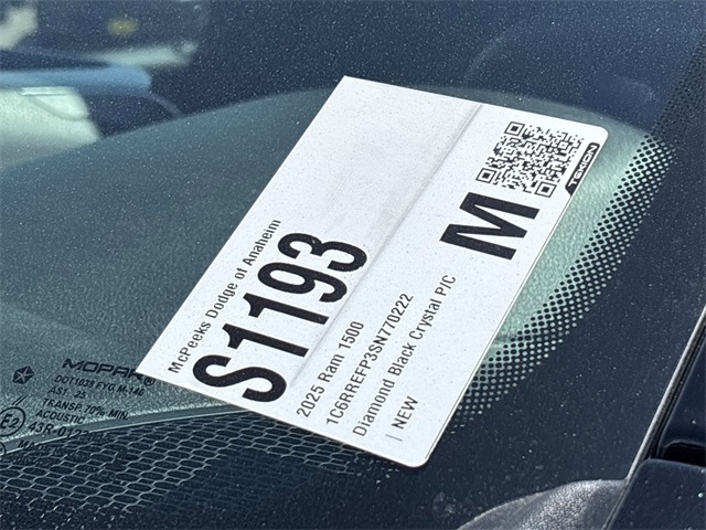 Diamond Black Crystal Pearlcoat 2025 Ram 1500 Big Horn/Lone Star RWD 8-Speed Automatic 3.0L I6 INTERIOR & EXTERIOR PROFESSIONALLY DETAILED FOR DELIVERY, MCPEEK CHRYSLER DODGE JEEP RAM FAMILY OWNED AND OPERATED SINCE 1961 !!!!!.All prices are subject to change without notice. All vehicles subject to prior sale. Advertised price does not include Dealer Installed Accessories or Commercial Bed/Body Upfits. Please contact dealer to receive the most up to date pricing information and complete details.