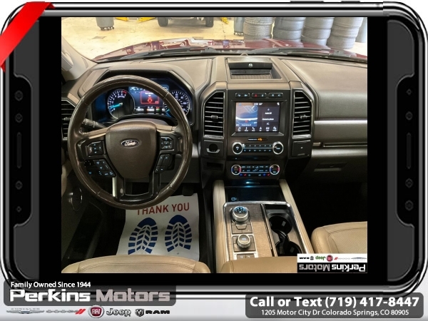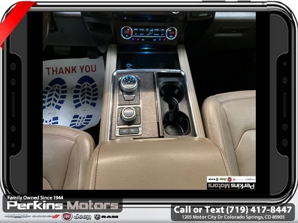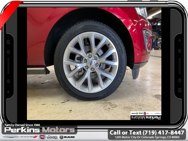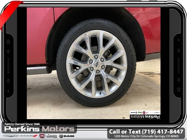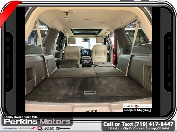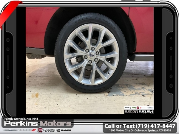 Ruby Red 4WD EcoBoost 3.5L V6 GTDi DOHC 24V Twin Turbocharged 10-Speed Automatic<br><br><br>CARFAX One-Owner.<br><br>Check us out at www.perkinsmotors.com to see our specials! Since opening our doors in 1944, we’ve been proud to serve Colorado Springs, CO, and the surrounding areas of Pueblo, Castle Rock and Denver, CO. Throughout this time of being family owned for 80 years, we’ve maintained a firm commitment to our customers: to offer a wide selection of New Chrysler, Dodge, Fiat, Jeep, and Ram vehicles and quality pre-owned vehicles, and provide a quick, no-hassle car-buying process that ensures everyone drives off the lot satisfied with their purchase.<br><br><br>Awards:<br> * 2018 KBB.com Brand Image Awards * 2018 KBB.com 10 Most Awarded Brands<br><br>Driver Assistance Package (Adaptive Cruise Control, Automatic High Beam Headlamp, Lane-Keeping System, Pre-Collision Assist, and Rain-Sensing Front Wipers), Equipment Group 302A (22 Polished Aluminum Wheels, 360-Degree Camera w/Split View, Enhanced Active Park Assist System, LED Headlamps & Fog Lamps, Panoramic Vista Roof, and Voice-Activated Touch-Screen Navigation System), 12 Speakers, 1st & 2nd Row Floor Liners, 20 Ultra Bright Machined Aluminum Wheels, 2nd Row Bucket Seats, 3.31 Axle Ratio, 3rd row seats: split-bench, 4-Wheel Disc Brakes, ABS brakes, Adjustable pedals, Air Conditioning, Alloy wheels, AM/FM radio, AppLink/Apple CarPlay and Android Auto, Auto-dimming door mirrors, Auto-dimming Rear-View mirror, Automatic temperature control, Brake assist, Bumpers: body-color, CD player, Compass, Cruise Control, Delay-off headlights, Driver door bin, Driver vanity mirror, Dual front impact airbags, Dual front side impact airbags, Electronic Stability Control, Emergency communication system: SYNC 3 911 Assist, Exterior Parking Camera Rear, Four wheel independent suspension, Front anti-roll bar, Front Bucket Seats, Front Center Armrest, Front dual zone A/C, Front fog lights, Front reading lights, Fully automatic headlights, Garage door transmitter, Heated & Cooled Leather Front Bucket Seats, Heated door mirrors, Heated front seats, Heated rear seats, Heated steering wheel, Illuminated entry, Leather steering wheel, Low tire pressure warning, Memory seat, Occupant sensing airbag, Outside temperature display, Overhead airbag, Overhead console, Panic alarm, Passenger door bin, Passenger vanity mirror, Pedal memory, Power door mirrors, Power driver seat, Power Liftgate, Power passenger seat, Power steering, Power windows, Radio data system, Radio: B&O PLAY Premium Audio System by harman, Rear air conditioning, Rear anti-roll bar, Rear audio controls, Rear reading lights, Rear window defroster, Rear window wiper, Remote keyless entry, Roof rack: rails only, Security system, SiriusXM Satellite Radio, Speed-sensing steering, Speed-Sensitive Wipers, Split folding rear seat, Steering wheel memory, Steering wheel mounted audio controls, SYNC 3 Communications & Entertainment System, Tachometer, Telescoping steering wheel, Tilt steering wheel, Traction control, Trip computer, Turn signal indicator mirrors, Variably intermittent wipers, Ventilated front seats, and Voltmeter.
