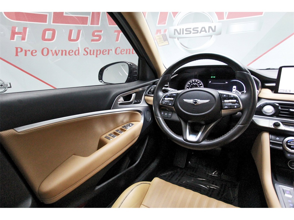 Central Houston Nissan is proud to present you with another True Market Priced Pre-Owned Vehicle. This 2022 Genesis G70 2.0T is loaded with the following Factory Options: Prestige Package (4-Way Power Lumbar Front Passenger Seat, Door & Console Aluminum Trim, Forward/Reverse Parking Distance Warning, Front Passenger Seat Walk-In Device, Front Side Acoustic Laminated Glass, Integrated Memory System (IMS), Leather Seating Surfaces, Option Group 02, Power Folding EC Mirrors w/Logo Lamp, Power Tilt & Telescopic Steering Wheel, Radio: AM/FM/SiriusXM/HD Lexicon Prem Audio System, Rain-Sensing Wipers, Wheels: 19" x 8.0J Fr & 19" x 8.5J Rr Alloy, Wide Sunroof, and Wireless Device Charging), 4-Wheel Disc Brakes, 6 Speakers, ABS brakes, Air Conditioning, Alloy wheels, AM/FM radio: SiriusXM, Android Auto & Apple CarPlay, Anti-whiplash front head restraints, Auto High-beam Headlights, Auto-dimming Rear-View mirror, Automatic temperature control, Brake assist, Bumpers: body-color, Delay-off headlights, Driver door bin, Driver vanity mirror, Dual front impact airbags, Dual front side impact airbags, Electronic Stability Control, Emergency communication system: Genesis Connected Services, Exterior Parking Camera Rear, Four wheel independent suspension, Front anti-roll bar, Front Bucket Seats, Front Center Armrest, Front dual zone A/C, Front reading lights, Fully automatic headlights, Garage door transmitter: HomeLink, Heated door mirrors, Heated front seats, Heated Multi-Adjustable Front Bucket Seats, Illuminated entry, Knee airbag, Leatherette Seating Surfaces, Low tire pressure warning, Navigation System, Occupant sensing airbag, Outside temperature display, Overhead airbag, Overhead console, Panic alarm, Passenger door bin, Passenger vanity mirror, Power door mirrors, Power driver seat, Power passenger seat, Power steering, Power windows, Premium First Aid Kit, Radio: AM/FM/SiriusXM/HD Audio System, Rear anti-roll bar, Rear Bumper Applique, Rear reading lights, Rear seat center armrest, Rear window defroster, Remote keyless entry, Security system, Speed control, Speed-sensing steering, Speed-Sensitive Wipers, Split folding rear seat, Steering wheel mounted audio controls, Tachometer, Telescoping steering wheel, Tilt steering wheel, Traction control, Trip computer, Turn signal indicator mirrors, Variably intermittent wipers, Wheel Locks, and Wheels: 18" x 8.0J Alloy!!Central Houston Nissan is more than just your typical car dealership. When our customers visit us, our goal is to provide quality vehicles, exceptional service and a friendly atmosphere. Our staff has been trained to create ease during your purchase or service experience and we are always making sure you get everything you want and deserve out of your visit. Our vision and mission is an employee-centered and customer-focused environment. Vehicles may be subject to prep package and market adjustment. When you buy from Central Houston Nissan, we'll make it the best car buying experience you've ever had. When you purchase a New Nissan or a qualifying Pre-Owned vehicle from Central Houston Nissan, you are automatically enrolled into our Central Houston Nissan Central Care Program at no cost to you. You can’t beat that! Vehicles may be subject to prep package and market adjustment. Stop by 2901 S Loop W, Houston, Texas 77054 today!!!