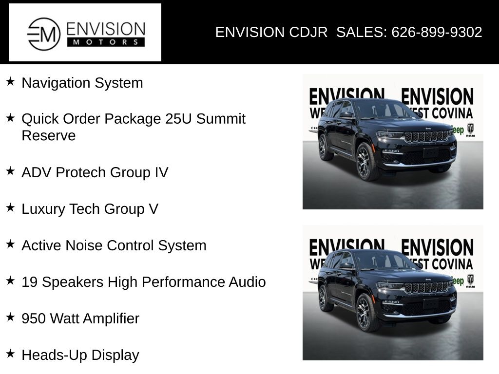 WE SPECIALIZE IN ALL CREDIT PROFILES! See what we can do for you! Call to find out (626) 899-9302.Certified.Odometer is 13491 miles below market average! 4WD, 19 Speakers High Performance Audio, 2nd-Row Manual Window Shades, 950 Watt Amplifier, Active Noise Control System, ADV Protech Group IV, Deluxe Headliner, Front Passenger Interactive Display, Heads-Up Display, Luxury Tech Group V, Navigation System, Night Vision w/Pedestrian-Animal Detection, Palermo Leather Door Trim, Palermo Leather Seats, Power moonroof, Quick Order Package 25U Summit Reserve, Rearview Autodim Digital Display Mirror, Summit Reserve, Summit Reserve Badge, Ventilated Rear Seats, Wheels: 21" x 9" Machined Face/Painted Aluminum, Wireless Charging Pad.Diamond Black Crystal Pearlcoat2022 Jeep Grand Cherokee Summit 4WD 8-Speed Automatic HEMI 5.7L V8 Multi Displacement VVTFCA US LLC Certified Pre-Owned Details: * Limited Warranty: 3 Month/3,000 Mile (whichever comes first) after new car warranty expires or from certified purchase date * Vehicles Up to 75,000 Miles and/or 5 Model Years. 24-Hour Towing & Roadside Assistance, Car Rental Allowance, CARFAX® Vehicle History ReportTM and an Introductory 3-month Subscription to SiriusXM® Satellite Radio & Certified Warranty Upgrades * Warranty Deductible: $100 * Vehicle History * 125 Point Inspection * Transferable Warranty * Powertrain Limited Warranty: 84 Month/100,000 Mile (whichever comes first) from original in-service date * Roadside Assistance**********All Pricing and Advertised Prices for any/all vehicles offered for sale does not include dealer installed accessories which can be purchased for an additional cost.********** The Factory Rebates may not be available on this vehicle if you elect to take advantage of a Special Alternative APR or Special Lease program. Some Factory Rebates are California Resident specific and may vary for residents of other states. NO sales to Dealers, Brokers or Exporters. For out of state purchase, customers must be present to purchase. If shipping is required, dealership must facilitate; no exceptions. Please contact us for special Multi-Vehicle or Fleet pricing. Prices are plus government fees and taxes, any finance charges, $85 documentary fee, $29 electronic registration fee, any emission testing charge and $1.75 per new tire state tire fee. *** We make every effort to provide accurate information, but please verify before purchasing. Leasing & financing available on approved credit. Trade-ins accepted. Subject to prior sale.
