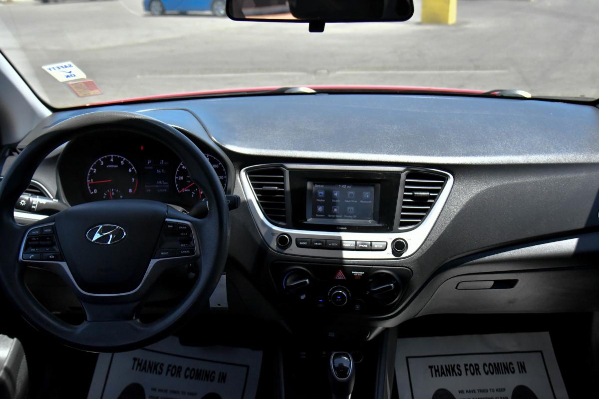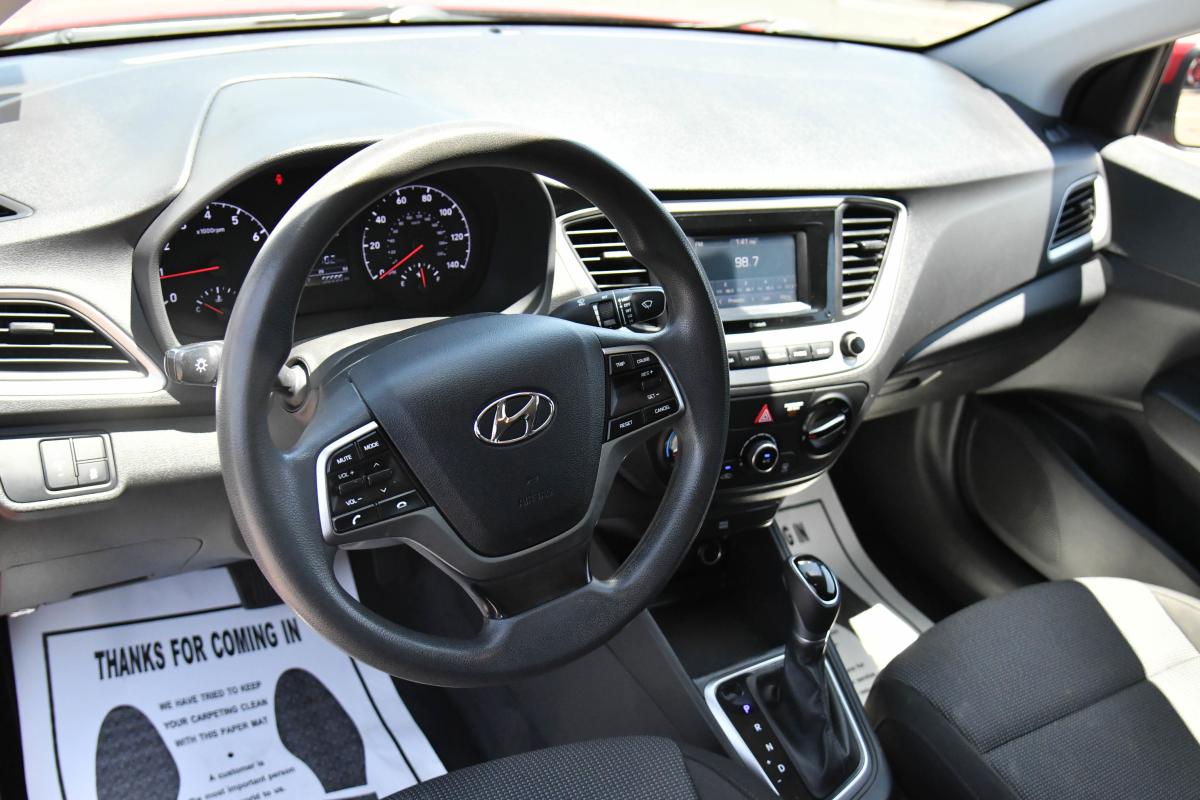 Scores 41 Highway MPG and 33 City MPG! This Hyundai Accent delivers a Regular Unleaded I-4 1.6 L/98 engine powering this Variable transmission. POMEGRANATE RED, OPTION GROUP 01 -inc: standard equipment, MUDGUARDS.*This Hyundai Accent Features the Following Options *CARPETED FLOOR MATS, CARGO NET, BLACK, CLOTH SEAT TRIM, Wheels: 5.5J x 15 Steel w/Covers, Urethane Gear Shifter Material, Trunk Rear Cargo Access, Trip Computer, Transmission: Intelligent Variable (IVT) -inc: Gate-type, SHIFTRONIC and Hill Start Assist Control, Transmission w/Driver Selectable Mode, Torsion Beam Rear Suspension w/Coil Springs.