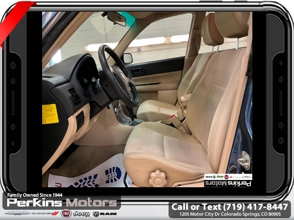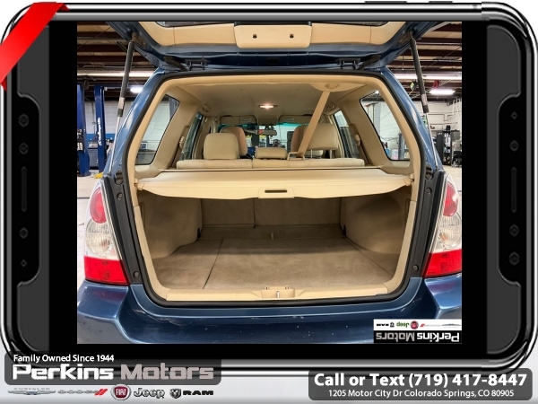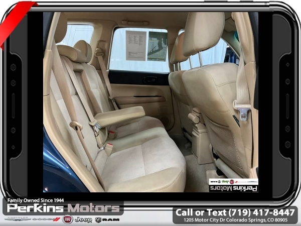 Nbp AWD 2.5L SOHC i-Active Valve Lift System 4-Speed Automatic<br><br><br>CARFAX One-Owner. Clean CARFAX.<br><br>Check us out at www.perkinsmotors.com to see our specials! Since opening our doors in 1944, we’ve been proud to serve Colorado Springs, CO, and the surrounding areas of Pueblo, Castle Rock and Denver, CO. Throughout this time of being family owned for 80 years, we’ve maintained a firm commitment to our customers: to offer a wide selection of New Chrysler, Dodge, Fiat, Jeep, and Ram vehicles and quality pre-owned vehicles, and provide a quick, no-hassle car-buying process that ensures everyone drives off the lot satisfied with their purchase.<br><br>Reviews:<br> * If performance is a prime selling point, Subaru claims that a manual-shift 2.5 XT Limited can accelerate from zero to 60 miles per hour in less than six seconds, which is rather swift for a compact SUV. Source: KBB.com<br><br><br>Awards:<br> * 2008 KBB.com 10 Best Used All-Wheel-Drive Vehicles Under $10,000 * 2008 KBB.com 10 Best Used SUVs Under $10,000<br><br>16 Steel Wheels w/Alloy-Look Wheel Covers, 4 Speakers, 4.44 Axle Ratio, ABS brakes, Air Conditioning, AM/FM radio, AM/FM Stereo w/Single Disc CD Player, Anti-whiplash front head restraints, Bumpers: body-color, CD player, Cloth Upholstery, Cruise Control, Driver door bin, Driver vanity mirror, Dual front impact airbags, Dual front side impact airbags, Four wheel independent suspension, Front anti-roll bar, Front Bucket Seats, Front Center Armrest w/Storage, Front fog lights, Front reading lights, Front Sport Bucket Seats, Illuminated entry, Low tire pressure warning, Occupant sensing airbag, Outside temperature display, Overhead console, Panic alarm, Passenger door bin, Passenger vanity mirror, Power door mirrors, Power steering, Power windows, Rear anti-roll bar, Rear seat center armrest, Rear window defroster, Rear window wiper, Remote keyless entry, Roof rack, Security system, Speed-sensing steering, Split folding rear seat, Tachometer, Tilt steering wheel, Variably intermittent wipers, and Weather band radio.