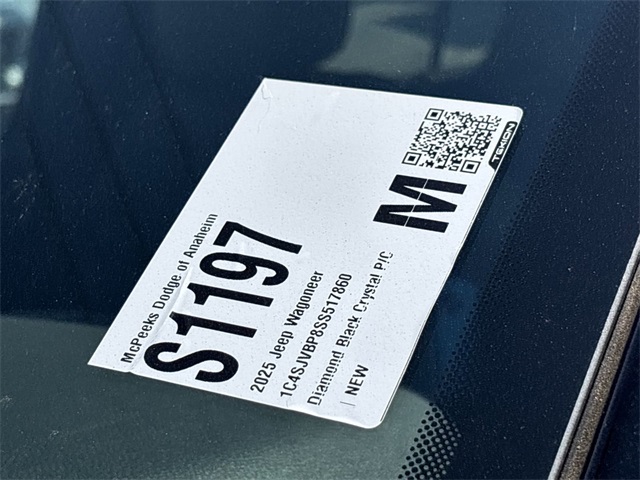 Diamond Black Crystal Pearlcoat 2025 Jeep Wagoneer Series II 4WD 8-Speed Automatic 3.0L I6 INTERIOR & EXTERIOR PROFESSIONALLY DETAILED FOR DELIVERY, MCPEEK CHRYSLER DODGE JEEP RAM FAMILY OWNED AND OPERATED SINCE 1961 !!!!!.All prices are subject to change without notice. All vehicles subject to prior sale. Advertised price does not include Dealer Installed Accessories or Commercial Bed/Body Upfits. Please contact dealer to receive the most up to date pricing information and complete details.