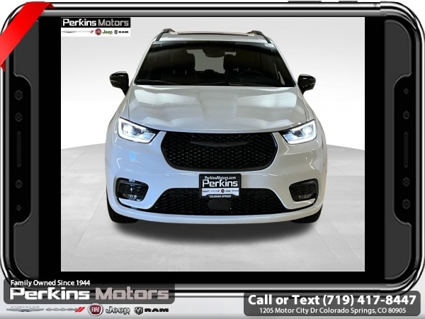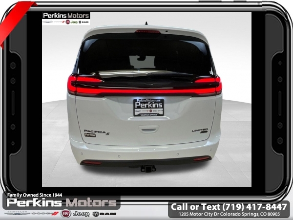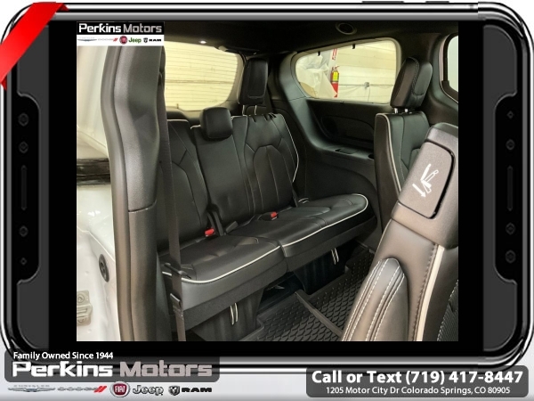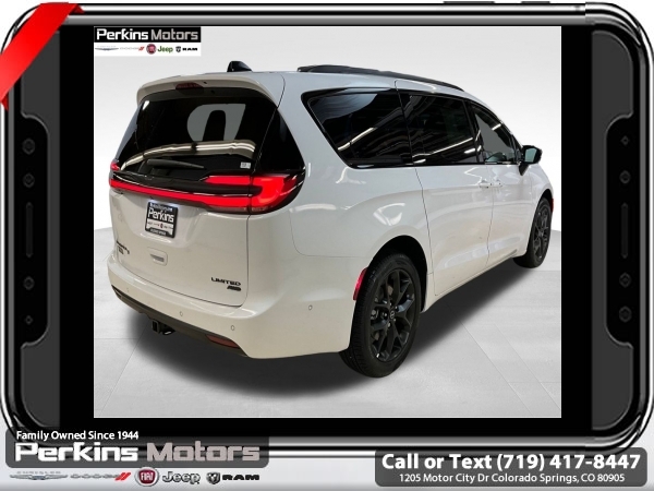 Factory MSRP: $58,030 $11,167 off MSRP! Priced below KBB Fair Purchase Price! Bright White Clearcoat 2025 Chrysler Pacifica Limited AWD 9-Speed 948TE Automatic 3.6L V6 24V VVT<br><br>Check us out at www.perkinsmotors.com to see our specials! Since opening our doors in 1944, we’ve been proud to serve Colorado Springs, CO, and the surrounding areas of Pueblo, Castle Rock and Denver, CO. Throughout this time of being family owned for 80 years, we’ve maintained a firm commitment to our customers: to offer a wide selection of New Chrysler, Dodge, Fiat, Jeep, and Ram vehicles and quality pre-owned vehicles, and provide a quick, no-hassle car-buying process that ensures everyone drives off the lot satisfied with their purchase.<br><br>MOPAR Interior Protection Package C (All Weather Cargo Floor Mats, All Weather Floor Mats - Stow 'N Go, Bright Door Sills, Cargo Area Liner, and Rear Cargo Bin Stow 'N Go Storage), Quick Order Package 27P, Safety Sphere (360 Surround View Camera System, Parallel & Perpendicular Park Assist w/Stop, and ParkSense Front/Rear Park Assist w/Stop), Trailer Tow Group (7 & 4 Pin Trailer Tow Wiring Harness, Hitch w/2 Receiver, and Trailer Sway Damping), 13 Speakers, 3.73 Axle Ratio, 3rd row seats: split-bench, 4-Wheel Disc Brakes, ABS brakes, Air Conditioning, Alloy wheels, AM/FM radio: SiriusXM 360L, Apple CarPlay/Android Auto, Audio memory, Auto-dimming Rear-View mirror, Automatic temperature control, AWD Suspension, Black Seats, Brake assist, Bumpers: body-color, Compass, Cruise Control, Delay-off headlights, Driver door bin, Driver vanity mirror, Driver's Seat Mounted Armrest, Dual front impact airbags, Dual front side impact airbags, Electronic Stability Control, Emergency communication system: Chrysler Connect, Four wheel independent suspension, Front anti-roll bar, Front Bucket Seats, Front dual zone A/C, Front fog lights, Front reading lights, Fully automatic headlights, Garage door transmitter, Heated door mirrors, Heated front seats, Heated rear seats, Heated steering wheel, Illuminated entry, Integrated Active Noise Cancellation, Knee airbag, Low tire pressure warning, Manufacturer's Statement of Origin, Memory seat, Nappa Leather Bucket Seats w/S Logo, Navigation System, Occupant sensing airbag, Outside temperature display, Overhead airbag, Overhead console, Panic alarm, ParkView Rear Back-Up Camera, Passenger door bin, Passenger seat mounted armrest, Passenger vanity mirror, Power door mirrors, Power driver seat, Power Liftgate, Power moonroof, Power passenger seat, Power steering, Power windows, Radio data system, Radio: Uconnect 5 Nav w/10.1 Display, Rain sensing wipers, Rear air conditioning, Rear reading lights, Rear window defroster, Rear window wiper, Reclining 3rd row seat, Remote keyless entry, Roof rack, Security system, Split folding rear seat, Spoiler, Steering wheel mounted audio controls, Tachometer, Telescoping steering wheel, Tilt steering wheel, Traction control, Trip computer, Turn signal indicator mirrors, Variably intermittent wipers, Ventilated front seats, Voltmeter, and Wheels: 20 x 7.5 S-Model Aluminum Design 1. Sale price includes all manufacture's incentives and dealer discounts. Sale price not available on lease or compatible with special APR. $3591 - 2025 National Minimum Employee Pricing Discount . Exp. 06/30/2025