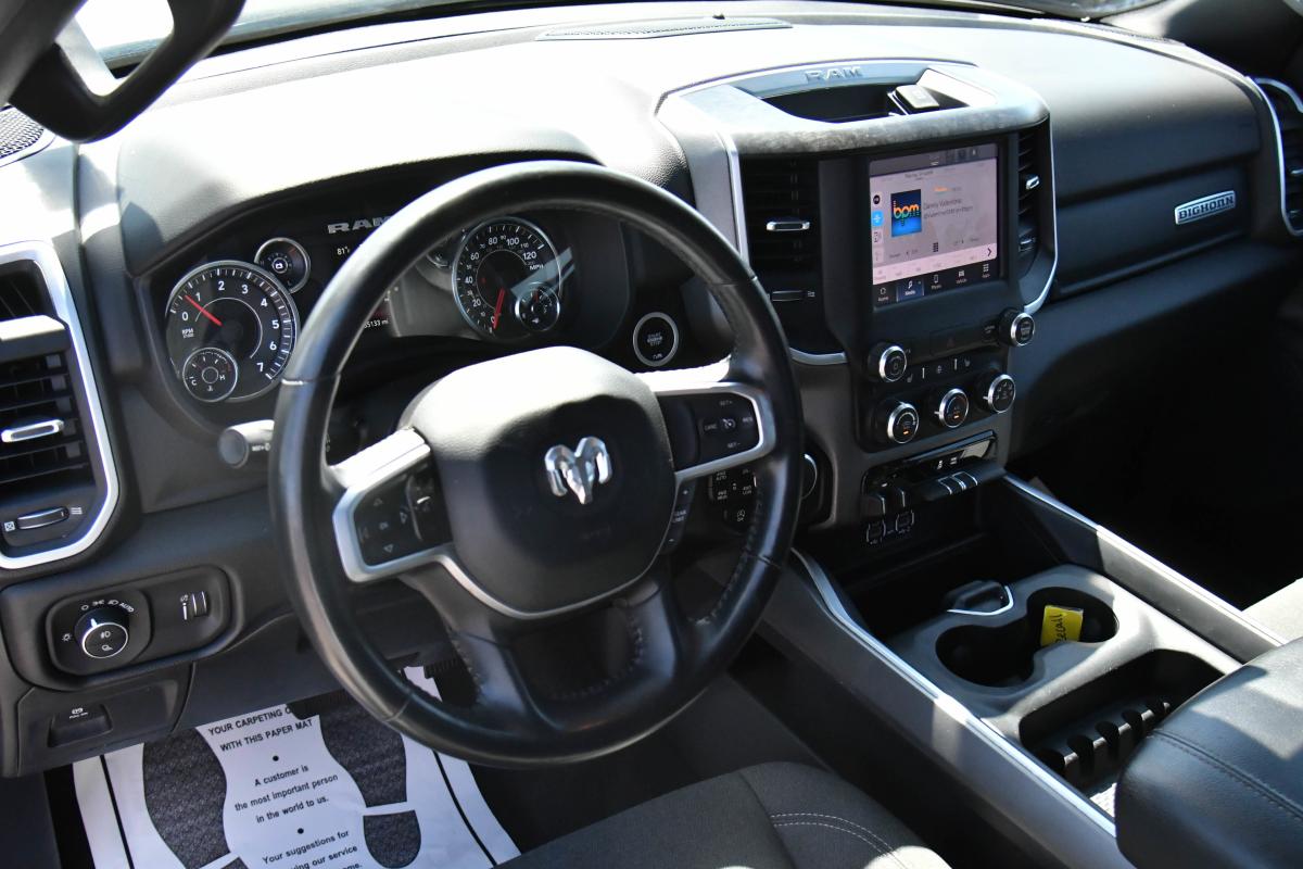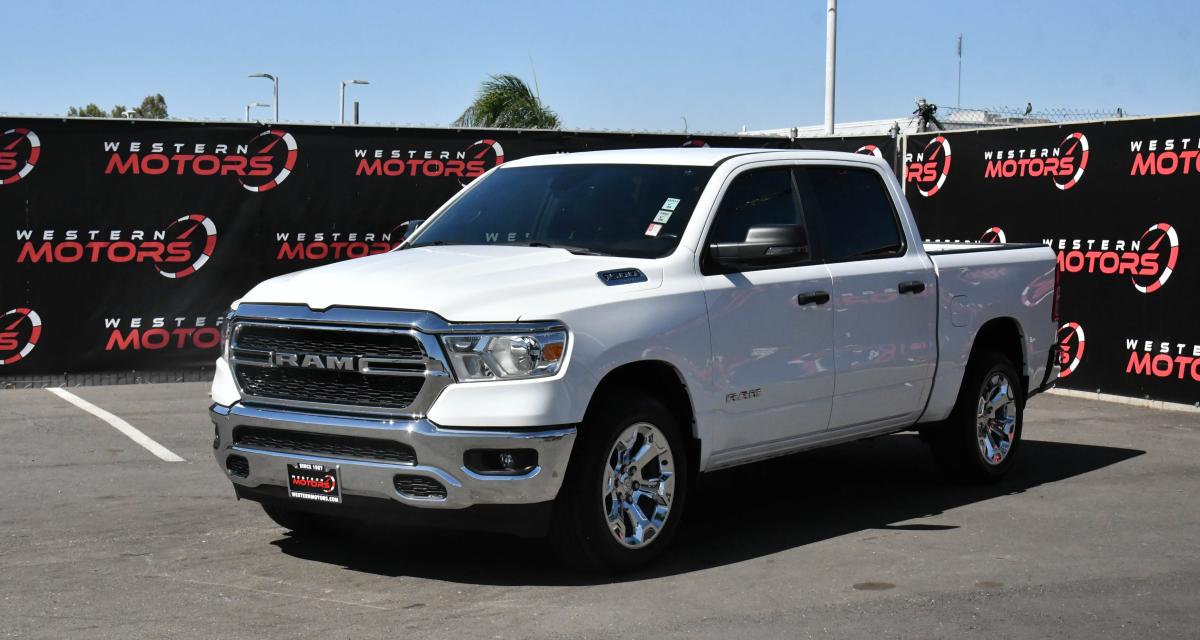 This Ram 1500 has a powerful Gas/Electric V-6 3.6 L/220 engine powering this Automatic transmission. WHEELS: 20 X 9 ALUMINUM CHROME CLAD (WRK), TRANSMISSION: 8-SPEED AUTOMATIC (850RE) (STD), TRAILER BRAKE CONTROL.*This Ram 1500 Features the Following Options *QUICK ORDER PACKAGE 23Z BIG HORN -inc: Engine: 3.6L V6 24V VVT eTorque UPG I, Transmission: 8-Speed Automatic (850RE), Big Horn Badge , TIRES: 275/55R20 ALL SEASON LRR, RADIO: UCONNECT 5 W W/8.4 DISPLAY, MONOTONE PAINT, MANUFACTURER'S STATEMENT OF ORIGIN, GVWR: 6,900 LBS (STD), FRONT LICENSE PLATE BRACKET, ENGINE: 3.6L V6 24V VVT ETORQUE UPG I (STD), BRIGHT WHITE CLEARCOAT, 3.21 REAR AXLE RATIO (STD).