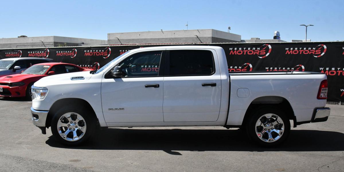 This Ram 1500 has a powerful Gas/Electric V-6 3.6 L/220 engine powering this Automatic transmission. WHEELS: 20 X 9 ALUMINUM CHROME CLAD (WRK), TRANSMISSION: 8-SPEED AUTOMATIC (850RE) (STD), TRAILER BRAKE CONTROL.*This Ram 1500 Features the Following Options *QUICK ORDER PACKAGE 23Z BIG HORN -inc: Engine: 3.6L V6 24V VVT eTorque UPG I, Transmission: 8-Speed Automatic (850RE), Big Horn Badge , TIRES: 275/55R20 ALL SEASON LRR, RADIO: UCONNECT 5 W W/8.4 DISPLAY, MONOTONE PAINT, MANUFACTURER'S STATEMENT OF ORIGIN, GVWR: 6,900 LBS (STD), FRONT LICENSE PLATE BRACKET, ENGINE: 3.6L V6 24V VVT ETORQUE UPG I (STD), BRIGHT WHITE CLEARCOAT, 3.21 REAR AXLE RATIO (STD).