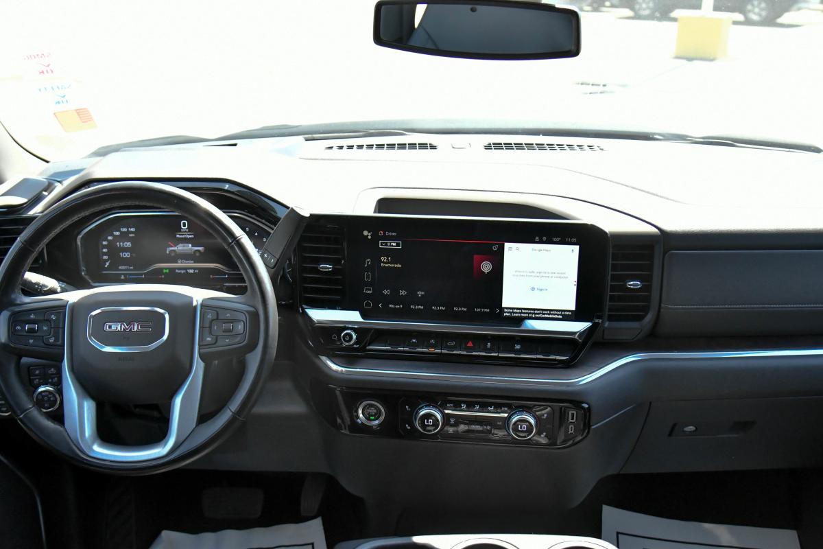 This GMC Sierra 1500 has a powerful Gas V8 5.3L/325 engine powering this Automatic transmission. WHEELS, 18 X 8.5 (45.7 CM X 21.6 CM) 6-SPOKE MACHINED ALUMINUM with Dark Grey Metallic accents (STD), TRANSMISSION, 10-SPEED AUTOMATIC, (COLUMN SHIFTER) ELECTRONICALLY CONTROLLED with overdrive and tow/haul mode. Includes Cruise Grade Braking and Powertrain Grade Braking (STD), TIRES, 265/65R18SL ALL-SEASON, BLACKWALL (STD).*This GMC Sierra 1500 Comes Equipped with These Options *TIRE, SPARE 265/70R17SL ALL-SEASON, BLACKWALL (STD), SUMMIT WHITE, STEERING COLUMN LOCK, ELECTRICAL (Beginning with start of production through July 31, 2023, vehicles will be forced to include (R7N) Not Equipped with Steering Column Lock, which removes Steering Column Lock. See dealer for details. Vehicles built on or after July 31, 2023 will include (N06) Steering Column Lock.), SLT PREFERRED EQUIPMENT GROUP Includes Standard Equipment, SEATS, FRONT 40/20/40 SPLIT-BENCH with covered armrest storage and under-seat storage (lockable) (STD), REAR AXLE, 3.23 RATIO, JET BLACK, PERFORATED LEATHER-APPOINTED FRONT OUTBOARD SEAT TRIM, GVWR, 7100 LBS. (3221 KG) (STD), ENGINE, 5.3L ECOTEC3 V8 (355 hp [265 kW] @ 5600 rpm, 383 lb-ft of torque [518 Nm] @ 4100 rpm); featuring Dynamic Fuel Management (STD), DELETED 3 YEARS OF ONSTAR REMOTE ACCESS.