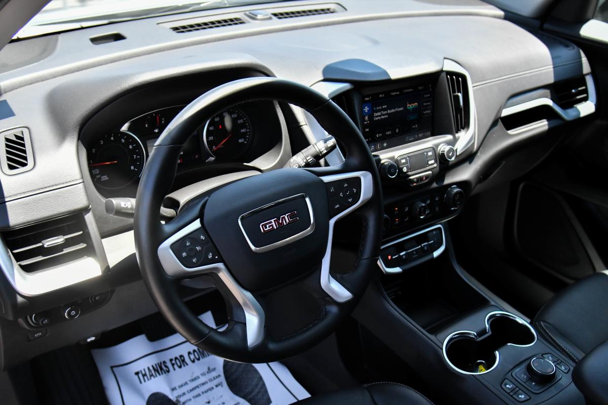 Delivers 28 Highway MPG and 23 City MPG! This GMC Terrain delivers a Turbocharged Gas I4 1.5L/ engine powering this Automatic transmission. WHEELS, 18 X 7 (45.7 CM X 17.8 CM) SILVER PAINTED ALUMINUM (STD), TRANSMISSION, 9-SPEED AUTOMATIC 9T45, ELECTRONICALLY-CONTROLLED WITH OVERDRIVE (STD), TIRES, P225/60R18 ALL-SEASON BLACKWALL (STD).*This GMC Terrain Comes Equipped with These Options *LICENSE PLATE FRONT MOUNTING PACKAGE (will be forced on orders with ship-to states that require a front license plate) , STERLING METALLIC, SLT PREFERRED EQUIPMENT GROUP Includes Standard Equipment, SEATS, FRONT BUCKET (STD), JET BLACK, PERFORATED LEATHER-APPOINTED SEAT TRIM, AXLE, 3.47 FINAL DRIVE RATIO, AUDIO SYSTEM, 8 DIAGONAL GMC INFOTAINMENT SYSTEM includes multi-touch display, AM/FM/SiriusXM stereo, Bluetooth streaming audio for music and most phones, Android Auto and Apple CarPlay capability for compatible phones, advanced voice recognition, in-vehicle apps, personalized profiles for infotainment and vehicle settings (STD), Wireless Apple CarPlay/Wireless Android Auto, Windows, power with rear Express-Down, Windows, power with front passenger Express-Down.
