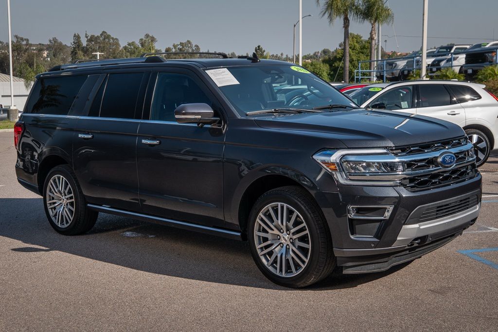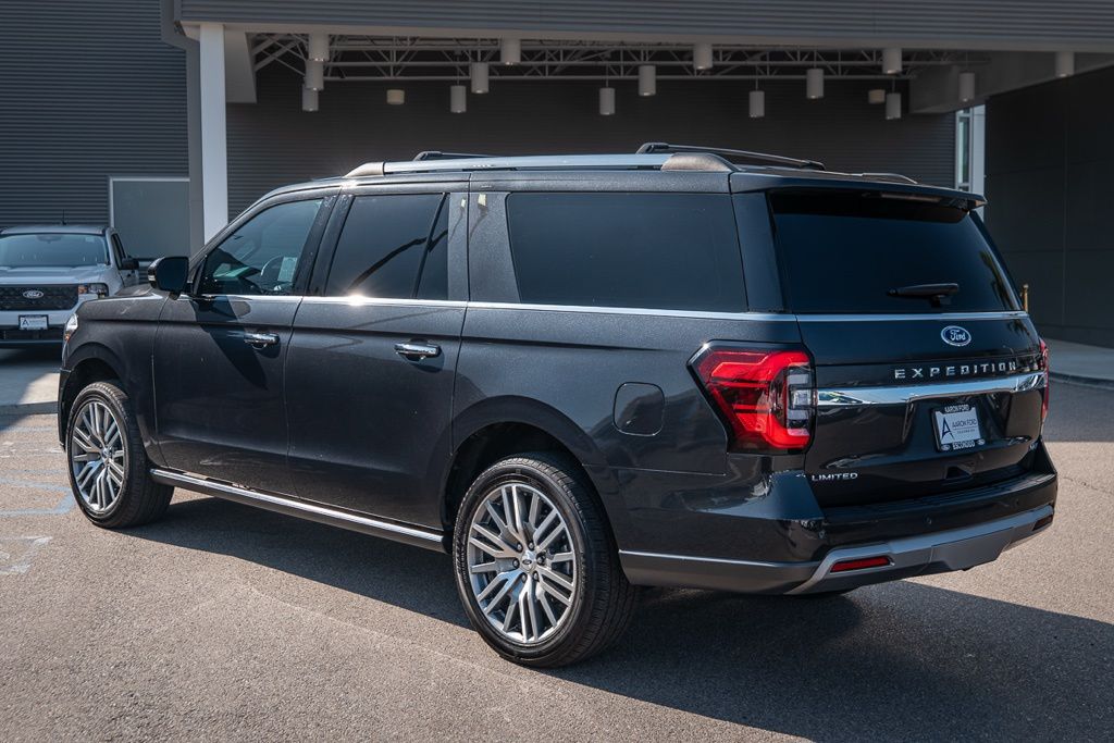 Dark Matter Metallic 2022 Ford Expedition Max Limited 4WD 10-Speed Automatic EcoBoost 3.5L V6 GTDi DOHC 24V Twin Turbocharged 15.5" LCD Capacitive Touchscreen, 3.73 Axle Ratio, 360-Degree Camera w/Trailer Reverse Guidance, 3rd row seats: split-bench, Accent Color Twin Spar Grille, Equipment Group 302A High Package, Exterior Parking Camera Rear, Heated front seats, Heated rear seats, Heavy-Duty Independent Suspension, Heavy-Duty Trailer Tow Package, Instrument Panel Cluster, Integrated Trailer Brake Controller, Magnetic-Painted Power Deployable Running Boards, Navigation system: Connected Navigation, Power Liftgate, Power moonroof, Power-Folding Sideview Mirrors w/Autofold, Pro Trailer Backup Assist, Remote keyless entry, SYNC 4A w/Enhanced Voice Recognition, Ventilated front seats, Wheels: 22" 12-Spoke Polished Aluminum.Odometer is 23288 miles below market average!