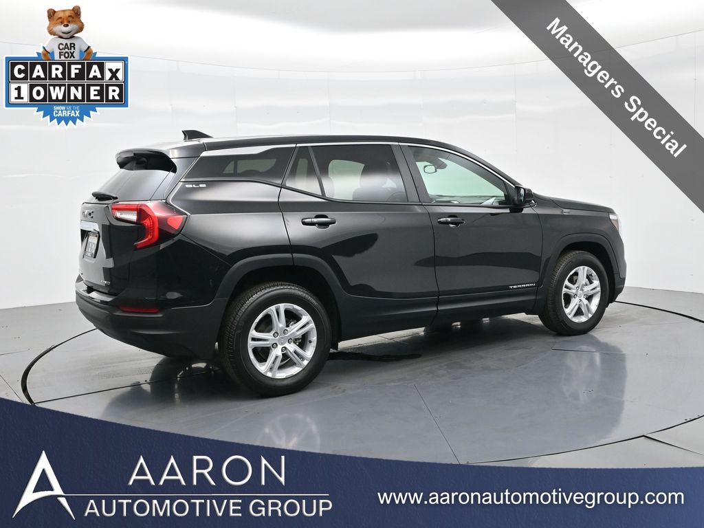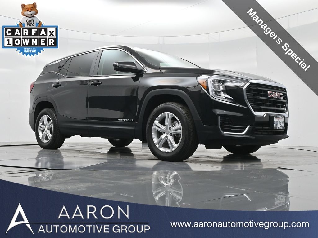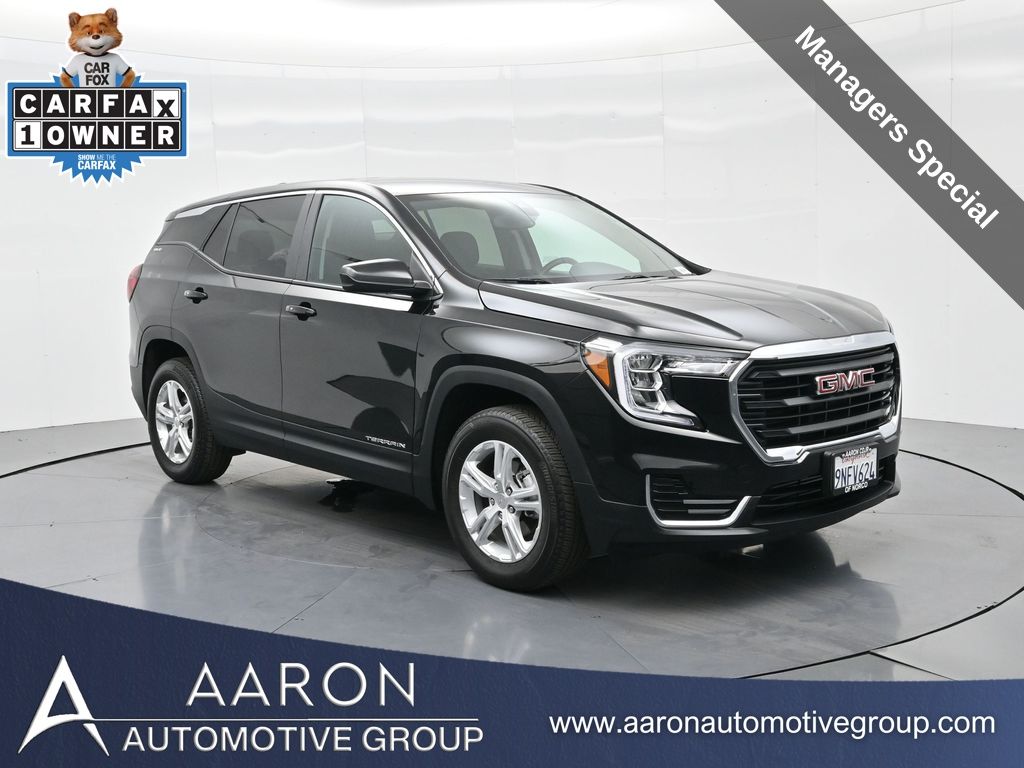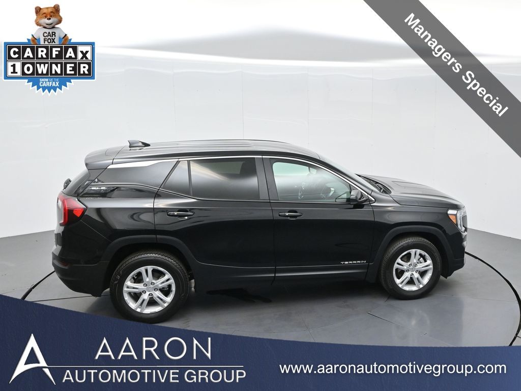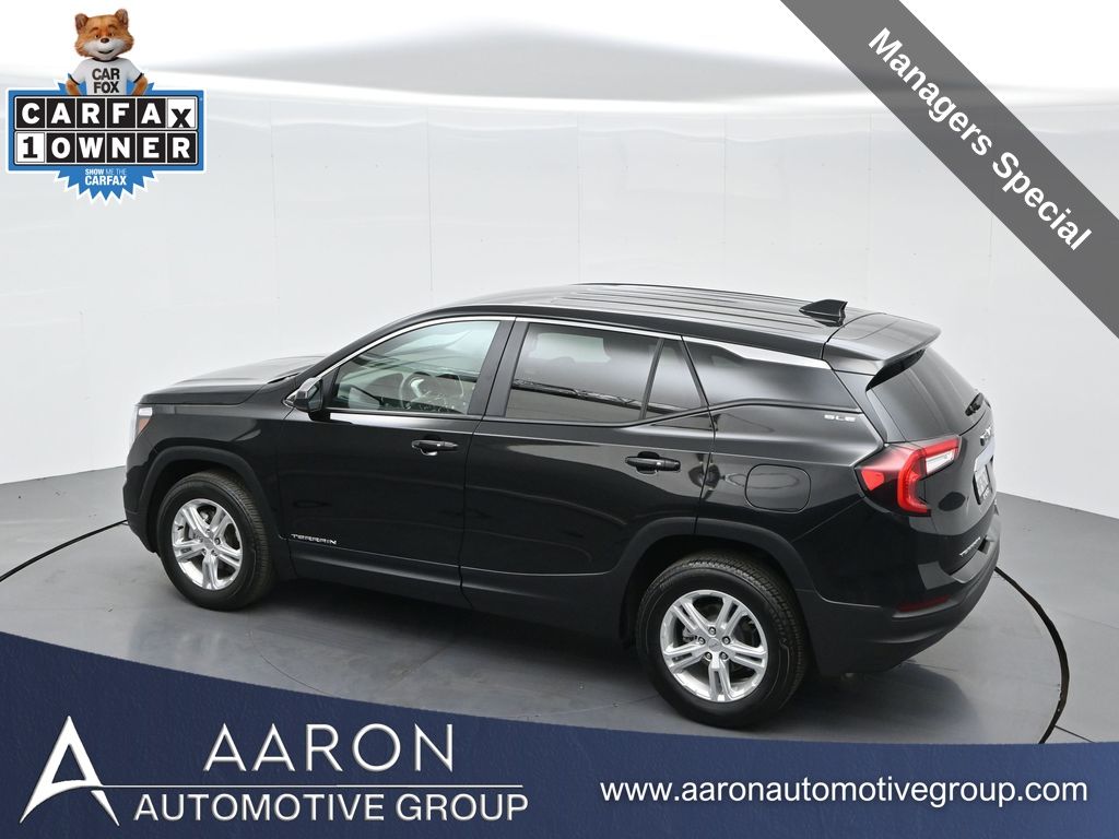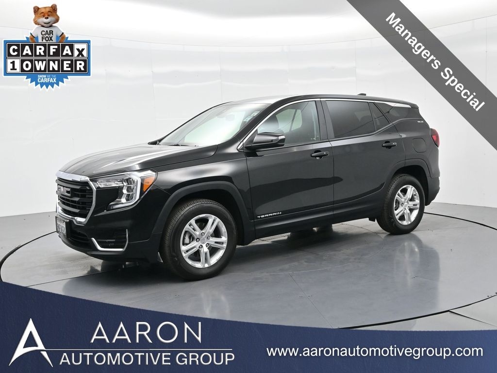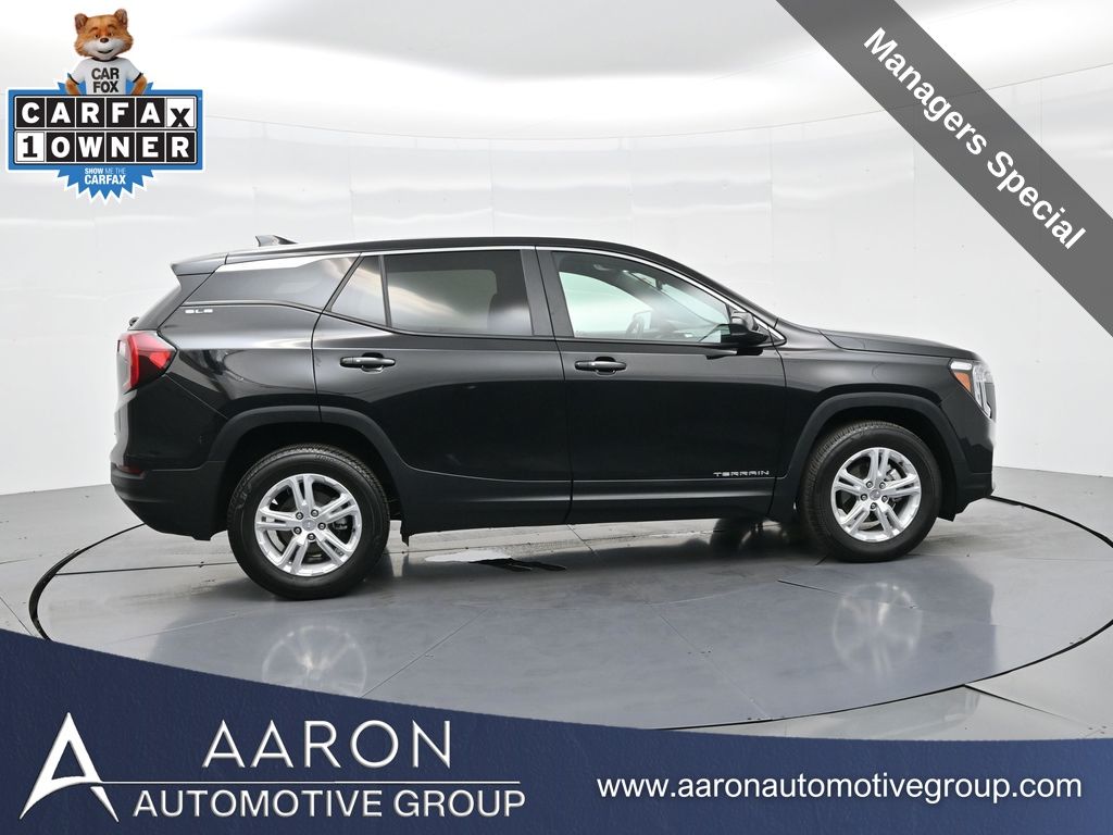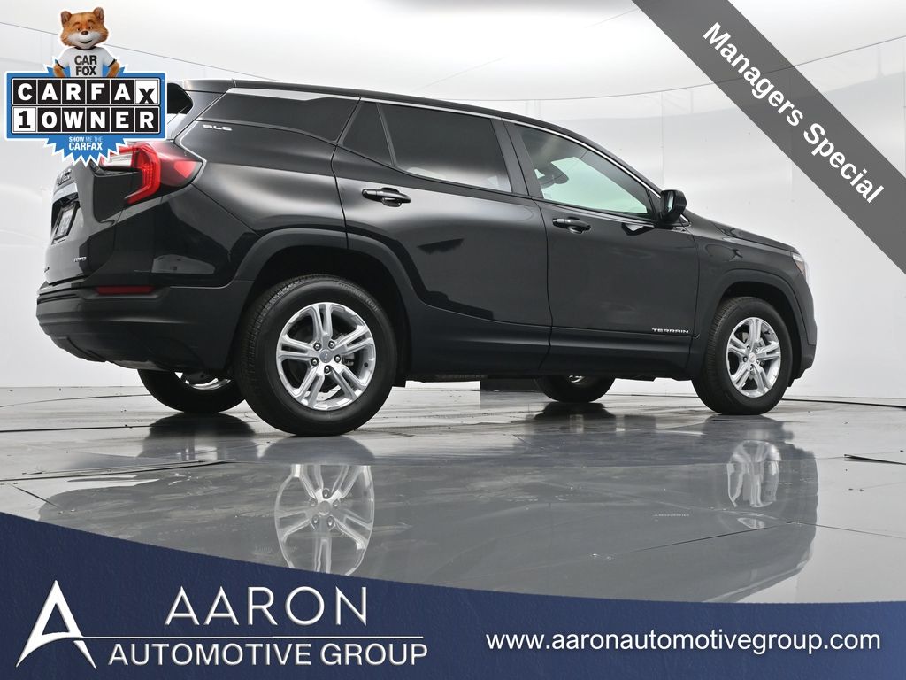 Spacious, confident, and impressively efficient, this 2024 GMC Terrain SLE AWD blends bold styling, advanced safety tech, and all-weather capability into a compact SUV designed to adapt to your daily life. With just 23,808 miles and a clean Carfax history, this one-owner Terrain offers exceptional value with peace of mind. Under the hood, the 1.5L turbocharged 4-cylinder engine delivers the perfect balance of power and efficiency, paired with a smooth-shifting 9-speed automatic transmission and advanced all-wheel drive for optimal traction. It delivers an EPA-estimated 23 MPG city and 28 MPG highway, making it a practical choice for both commuters and small families. Dressed in Ebony Twilight Metallic over Jet Black cloth interior, this Terrain SLE stands out with LED signature daytime running lamps, 17-inch aluminum wheels, and refined body styling that reflects GMCs precision design philosophy. Inside, the cabin is loaded with intuitive features including a 7-inch GMC Infotainment System touchscreen, Apple CarPlay and Android Auto compatibility, Bluetooth audio streaming, SiriusXM trial subscription, OnStar with Wi-Fi hotspot capability, two USB charge ports, and a rear vision camera. Comfort and convenience are further enhanced by automatic climate control, deep-tinted rear glass, a flat-folding rear seatback, and keyless open and start. Safety is a top priority with GMC Pro Safety, which includes automatic emergency braking, forward collision alert, front pedestrian braking, lane keep assist with lane departure warning, Intelli-Beam automatic high beams, and a following distance indicatorall designed to support confident driving in every condition. With its practical layout, confident road manners, and premium touchpoints throughout, the 2024 Terrain SLE is a smart choice for drivers looking for modern style and versatility without compromise. Backed by a 5-year/60,000-mile powertrain warranty and a 3-year/36,000-mile bumper-to-bumper limited warranty, this low-mileage Terrain is ready for whatever your journey holds. Visit us today and experience why more drivers are turning to GMC for performance, safety, and value in one sleek package.