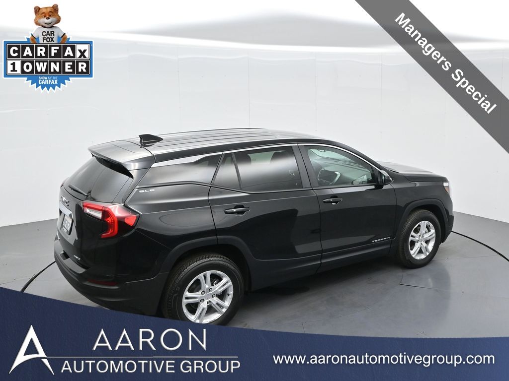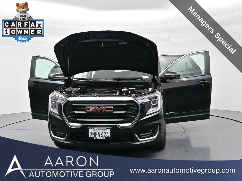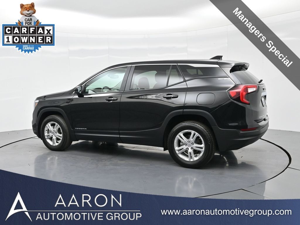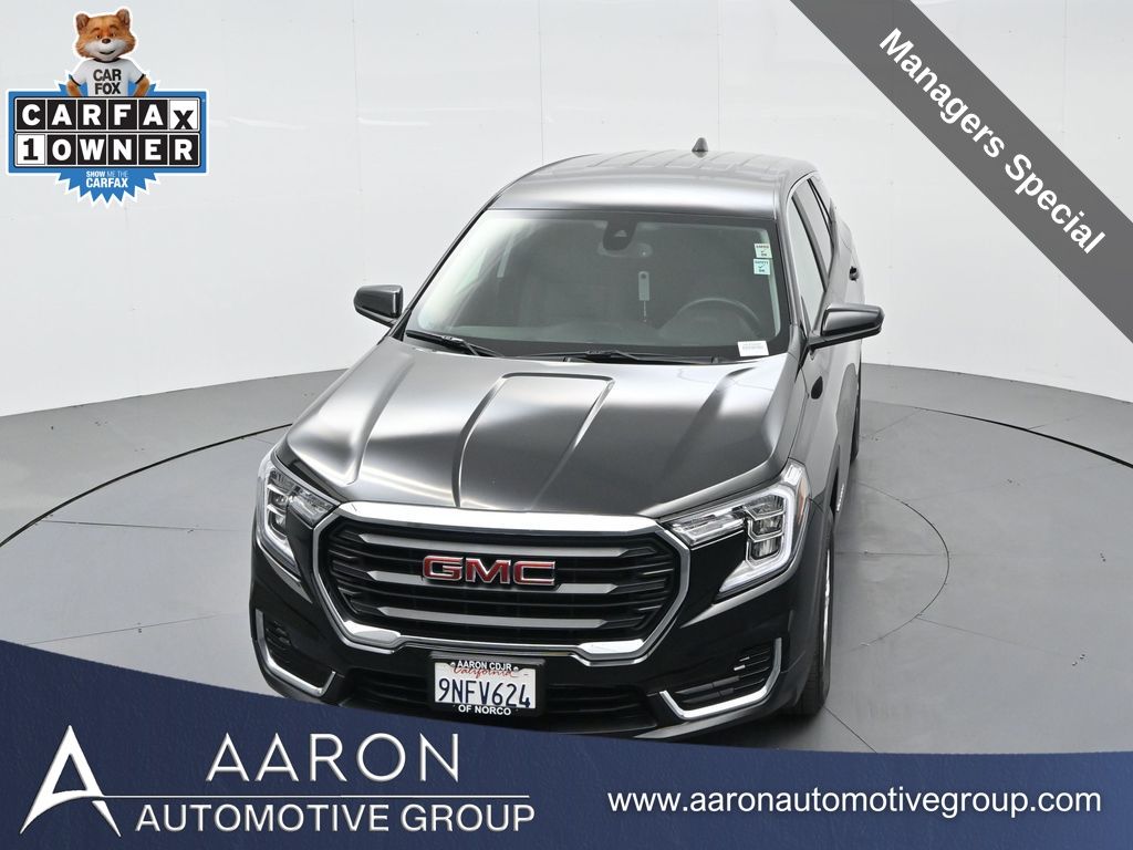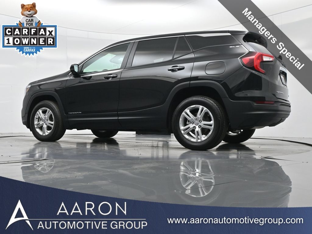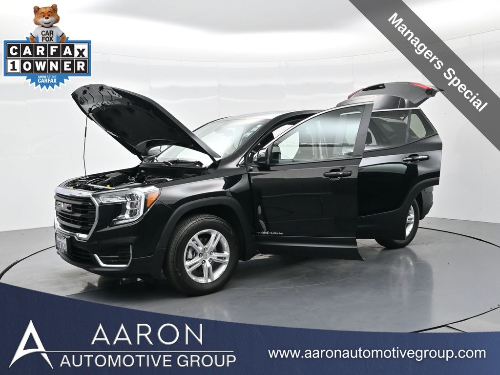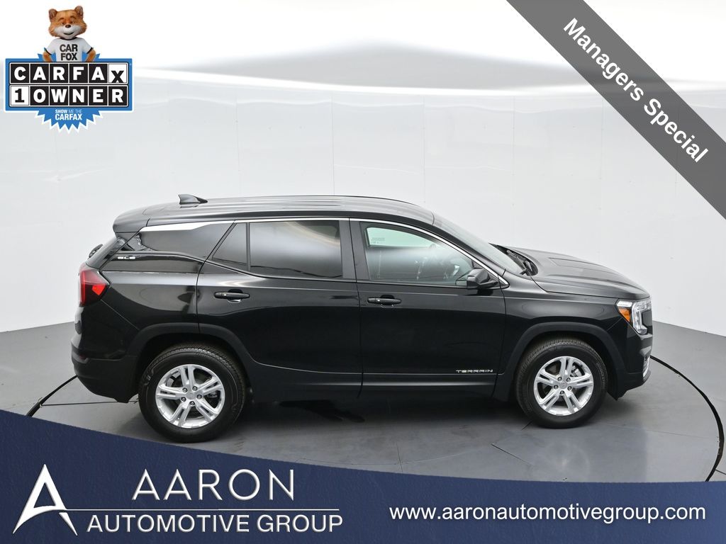 Spacious, confident, and impressively efficient, this 2024 GMC Terrain SLE AWD blends bold styling, advanced safety tech, and all-weather capability into a compact SUV designed to adapt to your daily life. With just 23,808 miles and a clean Carfax history, this one-owner Terrain offers exceptional value with peace of mind. Under the hood, the 1.5L turbocharged 4-cylinder engine delivers the perfect balance of power and efficiency, paired with a smooth-shifting 9-speed automatic transmission and advanced all-wheel drive for optimal traction. It delivers an EPA-estimated 23 MPG city and 28 MPG highway, making it a practical choice for both commuters and small families. Dressed in Ebony Twilight Metallic over Jet Black cloth interior, this Terrain SLE stands out with LED signature daytime running lamps, 17-inch aluminum wheels, and refined body styling that reflects GMCs precision design philosophy. Inside, the cabin is loaded with intuitive features including a 7-inch GMC Infotainment System touchscreen, Apple CarPlay and Android Auto compatibility, Bluetooth audio streaming, SiriusXM trial subscription, OnStar with Wi-Fi hotspot capability, two USB charge ports, and a rear vision camera. Comfort and convenience are further enhanced by automatic climate control, deep-tinted rear glass, a flat-folding rear seatback, and keyless open and start. Safety is a top priority with GMC Pro Safety, which includes automatic emergency braking, forward collision alert, front pedestrian braking, lane keep assist with lane departure warning, Intelli-Beam automatic high beams, and a following distance indicatorall designed to support confident driving in every condition. With its practical layout, confident road manners, and premium touchpoints throughout, the 2024 Terrain SLE is a smart choice for drivers looking for modern style and versatility without compromise. Backed by a 5-year/60,000-mile powertrain warranty and a 3-year/36,000-mile bumper-to-bumper limited warranty, this low-mileage Terrain is ready for whatever your journey holds. Visit us today and experience why more drivers are turning to GMC for performance, safety, and value in one sleek package.