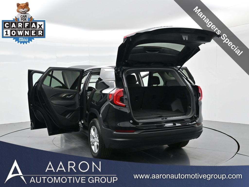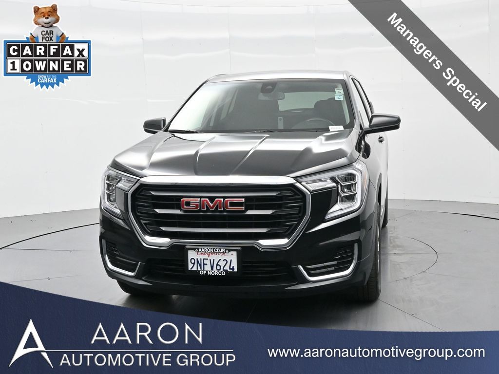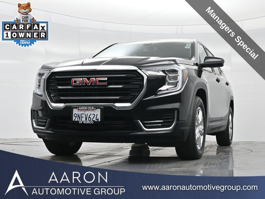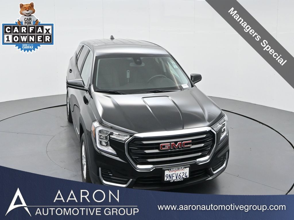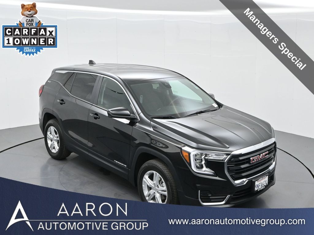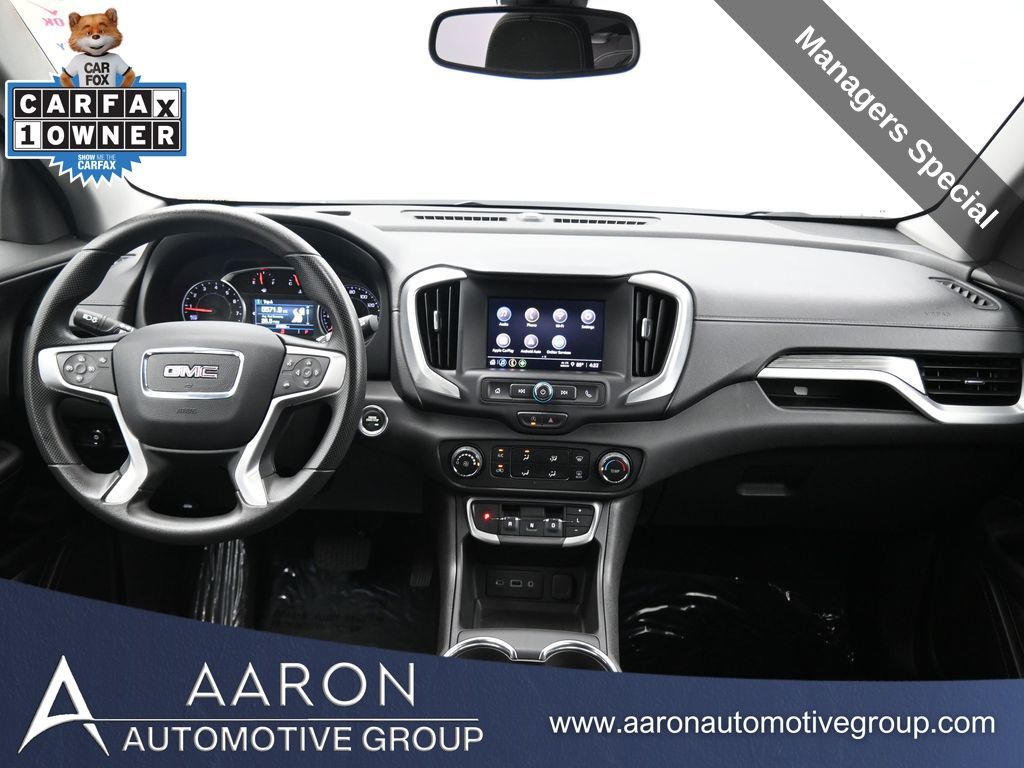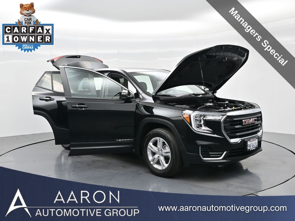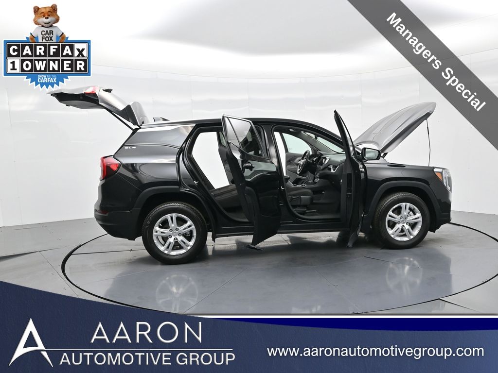 Spacious, confident, and impressively efficient, this 2024 GMC Terrain SLE AWD blends bold styling, advanced safety tech, and all-weather capability into a compact SUV designed to adapt to your daily life. With just 23,808 miles and a clean Carfax history, this one-owner Terrain offers exceptional value with peace of mind. Under the hood, the 1.5L turbocharged 4-cylinder engine delivers the perfect balance of power and efficiency, paired with a smooth-shifting 9-speed automatic transmission and advanced all-wheel drive for optimal traction. It delivers an EPA-estimated 23 MPG city and 28 MPG highway, making it a practical choice for both commuters and small families. Dressed in Ebony Twilight Metallic over Jet Black cloth interior, this Terrain SLE stands out with LED signature daytime running lamps, 17-inch aluminum wheels, and refined body styling that reflects GMCs precision design philosophy. Inside, the cabin is loaded with intuitive features including a 7-inch GMC Infotainment System touchscreen, Apple CarPlay and Android Auto compatibility, Bluetooth audio streaming, SiriusXM trial subscription, OnStar with Wi-Fi hotspot capability, two USB charge ports, and a rear vision camera. Comfort and convenience are further enhanced by automatic climate control, deep-tinted rear glass, a flat-folding rear seatback, and keyless open and start. Safety is a top priority with GMC Pro Safety, which includes automatic emergency braking, forward collision alert, front pedestrian braking, lane keep assist with lane departure warning, Intelli-Beam automatic high beams, and a following distance indicatorall designed to support confident driving in every condition. With its practical layout, confident road manners, and premium touchpoints throughout, the 2024 Terrain SLE is a smart choice for drivers looking for modern style and versatility without compromise. Backed by a 5-year/60,000-mile powertrain warranty and a 3-year/36,000-mile bumper-to-bumper limited warranty, this low-mileage Terrain is ready for whatever your journey holds. Visit us today and experience why more drivers are turning to GMC for performance, safety, and value in one sleek package.