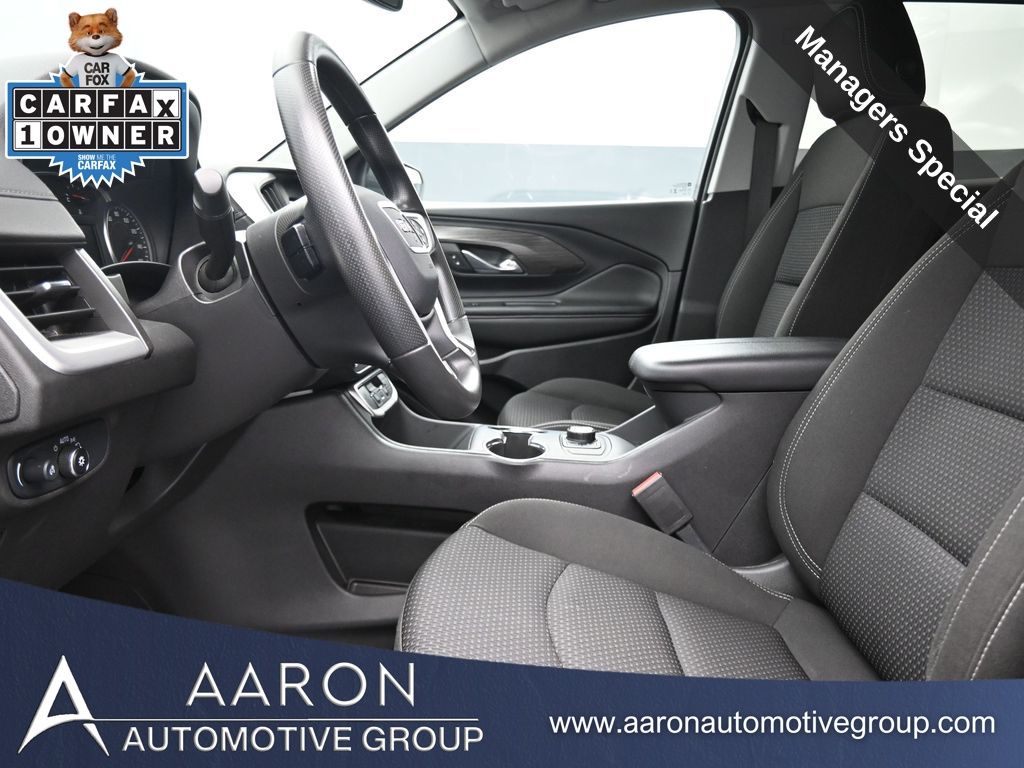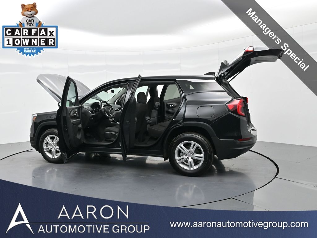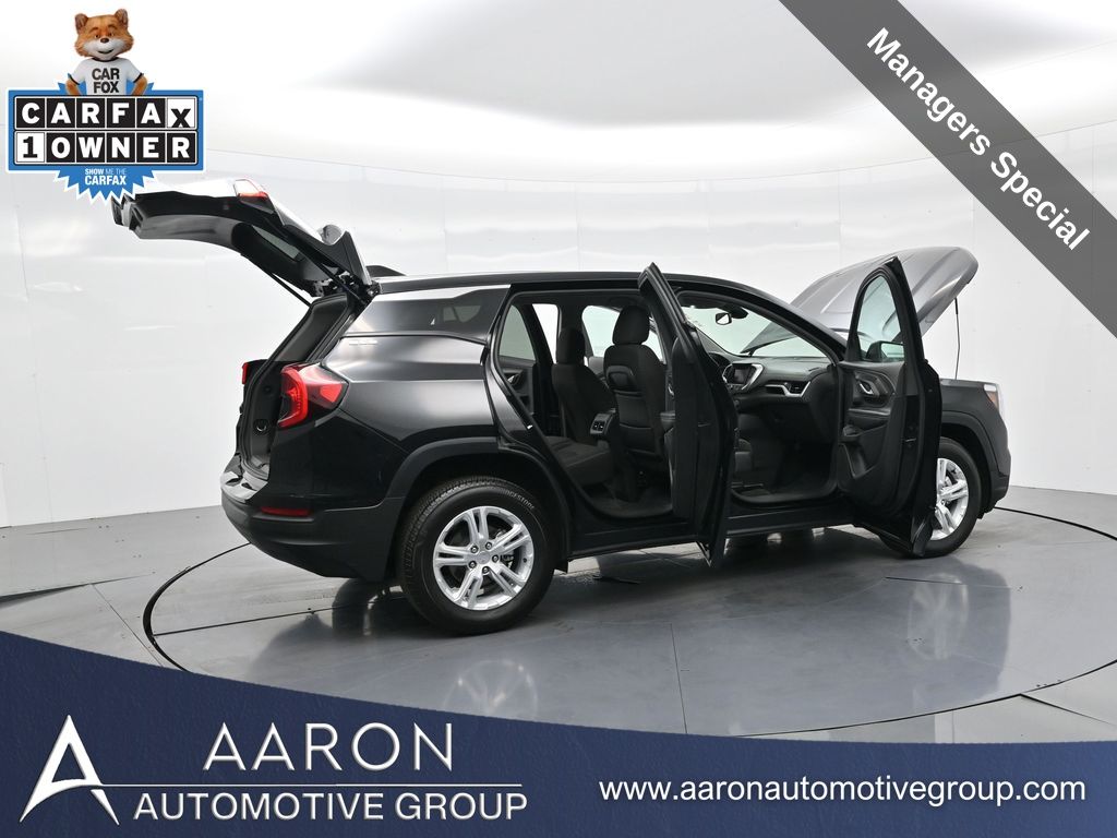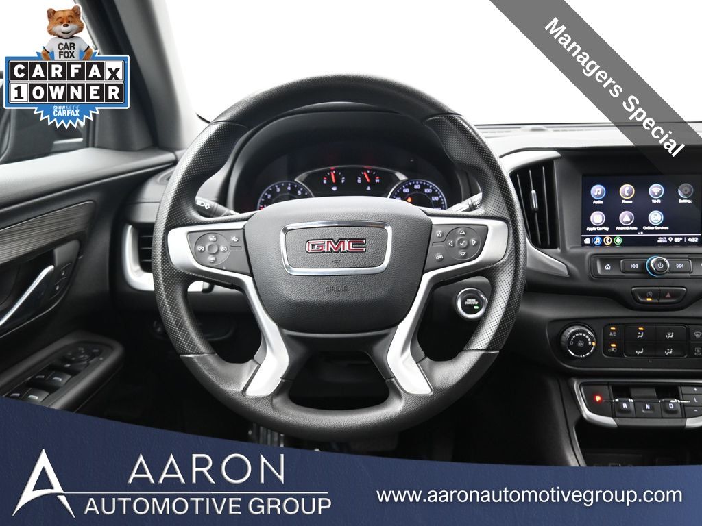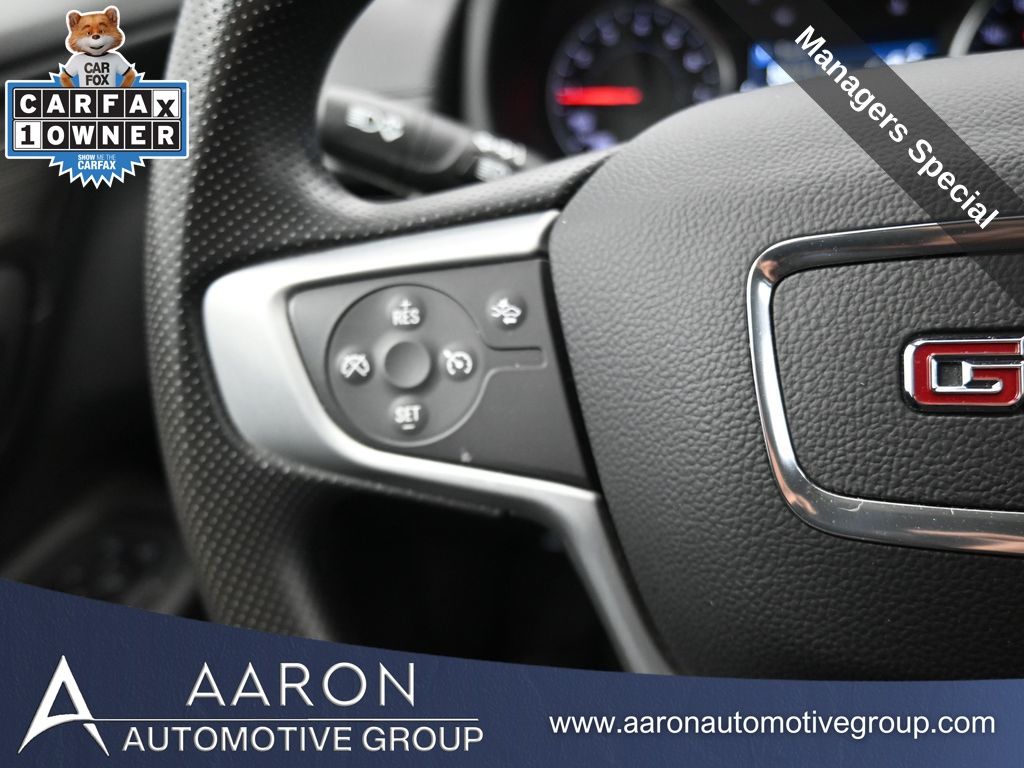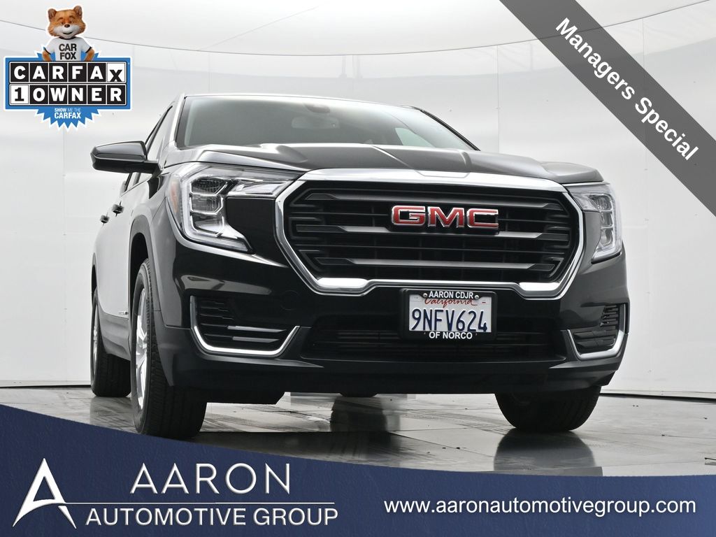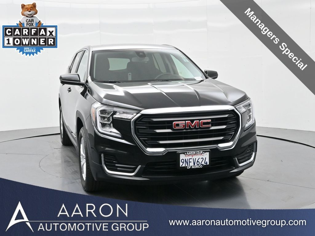 Spacious, confident, and impressively efficient, this 2024 GMC Terrain SLE AWD blends bold styling, advanced safety tech, and all-weather capability into a compact SUV designed to adapt to your daily life. With just 23,808 miles and a clean Carfax history, this one-owner Terrain offers exceptional value with peace of mind. Under the hood, the 1.5L turbocharged 4-cylinder engine delivers the perfect balance of power and efficiency, paired with a smooth-shifting 9-speed automatic transmission and advanced all-wheel drive for optimal traction. It delivers an EPA-estimated 23 MPG city and 28 MPG highway, making it a practical choice for both commuters and small families. Dressed in Ebony Twilight Metallic over Jet Black cloth interior, this Terrain SLE stands out with LED signature daytime running lamps, 17-inch aluminum wheels, and refined body styling that reflects GMCs precision design philosophy. Inside, the cabin is loaded with intuitive features including a 7-inch GMC Infotainment System touchscreen, Apple CarPlay and Android Auto compatibility, Bluetooth audio streaming, SiriusXM trial subscription, OnStar with Wi-Fi hotspot capability, two USB charge ports, and a rear vision camera. Comfort and convenience are further enhanced by automatic climate control, deep-tinted rear glass, a flat-folding rear seatback, and keyless open and start. Safety is a top priority with GMC Pro Safety, which includes automatic emergency braking, forward collision alert, front pedestrian braking, lane keep assist with lane departure warning, Intelli-Beam automatic high beams, and a following distance indicatorall designed to support confident driving in every condition. With its practical layout, confident road manners, and premium touchpoints throughout, the 2024 Terrain SLE is a smart choice for drivers looking for modern style and versatility without compromise. Backed by a 5-year/60,000-mile powertrain warranty and a 3-year/36,000-mile bumper-to-bumper limited warranty, this low-mileage Terrain is ready for whatever your journey holds. Visit us today and experience why more drivers are turning to GMC for performance, safety, and value in one sleek package.