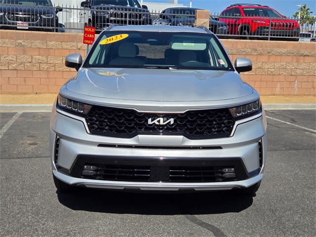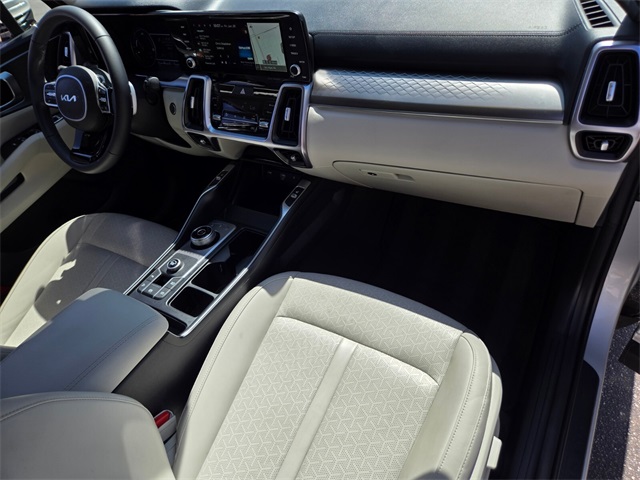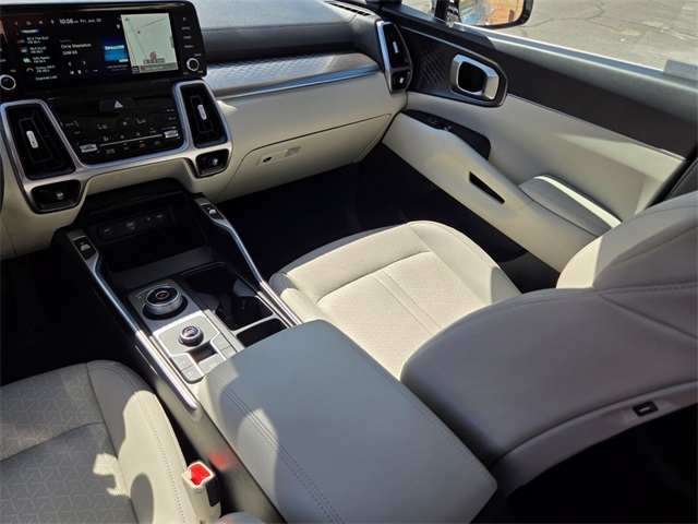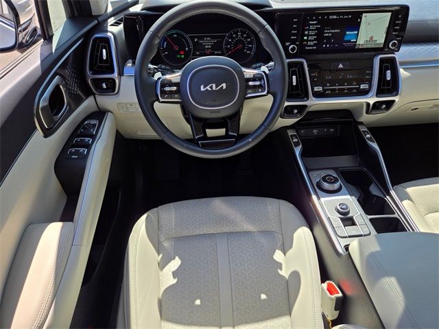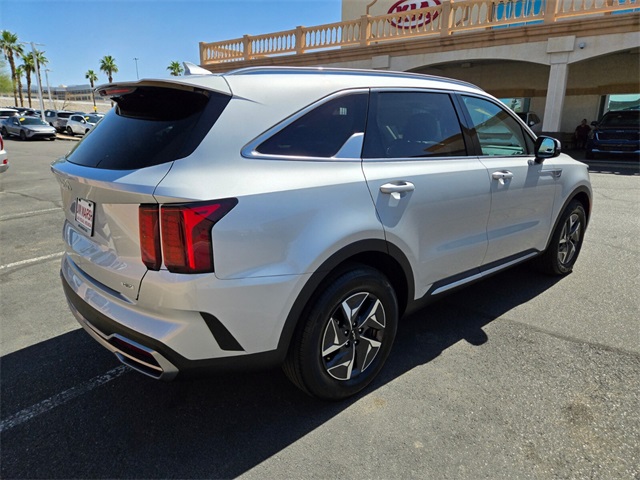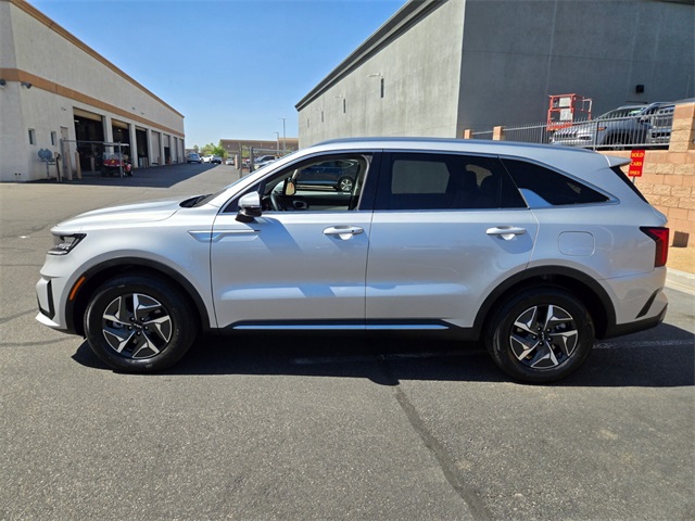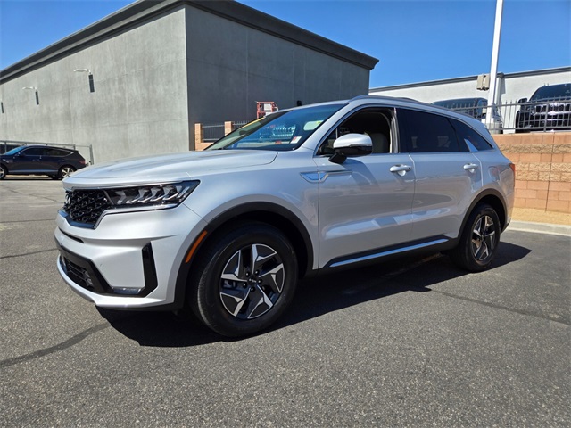 Odometer is 8529 miles below market average!39/35 City/Highway MPGSilky Silver 2023 Kia Sorento Hybrid EX FWD 6-Speed Automatic 1.6L I4 DGI Hybrid Turbocharged DOHC 16V LEV3-ULEV70 1.6L I4 DGI Hybrid Turbocharged DOHC 16V LEV3-ULEV70.If you don't drive here, you can't save here!Price may not include recon fee. 1.6L I4 DGI Hybrid Turbocharged DOHC 16V LEV3-ULEV70, 3rd row seats: split-bench, 4-Wheel Disc Brakes, 6 Speakers, ABS brakes, Air Conditioning, Alloy wheels, AM/FM radio: SiriusXM, Apple CarPlay & Android Auto, Auto High-beam Headlights, Automatic temperature control, Axle Ratio: 3.510, Brake assist, Bumpers: body-color, Carpet Floor Mats, Delay-off headlights, Driver door bin, Driver vanity mirror, Dual front impact airbags, Dual front side impact airbags, Electronic Stability Control, Emergency communication system, Exterior Parking Camera Rear, Four wheel independent suspension, Front anti-roll bar, Front Bucket Seats, Front Center Armrest, Front dual zone A/C, Front fog lights, Front reading lights, Fully automatic headlights, Heated door mirrors, Heated Front Bucket Seats, Heated front seats, Illuminated entry, Knee airbag, Leather steering wheel, Low tire pressure warning, Navigation System, Occupant sensing airbag, Outside temperature display, Overhead airbag, Overhead console, Panic alarm, Passenger door bin, Passenger vanity mirror, Power door mirrors, Power driver seat, Power Liftgate, Power passenger seat, Power steering, Power windows, Radio data system, Radio: AM/FM/HD Radio/SiriusXM Audio System, Rear air conditioning, Rear anti-roll bar, Rear reading lights, Rear window defroster, Rear window wiper, Rear-Seat Entertainment, Remote keyless entry, Roof rack: rails only, Security system, Smart Key w/ Push Button and Remote Start, Speed control, Speed-sensing steering, Split folding rear seat, Spoiler, Steering wheel mounted audio controls, SynTex Artificial Leather Seat Trim, Tachometer, Telescoping steering wheel, Tilt steering wheel, Traction control, Trip computer, Turn signal indicator mirrors, Variably intermittent wipers, and Wheels: 7.0J x 17" Machine-Finished Aero Alloy.