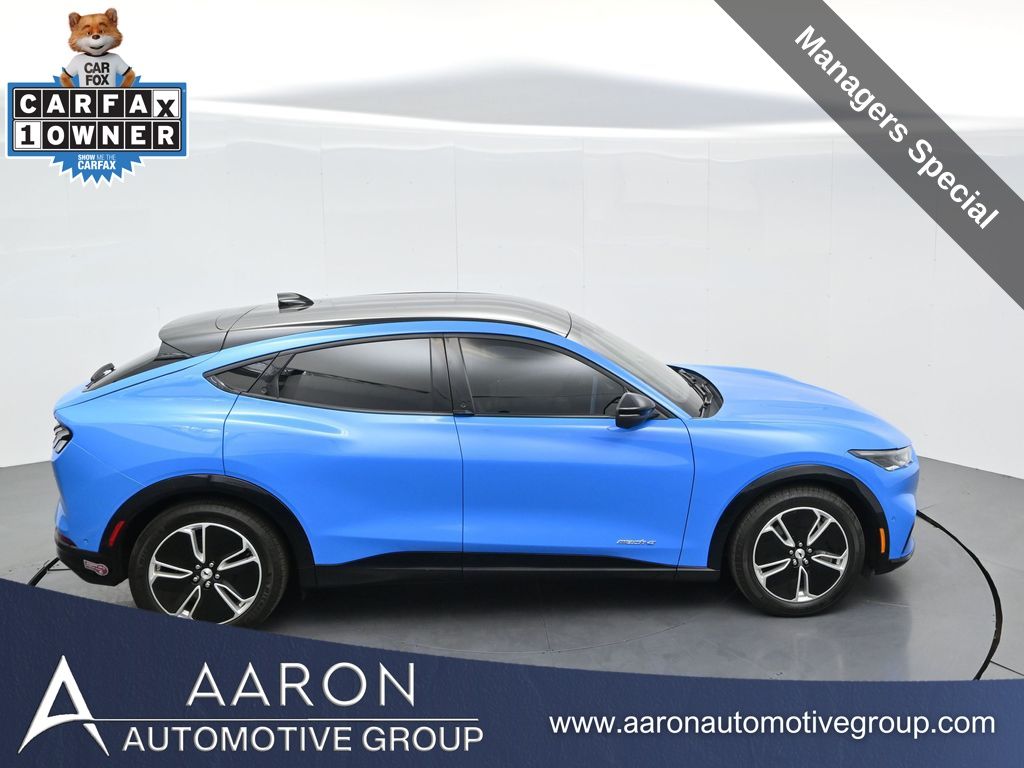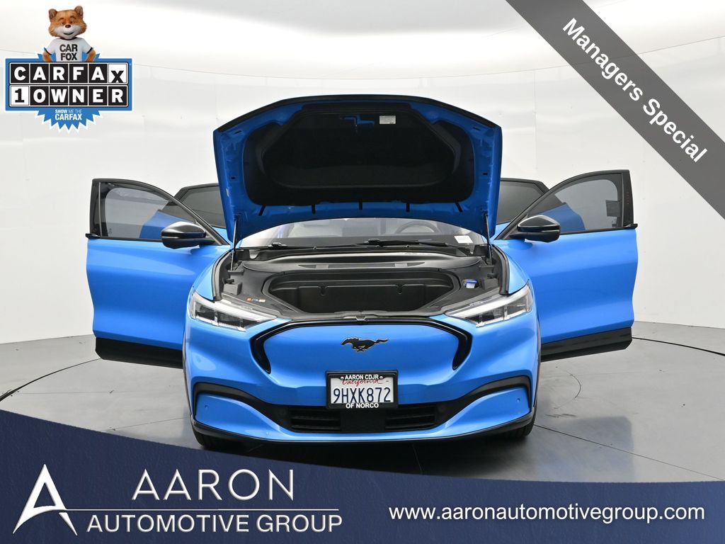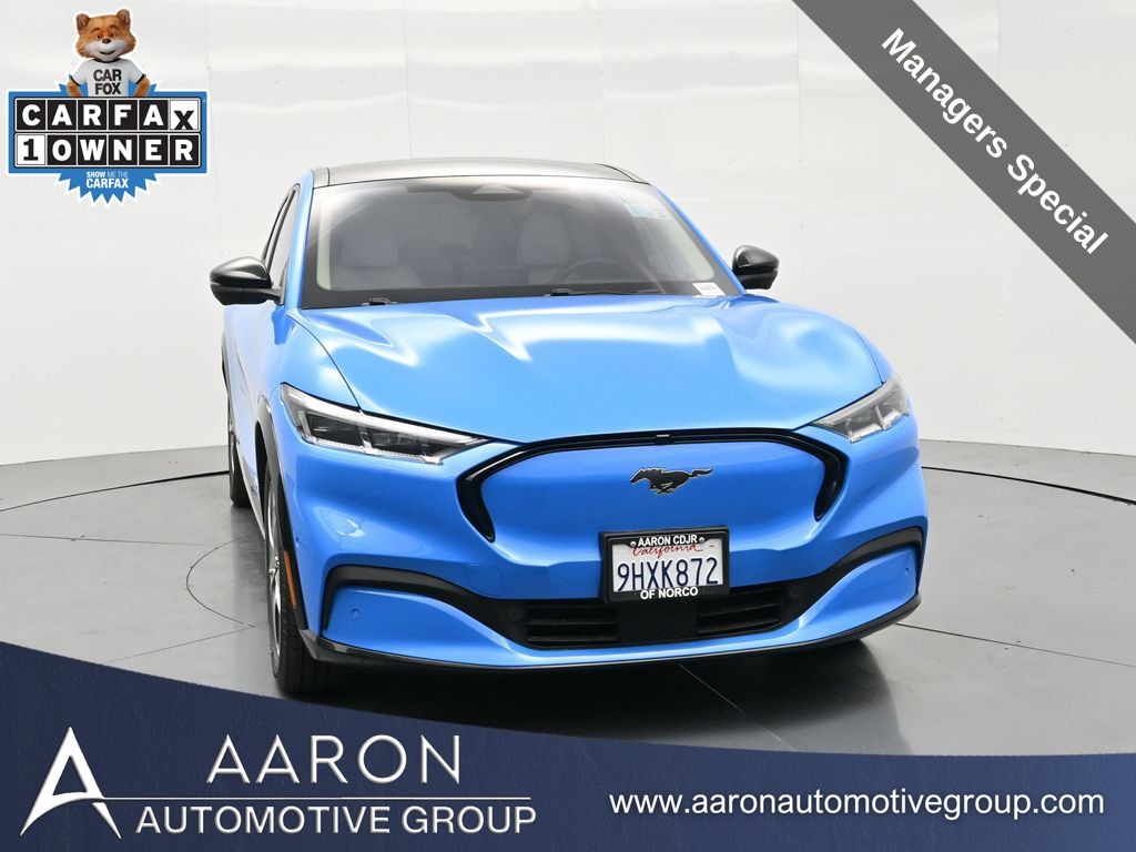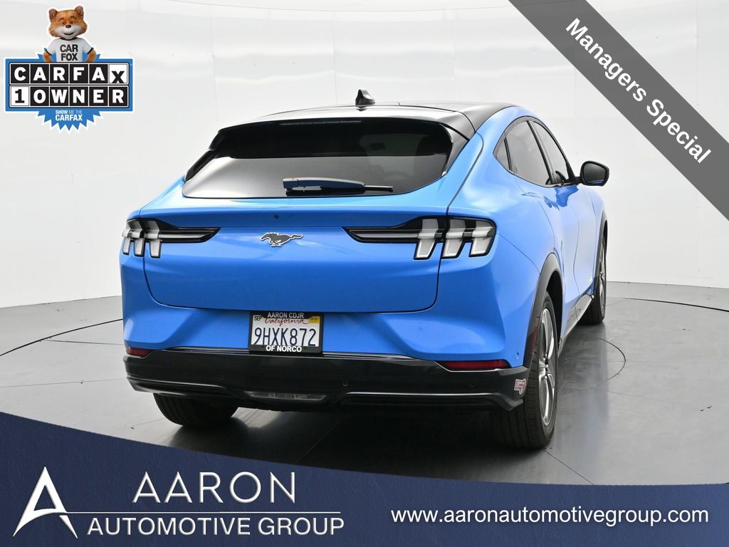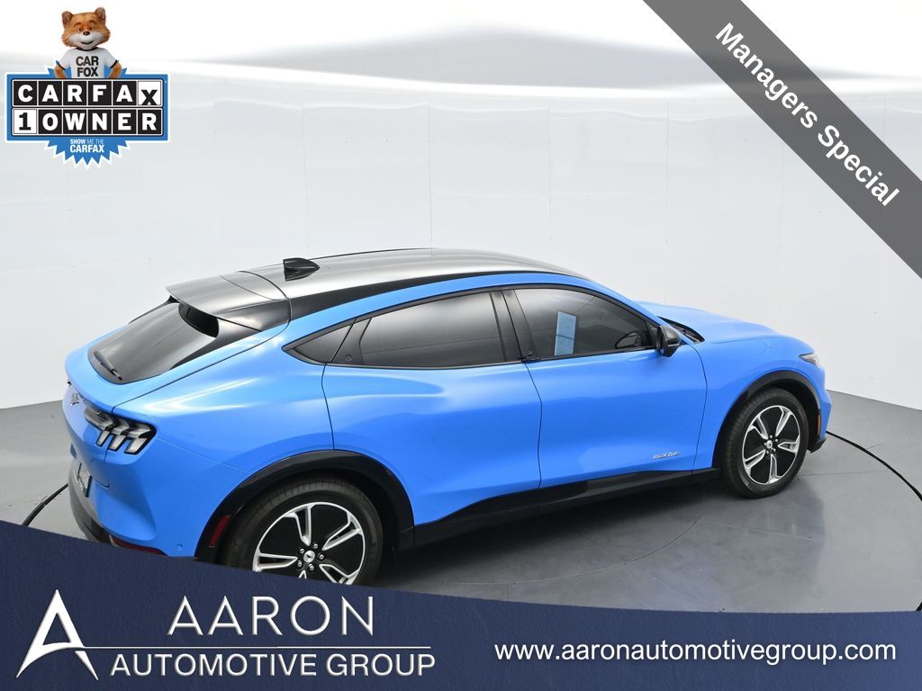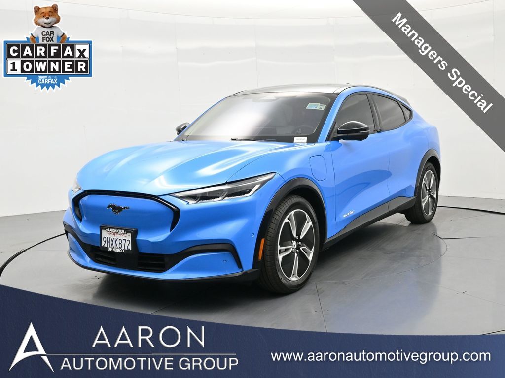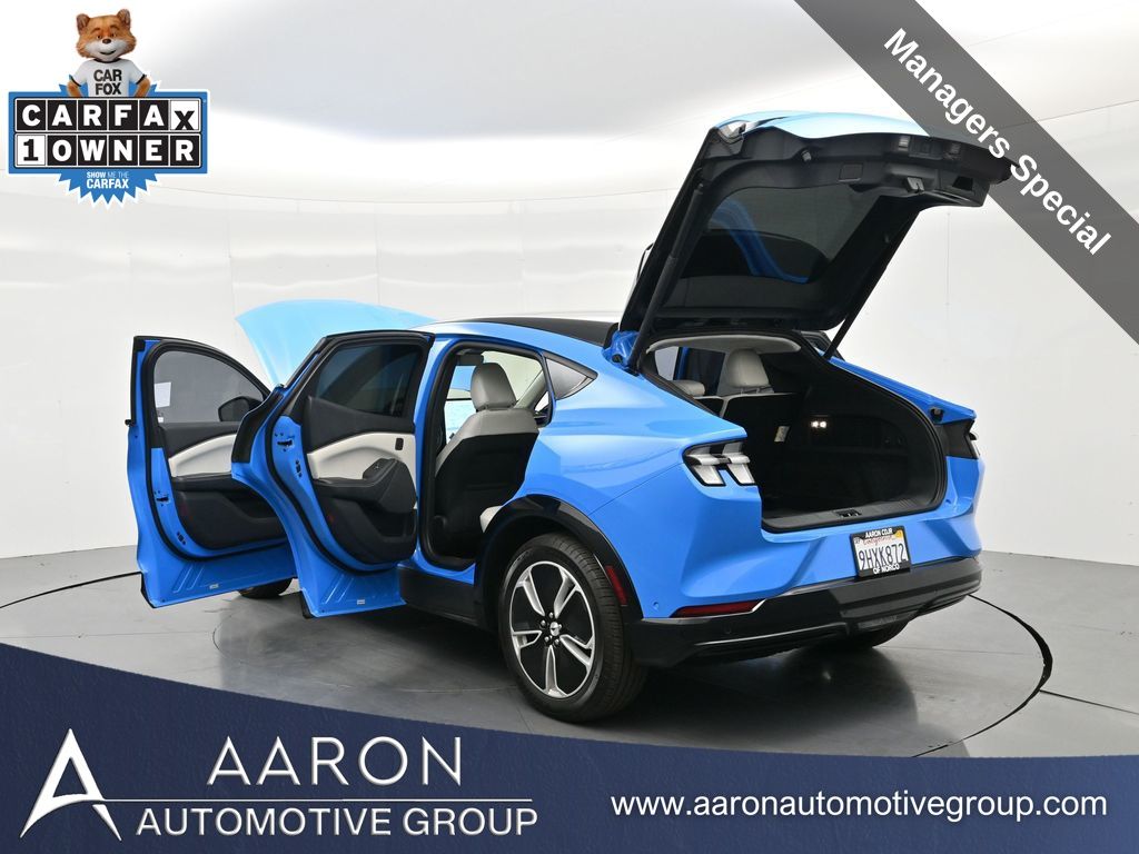 Experience the future of performance and design with this all-electric 2023 Ford Mustang Mach-E Premium, a rear-wheel drive crossover that blends iconic Mustang DNA with cutting-edge EV innovation. With just 23,265 miles and a clean one-owner Carfax showing consistent service, this Grabber Blue Metallic Mach-E offers exhilarating electric driving with the added confidence of remaining factory warranty. Powered by a permanent magnet motor and 91kWh extended-range lithium-ion battery, this Premium trim delivers seamless torque, whisper-quiet acceleration, and an impressive EPA-estimated range of up to 310 miles on a full charge. Ideal for daily commuting and road-tripping alike. Enjoy the convenience of multiple charging solutions including a mobile power cord and access to the BlueOval Charge Network. This Premium model is loaded with luxury and tech-forward features like perforated ActiveX heated front seats, a panoramic fixed-glass roof, and a SYNC 4A infotainment system with a massive 15.5-inch touchscreen, Apple CarPlay and Android Auto integration, enhanced voice recognition, and SiriusXM with 360L. Driver-assist technology is state-of-the-art, featuring Ford Co-Pilot360 Active 2.0 with Adaptive Cruise Control, Intersection Assist, Lane Centering, Evasive Steering Assist, and a full surround-view camera system for complete situational awareness. The interior feels upscale with a heated steering wheel, ambient lighting, aluminum and Carbonized Gray trim accents, and a power hands-free liftgate. Safety is comprehensive with Blind Spot Information System (BLIS), rear cross-traffic alert, Pre-Collision Assist with automatic emergency braking, and reverse sensing system. Additional upgrades include 19-inch shadow silver-painted aluminum wheels, Gray/Black two-tone interior with metallic pedals, memory driver's seat, dual-zone climate control, and wireless charging pad. Built for those who want the muscle of a Mustang with the forward-thinking power of electrification, this Mach-E Premium offers spirited handling, spacious comfort, and standout efficiency all in one electrifying package. Visit us today and take your driving experience to the next level zero emissions, maximum impact.
