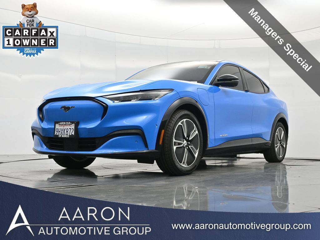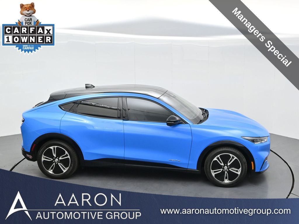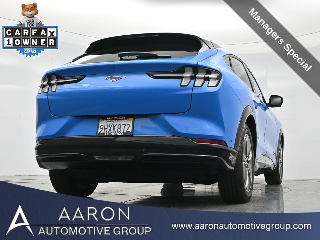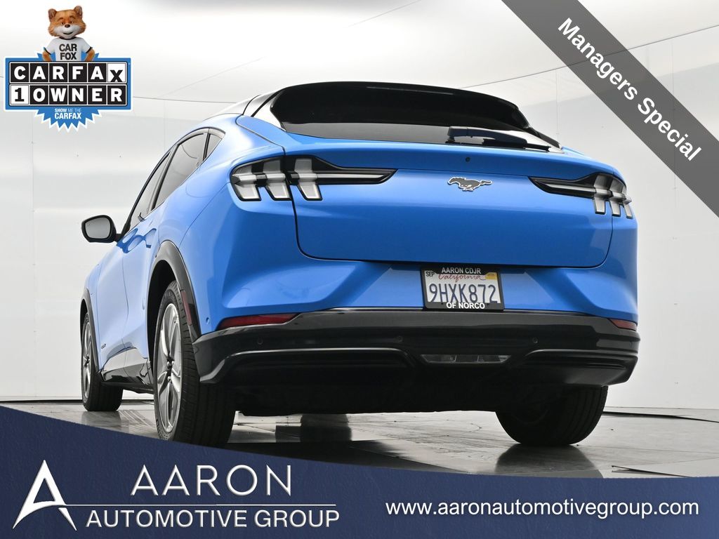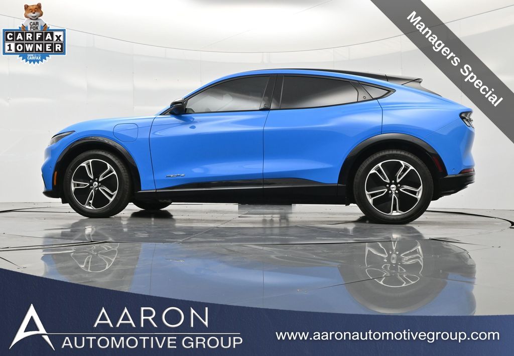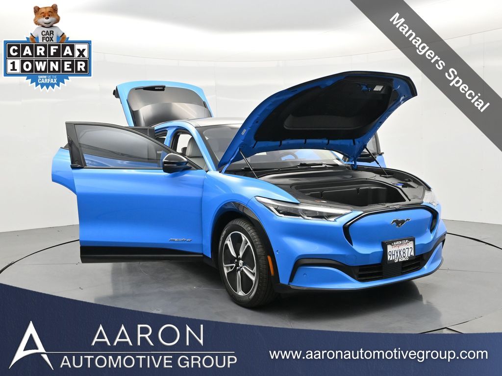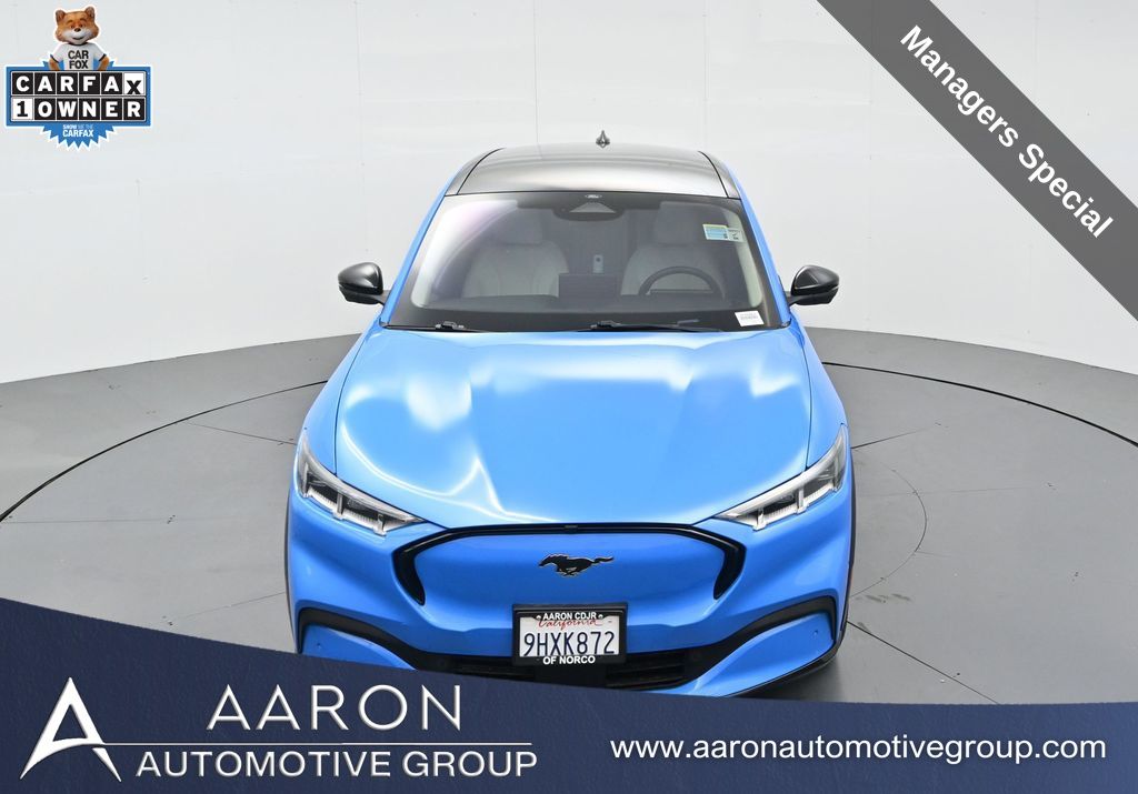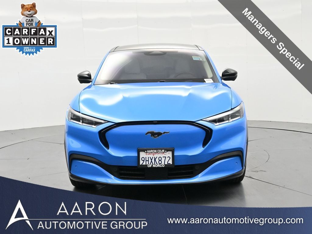 Experience the future of performance and design with this all-electric 2023 Ford Mustang Mach-E Premium, a rear-wheel drive crossover that blends iconic Mustang DNA with cutting-edge EV innovation. With just 23,265 miles and a clean one-owner Carfax showing consistent service, this Grabber Blue Metallic Mach-E offers exhilarating electric driving with the added confidence of remaining factory warranty. Powered by a permanent magnet motor and 91kWh extended-range lithium-ion battery, this Premium trim delivers seamless torque, whisper-quiet acceleration, and an impressive EPA-estimated range of up to 310 miles on a full charge. Ideal for daily commuting and road-tripping alike. Enjoy the convenience of multiple charging solutions including a mobile power cord and access to the BlueOval Charge Network. This Premium model is loaded with luxury and tech-forward features like perforated ActiveX heated front seats, a panoramic fixed-glass roof, and a SYNC 4A infotainment system with a massive 15.5-inch touchscreen, Apple CarPlay and Android Auto integration, enhanced voice recognition, and SiriusXM with 360L. Driver-assist technology is state-of-the-art, featuring Ford Co-Pilot360 Active 2.0 with Adaptive Cruise Control, Intersection Assist, Lane Centering, Evasive Steering Assist, and a full surround-view camera system for complete situational awareness. The interior feels upscale with a heated steering wheel, ambient lighting, aluminum and Carbonized Gray trim accents, and a power hands-free liftgate. Safety is comprehensive with Blind Spot Information System (BLIS), rear cross-traffic alert, Pre-Collision Assist with automatic emergency braking, and reverse sensing system. Additional upgrades include 19-inch shadow silver-painted aluminum wheels, Gray/Black two-tone interior with metallic pedals, memory driver's seat, dual-zone climate control, and wireless charging pad. Built for those who want the muscle of a Mustang with the forward-thinking power of electrification, this Mach-E Premium offers spirited handling, spacious comfort, and standout efficiency all in one electrifying package. Visit us today and take your driving experience to the next level zero emissions, maximum impact.