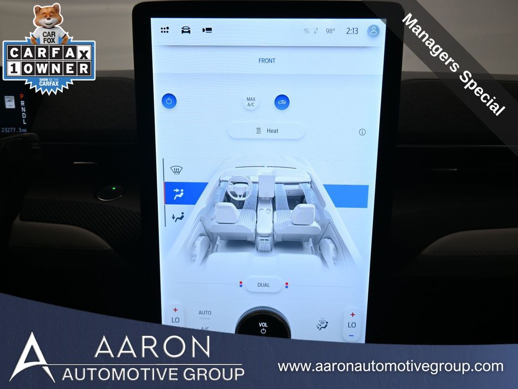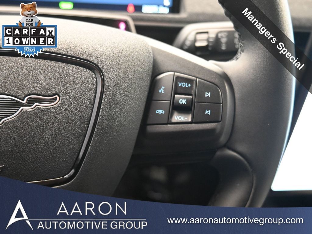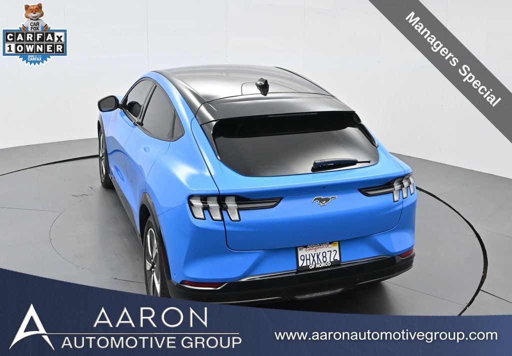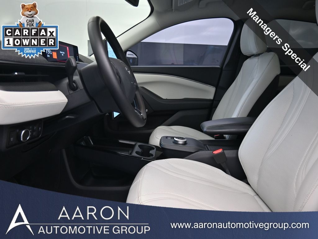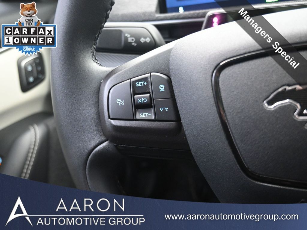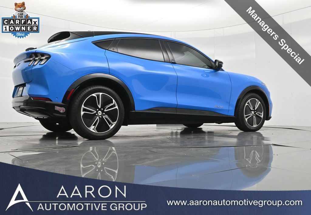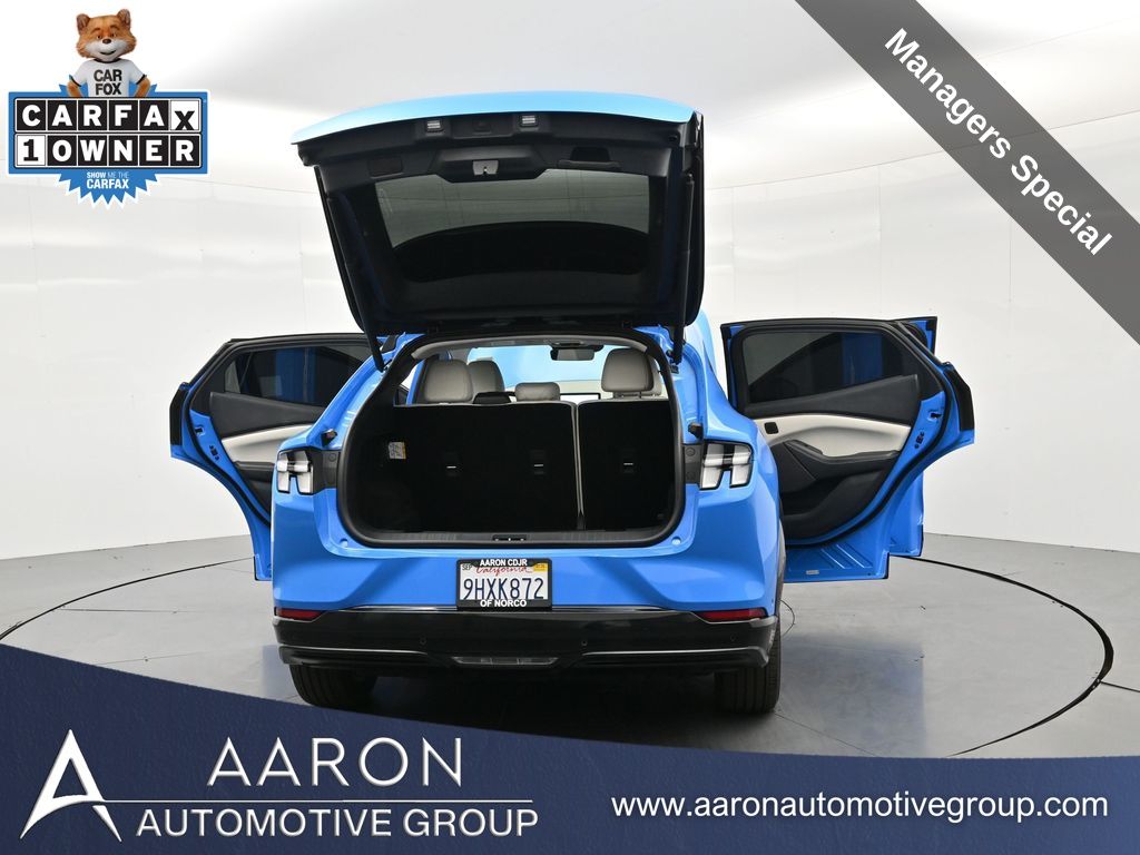 Experience the future of performance and design with this all-electric 2023 Ford Mustang Mach-E Premium, a rear-wheel drive crossover that blends iconic Mustang DNA with cutting-edge EV innovation. With just 23,265 miles and a clean one-owner Carfax showing consistent service, this Grabber Blue Metallic Mach-E offers exhilarating electric driving with the added confidence of remaining factory warranty. Powered by a permanent magnet motor and 91kWh extended-range lithium-ion battery, this Premium trim delivers seamless torque, whisper-quiet acceleration, and an impressive EPA-estimated range of up to 310 miles on a full charge. Ideal for daily commuting and road-tripping alike. Enjoy the convenience of multiple charging solutions including a mobile power cord and access to the BlueOval Charge Network. This Premium model is loaded with luxury and tech-forward features like perforated ActiveX heated front seats, a panoramic fixed-glass roof, and a SYNC 4A infotainment system with a massive 15.5-inch touchscreen, Apple CarPlay and Android Auto integration, enhanced voice recognition, and SiriusXM with 360L. Driver-assist technology is state-of-the-art, featuring Ford Co-Pilot360 Active 2.0 with Adaptive Cruise Control, Intersection Assist, Lane Centering, Evasive Steering Assist, and a full surround-view camera system for complete situational awareness. The interior feels upscale with a heated steering wheel, ambient lighting, aluminum and Carbonized Gray trim accents, and a power hands-free liftgate. Safety is comprehensive with Blind Spot Information System (BLIS), rear cross-traffic alert, Pre-Collision Assist with automatic emergency braking, and reverse sensing system. Additional upgrades include 19-inch shadow silver-painted aluminum wheels, Gray/Black two-tone interior with metallic pedals, memory driver's seat, dual-zone climate control, and wireless charging pad. Built for those who want the muscle of a Mustang with the forward-thinking power of electrification, this Mach-E Premium offers spirited handling, spacious comfort, and standout efficiency all in one electrifying package. Visit us today and take your driving experience to the next level zero emissions, maximum impact.