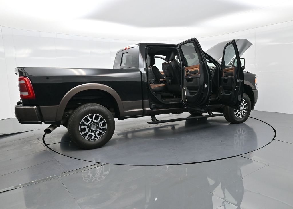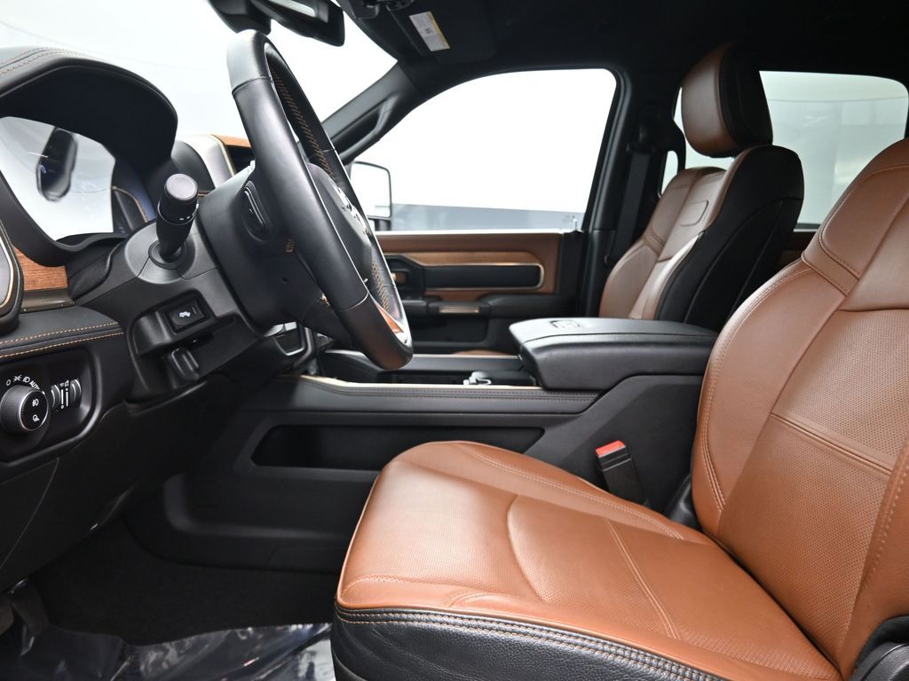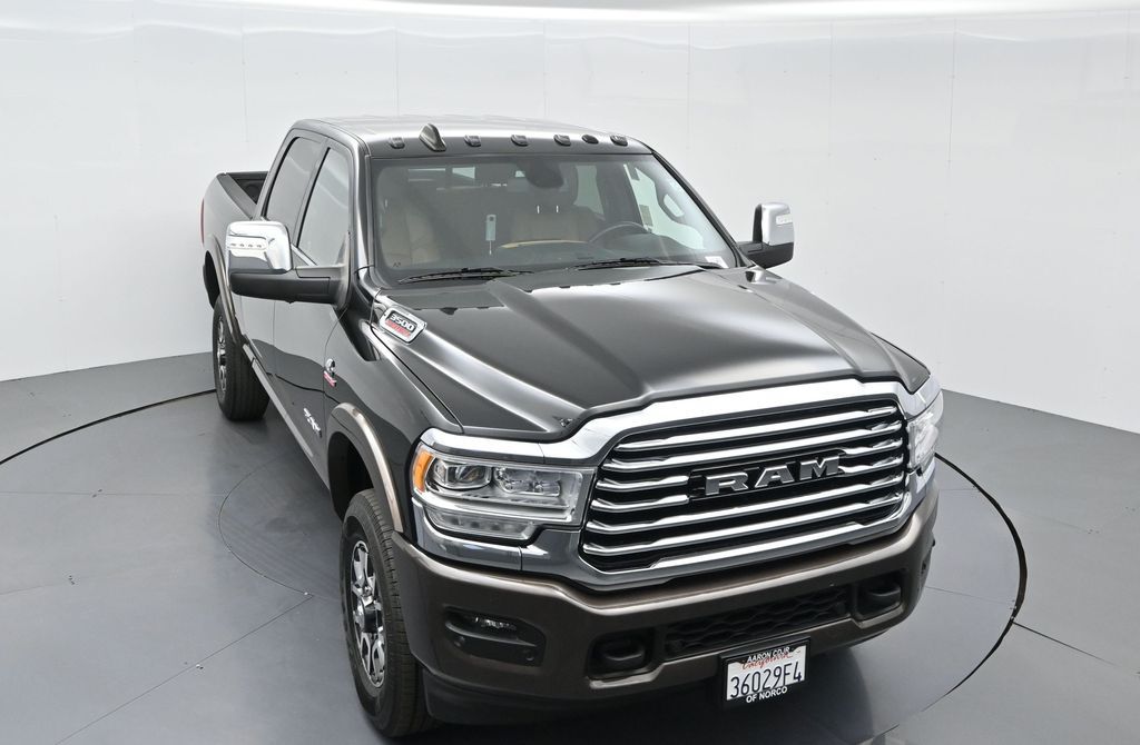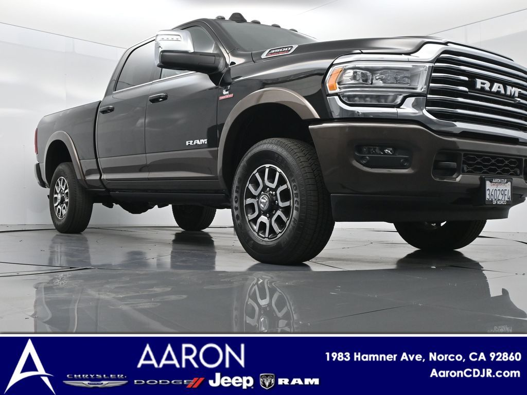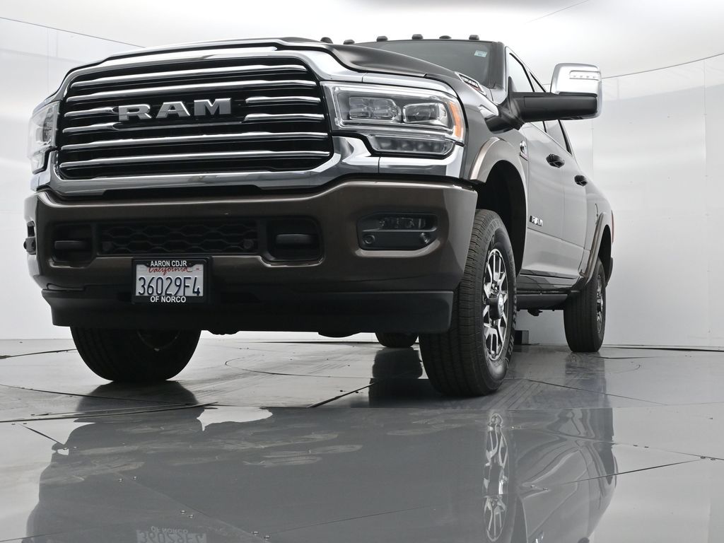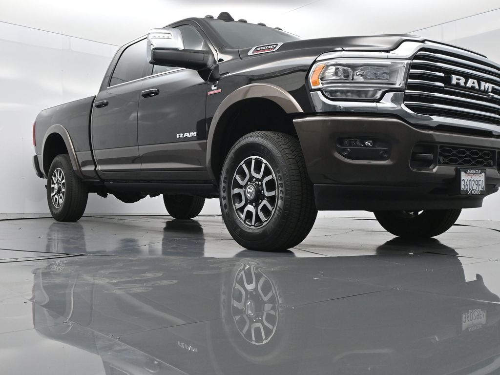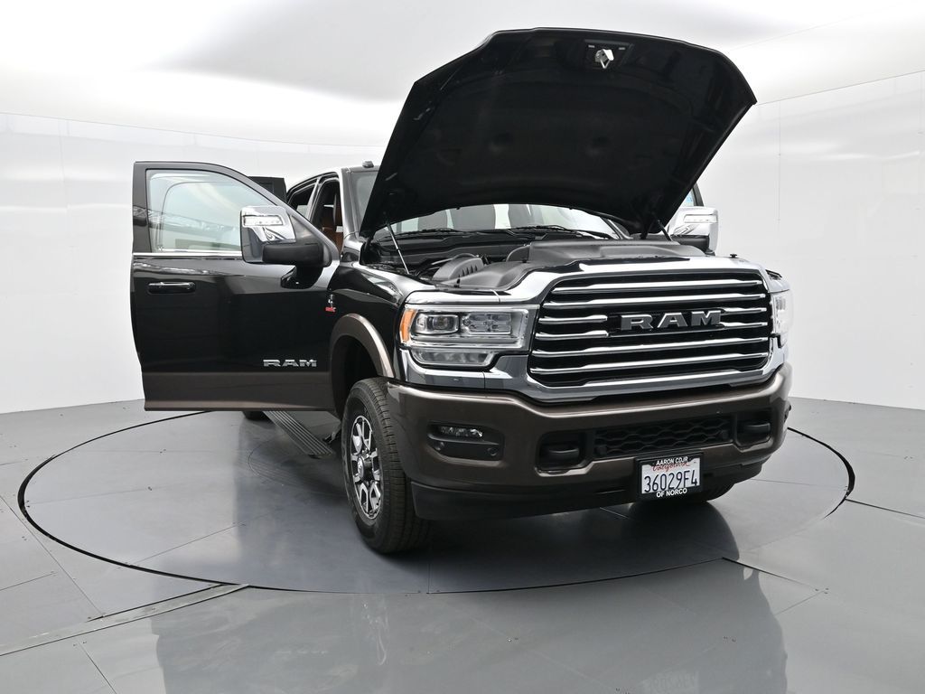 Commanding in both presence and capability, this 2024 Ram 3500 Limited Longhorn Crew Cab 4x4 is the epitome of heavy-duty luxury, built to handle the toughest jobs while surrounding you with premium comfort. With just 15,254 miles and a clean one-owner Carfax showing regular oil changes, this Diamond Black Crystal Pearl-Coat truck is powered by the legendary 6.7L Cummins Turbo Diesel I6 engine paired with a robust 6-speed automatic transmission, delivering massive towing and payload capacities for serious work and play. Outfitted with the Longhorn Level 1 Equipment Group, this truck elevates every drive with a Harman Kardon Premium Sound System, LED bed lighting, navigation, surround-view camera, ventilated and heated front and rear seats, premium leather upholstery, and genuine wood and metal interior accents that showcase exceptional craftsmanship. Practical upgrades like the Customer Preferred Package 21K, fifth-wheel/gooseneck towing prep, painted rear bumper, and clearance lamps enhance its utility and style. The exterior blends rugged durability with elegance, featuring chrome accents, 18-inch polished aluminum wheels, power deployable running boards, LED lighting, and RamBox cargo management. Inside, advanced tech includes a 12-inch touchscreen with Uconnect, Apple CarPlay, Android Auto, SiriusXM with 360L, and wireless charging. Safety is equally impressive, with blind spot monitoring, cross-path detection, adaptive cruise control, forward collision warning, and a 360-degree camera providing confidence in all driving conditions. Backed by a 5-year/100,000-mile powertrain warranty, this Limited Longhorn offers the perfect combination of muscle, refinement, and technology. Whether youre towing heavy equipment, hauling livestock, or embarking on long-distance trips in absolute comfort, this Ram 3500 Limited Longhorn is built to exceed expectations. Visit us today and experience the strength and sophistication that set this truck apart in the heavy-duty segment.