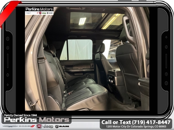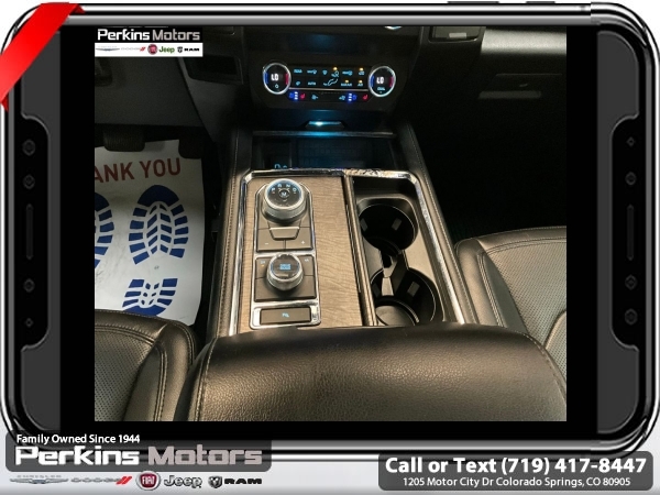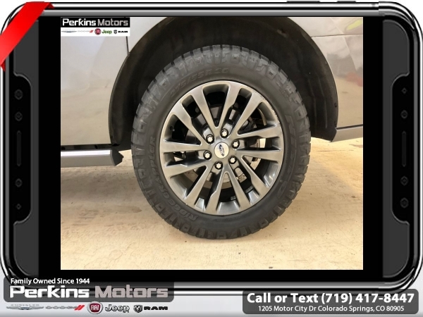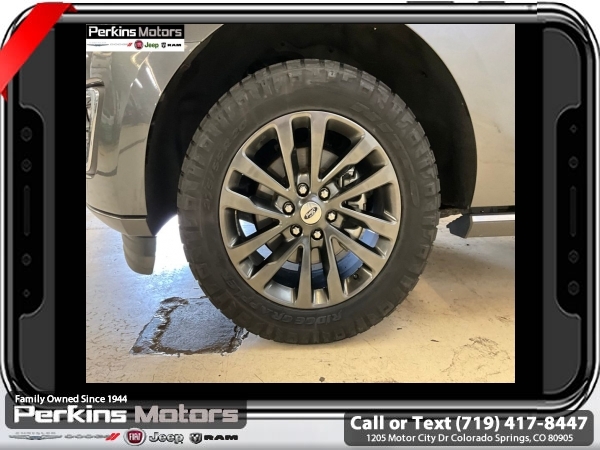 Magnetic 4WD EcoBoost 3.5L V6 GTDi DOHC 24V Twin Turbocharged 10-Speed Automatic<br><br><br>Check us out at www.perkinsmotors.com to see our specials! Since opening our doors in 1944, we’ve been proud to serve Colorado Springs, CO, and the surrounding areas of Pueblo, Castle Rock and Denver, CO. Throughout this time of being family owned for 80 years, we’ve maintained a firm commitment to our customers: to offer a wide selection of New Chrysler, Dodge, Fiat, Jeep, and Ram vehicles and quality pre-owned vehicles, and provide a quick, no-hassle car-buying process that ensures everyone drives off the lot satisfied with their purchase.<br><br><br>Equipment Group 301A Mid Package (Panoramic Vista Roof), 12 Speakers, 3.31 Axle Ratio, 3rd row seats: split-bench, 4-Wheel Disc Brakes, ABS brakes, Adjustable pedals, Air Conditioning, Alloy wheels, AM/FM radio: SiriusXM, Auto High-beam Headlights, Auto-dimming door mirrors, Auto-dimming Rear-View mirror, Automatic temperature control, Brake assist, Bumpers: body-color, Compass, Cruise Control, Delay-off headlights, Driver door bin, Driver vanity mirror, Dual front impact airbags, Dual front side impact airbags, Electronic Stability Control, Emergency communication system: SYNC 3 911 Assist, Exterior Parking Camera Rear, Four wheel independent suspension, Front anti-roll bar, Front Bucket Seats, Front Center Armrest, Front dual zone A/C, Front fog lights, Front License Plate Bracket, Front reading lights, Fully automatic headlights, Garage door transmitter, Heated & Ventilated Leather Front Captain's Chairs, Heated door mirrors, Heated front seats, Heated rear seats, Heated steering wheel, Illuminated entry, Leather steering wheel, Low tire pressure warning, Memory seat, Navigation System, Occupant sensing airbag, Outside temperature display, Overhead airbag, Overhead console, Panic alarm, Passenger door bin, Passenger vanity mirror, Pedal memory, Power door mirrors, Power driver seat, Power Liftgate, Power passenger seat, Power steering, Power windows, Radio data system, Radio: B&O Sound System by Bang & Olufsen, Rain sensing wipers, Rear air conditioning, Rear anti-roll bar, Rear audio controls, Rear reading lights, Rear window defroster, Rear window wiper, Reclining 3rd row seat, Remote keyless entry, Roof rack: rails only, Security system, SiriusXM Satellite Radio, Speed-sensing steering, Speed-Sensitive Wipers, Split folding rear seat, Steering wheel memory, Steering wheel mounted audio controls, SYNC 3 Communications & Entertainment System, Tachometer, Telescoping steering wheel, Tilt steering wheel, Traction control, Trip computer, Turn signal indicator mirrors, Variably intermittent wipers, Ventilated front seats, Voltmeter, and Wheels: 20 Premium Dark Tarnish-Painted.