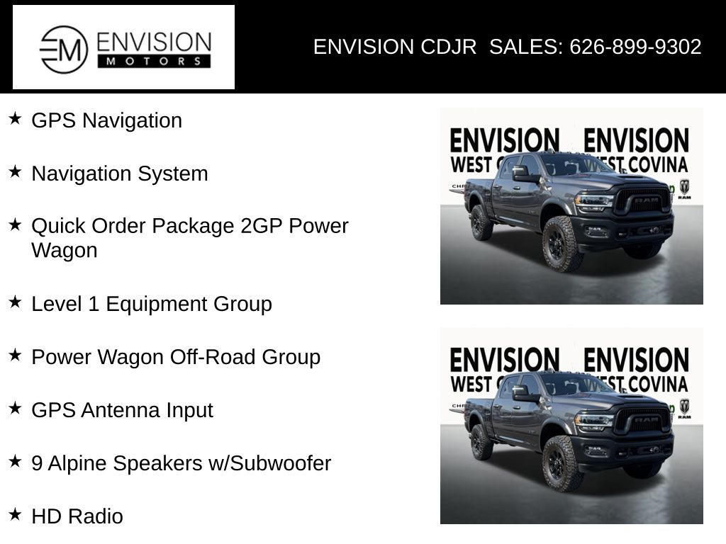 WE SPECIALIZE IN ALL CREDIT PROFILES! See what we can do for you! Call to find out (626) 899-9302.Certified. Clean CARFAX.Odometer is 9550 miles below market average! 12" Touchscreen Display, 2nd Row In Floor Storage Bins, 4.10 Axle Ratio, 4G LTE Wi-Fi Hot Spot, 9 Alpine Speakers w/Subwoofer, Alexa Built-In, Apple CarPlay, Auto Adjust In Reverse Exterior Mirrors, Auto Dim Exterior Mirror, Auto High Beam Headlamp Control, Auto Power-Folding Mirrors, Auto-Dimming Exterior Passenger Mirror, Black Exterior Mirrors, Body Color Door Handles, Connected Travel & Traffic Services, Connectivity - US/Canada, Disassociated Touchscreen Display, Exterior Mirrors Courtesy Lamps, Exterior Mirrors w/Heating Element, Exterior Mirrors w/Memory, Exterior Mirrors w/Supplemental Signals, For Details, Visit DriveUconnect.com, For More Info, Call 800-643-2112, Forward & Reverse Utility Lights, Front Disconnecting Stabilizer Bar, Front Door Accent Lighting, Global Telematics Box Module (TBM), Google Android Auto, GPS Antenna Input, GPS Navigation, HD Radio, Instrument Cluster Theme 5 - Power Wagon, Integrated Voice Command w/Bluetooth, LED Dome Lamp w/On/Off Switch, LED Interior Lighting, Level 1 Equipment Group, Mirror Running Lights, MOPAR Front & Rear Rubber Floor Mats, MOPAR Power Wagon Decal, Navigation System, Off-Road Information Pages, Overhead LED Lamps, Painted Semi-Texture Film Instrument Panel Bezels, Power Adjust Mirrors, Power Adjustable Convex Aux Mirrors, Power Adjustable Pedals w/Memory, Power Heated Fold Telescopic Mirrors w/Memory, Power Telescoping Mirrors, Power Wagon Instrument Panel Spec Plate, Power Wagon Off-Road Group, Power Wagon Tailgate Decal, Power Wagon Vertical Bar Grille w/RAM, Premium Overhead Console, Quick Order Package 2GP Power Wagon, Radio: Uconnect 5 Nav w/12.0" Display, Rain Sensitive Windshield Wipers, Raised Ride Height, RAM Articulink Suspension, Rear Door Accent Lighting, Rear Power Sliding Window, Rear Window Defroster, Remote Proximity Keyless Entry, Security Alarm, Selectable Tire Fill Alert, SiriusXM Radio Service, SiriusXM w/360L, Sport Performance Hood, Sun Visors w/Illuminated Vanity Mirrors, Trailer Tow Pages, Universal Garage Door Opener.Granite Crystal Metallic Clearcoat2024 Ram 2500 Power Wagon 4WD 8-Speed Automatic 6.4L V8FCA US LLC Certified Pre-Owned Details: * Vehicles Up to 75,000 Miles and/or 5 Model Years. 24-Hour Towing & Roadside Assistance, Car Rental Allowance, CARFAX® Vehicle History ReportTM and an Introductory 3-month Subscription to SiriusXM® Satellite Radio & Certified Warranty Upgrades * Roadside Assistance * Limited Warranty: 3 Month/3,000 Mile (whichever comes first) after new car warranty expires or from certified purchase date * Vehicle History * Powertrain Limited Warranty: 84 Month/100,000 Mile (whichever comes first) from original in-service date * Transferable Warranty * Warranty Deductible: $100 * 125 Point Inspection**********All Pricing and Advertised Prices for any/all vehicles offered for sale does not include dealer installed accessories which can be purchased for an additional cost.********** The Factory Rebates may not be available on this vehicle if you elect to take advantage of a Special Alternative APR or Special Lease program. Some Factory Rebates are California Resident specific and may vary for residents of other states. NO sales to Dealers, Brokers or Exporters. For out of state purchase, customers must be present to purchase. If shipping is required, dealership must facilitate; no exceptions. Please contact us for special Multi-Vehicle or Fleet pricing. Prices are plus government fees and taxes, any finance charges, $85 documentary fee, $29 electronic registration fee, any emission testing charge and $1.75 per new tire state tire fee. *** We make every effort to provide accurate information, but please verify before purchasing. Leasing & financing available on approved credit. Trade-ins accepted. Subject to prior sale.