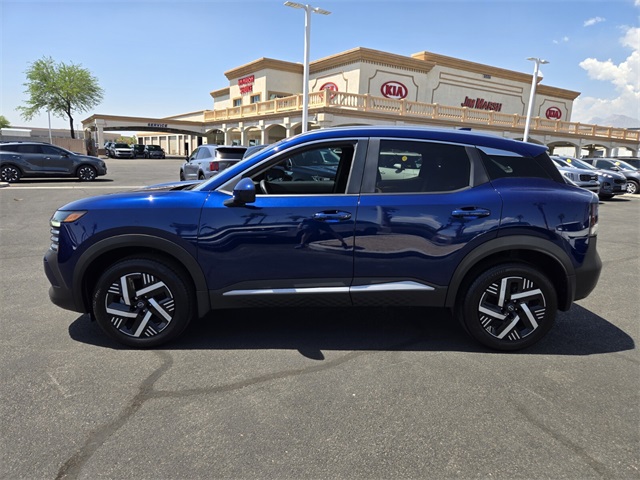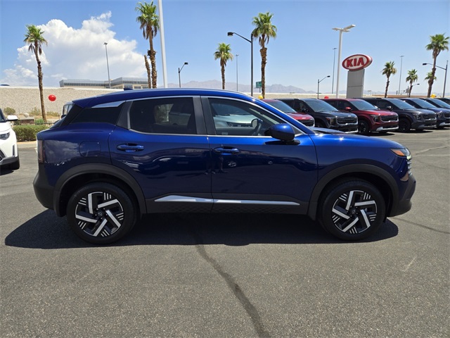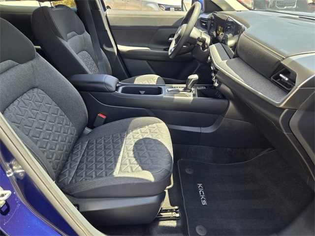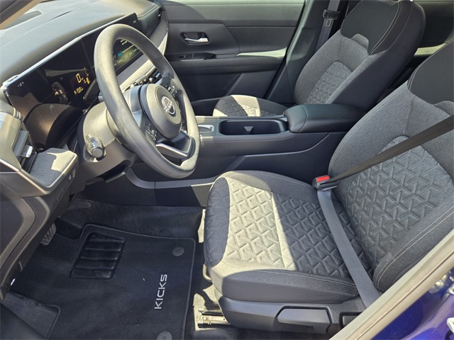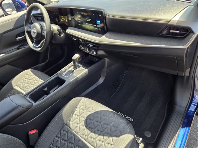 CARFAX One-Owner.Priced below KBB Fair Purchase Price!28/35 City/Highway MPGDeep Blue Pearl 2025 Nissan Kicks SV FWD CVT with Xtronic 2.0L DOHCIf you don't drive here, you can't save here!Price may not include recon fee. SV Premium Package (Heated Front Seats, Heated Mirrors, Illuminated Driver & Passenger Sun Visors, Panoramic Moonroof, Rear Floor Heater Ducts, Remote Engine Start, Roof Rails, Seat Back Pocket, and Sunglass Holder), 4 Speakers, 4-Wheel Disc Brakes, ABS brakes, Air Conditioning, AM/FM radio: Sirius, Auto High-beam Headlights, Blind Spot Warning, Brake assist, Bumpers: body-color, Carpeted Floor Mats & Underfloor Protector, Cloth Seat Trim, Driver door bin, Driver vanity mirror, Dual front impact airbags, Dual front side impact airbags, Electronic Stability Control, Front anti-roll bar, Front Bucket Seats, Front Center Armrest, Front reading lights, Front wheel independent suspension, Fully automatic headlights, Illuminated entry, Knee airbag, Low tire pressure warning, Occupant sensing airbag, Outside temperature display, Overhead airbag, Panic alarm, Passenger door bin, Passenger vanity mirror, Power door mirrors, Power steering, Power windows, Radio data system, Radio: AM/FM Audio System, Rear anti-roll bar, Rear Parking Sensors, Rear reading lights, Rear side impact airbag, Rear window defroster, Rear window wiper, Remote keyless entry, Security system, Speed control, Speed-sensing steering, Splash Guards, Split folding rear seat, Spoiler, Sport steering wheel, Steering wheel mounted audio controls, Tachometer, Telescoping steering wheel, Tilt steering wheel, Traction control, Trip computer, Variably intermittent wipers, Wheels: 17" Steel Flex w/Full Covers, and Wireless Apple CarPlay/Wireless Android Auto.