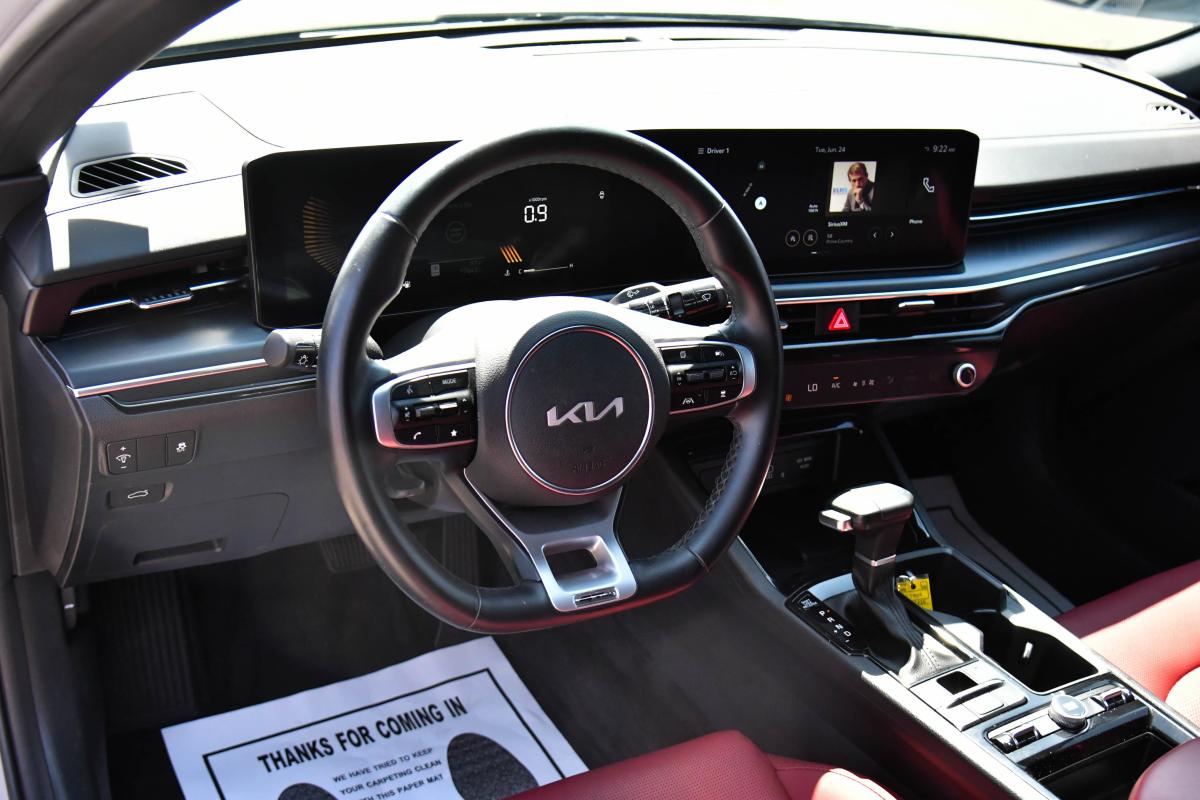 Scores 36 Highway MPG and 25 City MPG! This Kia K5 delivers a Regular Unleaded I-4 2.5 L/152 engine powering this Automatic transmission. WOLF GRAY, GT-LINE RED INTERIOR PACKAGE, GT-LINE PREMIUM PACKAGE -inc: Bose Premium Audio, 12 speakers including center speaker, subwoofer and external amplifier, Active Sound Design, LED Interior Lighting, Panoramic Sunroof.*This Kia K5 Comes Equipped with These Options *Window Grid Antenna, Wheels: 18 x 7.5J Gloss Black Machined Finish Alloy -inc: diamond cutting pattern, Variable Intermittent Wipers, Turn-By-Turn Navigation Directions, Trunk Rear Cargo Access, Trip Computer, Transmission: 8-Speed Automatic -inc: drive mode select system, Transmission w/Sequential Shift Control, Tires: P235/45R18 AS, Tire Specific Low Tire Pressure Warning.