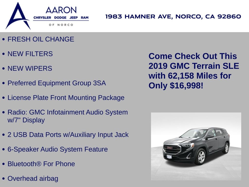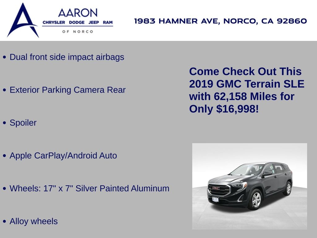 FRESH OIL CHANGE, NEW FILTERS, NEW WIPERS, Terrain SLE, 4D Sport Utility, 1.5L DOHC, 9-Speed Automatic, FWD, 2 USB Data Ports w/Auxiliary Input Jack, 6-Speaker Audio System Feature, Alloy wheels, Apple CarPlay/Android Auto, Bluetooth® For Phone, Dual front side impact airbags, Exterior Parking Camera Rear, License Plate Front Mounting Package, Overhead airbag, Preferred Equipment Group 3SA, Radio: GMC Infotainment Audio System w/7" Display, Spoiler, Wheels: 17" x 7" Silver Painted Aluminum.Clean CARFAX.Awards: * JD Power Automotive Performance, Execution and Layout (APEAL) Study