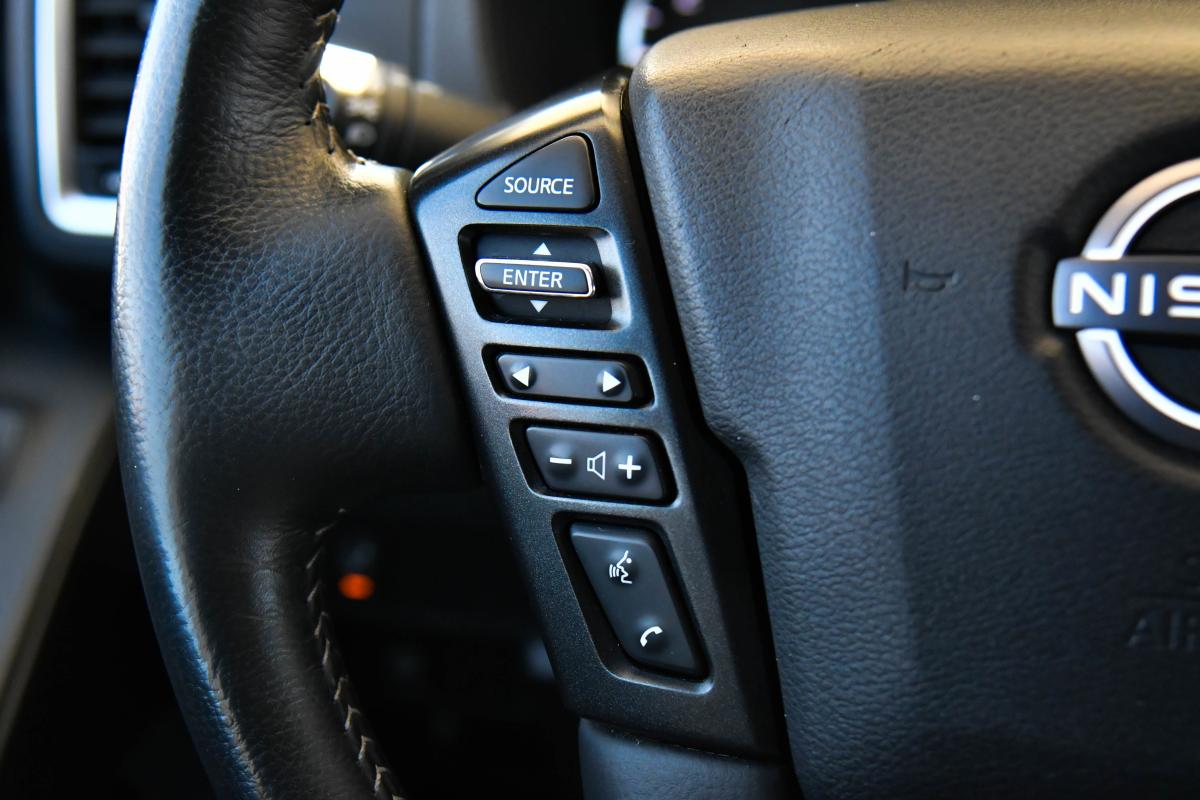 This Nissan Frontier has a dependable Regular Unleaded V-6 3.8 L/231 engine powering this Automatic transmission. Only 14,537 Miles! DEEP BLUE PEARL, CHARCOAL, PREMIUM CLOTH SEAT TRIM, CHARCOAL, FRONT & REAR LEATHER SEAT TRIM (1ST/2ND ROWS).*This Nissan Frontier Features the Following Options *[V01] TECHNOLOGY PACKAGE -inc: Rear Sonar System, Rear Automatic Braking (RAB), High Beam Assist (HBA), Blind Spot Warning (BSW), Rear Cross Traffic Alert (RCTA), Intelligent Cruise Control (ICC), Lane Departure Warning (LDW), [K11] TOW PACKAGE: HITCH, TOW HARNESS , [L93] CARPETED FLOOR MATS, [F96] ELECTRONIC TAILGATE LOCK, [B92] SPLASH GUARDS, Wheels: 17 Alloy -inc: Type A, Variable Intermittent Wipers, Urethane Gear Shifter Material, Trip Computer, Transmission: 9-Speed Automatic.