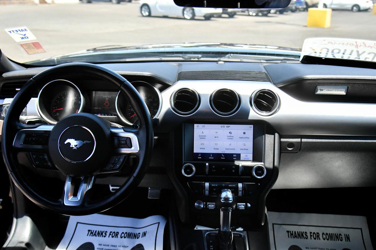 Scores 24 Highway MPG and 15 City MPG! This Ford Mustang delivers a Premium Unleaded V-8 5.0 L/302 engine powering this Automatic transmission. ENGINE: 5.0L TI-VCT V8 -inc: Port Fueled Direct Injection (PFDI) (STD), Wheels: 18 x 8 Machined-Face Aluminum -inc: high-gloss ebony black-painted pockets, Wheels w/Locks.*This Ford Mustang Comes Equipped with These Options *Trunk Rear Cargo Access, Trip Computer, Transmission: 6-Speed Manual -inc: dual mass flywheel, twin disc clutch and rev matching, Tires: 235/50ZR18 BSW AS, Tire Specific Low Tire Pressure Warning, Tire mobility kit, Strut Front Suspension w/Coil Springs, Streaming Audio, Speed Sensitive Rain Detecting Variable Intermittent Wipers, Side Impact Beams.