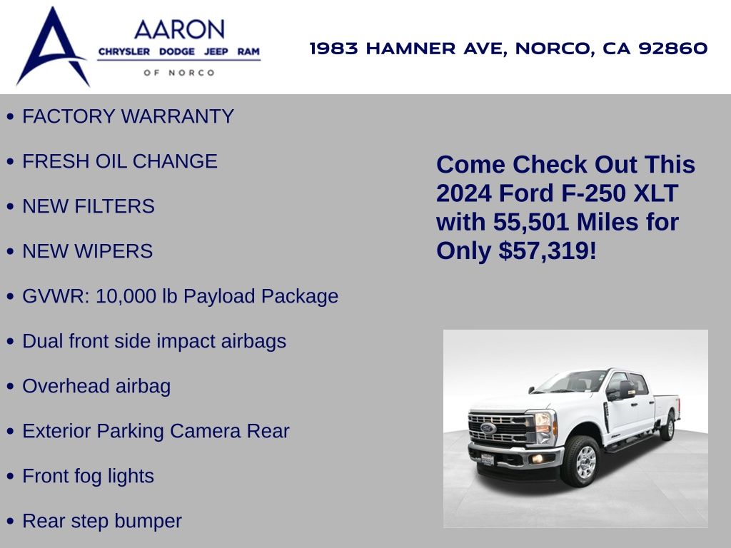 FACTORY WARRANTY, FRESH OIL CHANGE, NEW FILTERS, NEW WIPERS, F-250 SuperDuty XLT, 4D Crew Cab, Power Stroke 6.7L V8 DI 32V OHV Turbodiesel, 10-Speed Automatic, 4WD, Alloy wheels, Dual front side impact airbags, Exterior Parking Camera Rear, Front fog lights, GVWR: 10,000 lb Payload Package, Overhead airbag, Rear step bumper, Wheels: 18" Sparkle Silver Painted Cast Aluminum.Clean CARFAX.CARFAX One-Owner.