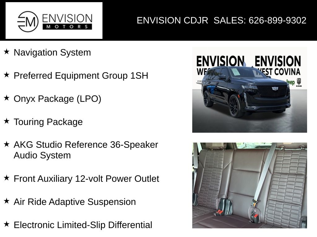WE SPECIALIZE IN ALL CREDIT PROFILES! See what we can do for you! Call to find out (626) 899-9302.4WD, Dark Auburn With Jet Black Accents Leather, Adaptive Cruise Control, Air Ride Adaptive Suspension, AKG Studio Reference 36-Speaker Audio System, Automatic Seat Belt Tightening, Automatic Stop/Start, Body-Color Door Handles, Door Lock & Latch Shields, Electronic Limited-Slip Differential, Enhanced Automatic Emergency Braking, Enhanced Automatic Parking Assist, Floor Console w/Covered Storage, Front Auxiliary 12-volt Power Outlet, Glass Breakage Sensor, Gloss Black Escalade Nameplate (LPO), Hitch Guidance w/Hitch View, Illuminating Front & Rear Sill Plates, Integrated Trailer Brake Controller, Monochrome Cadillac Emblems (LPO), Navigation System, Onyx Package (LPO), Platinum Interior Trim, Power Panoramic Tilt-Sliding Sunroof, Preferred Equipment Group 1SH, Rear Camera Mirror, Rear Camera Mirror Washer, Rear Cross Traffic Alert, Rear Seat Entertainment System, Reconfigurable Full-Color Head-Up Display, Reverse Automatic Braking, Running Board Assist Steps, Smart Trailer Integration Indicator, Soft Closing Front & Rear Doors, Start/Stop System Disable Button, Theft-Deterrent Alarm System, Touring Package, Trailer Side Blind Zone Alert, Vehicle Inclination Sensor, Vehicle Interior Movement Sensor, Wheels: 22" 12-Spoke Gloss Black Alloy (LPO), Wheels: 22" Interim (LPO).Black Raven2022 Cadillac Escalade Sport Platinum 4WD 10-Speed Automatic 6.2L V8**********All Pricing and Advertised Prices for any/all vehicles offered for sale does not include dealer installed accessories which can be purchased for an additional cost.********** The Factory Rebates may not be available on this vehicle if you elect to take advantage of a Special Alternative APR or Special Lease program. Some Factory Rebates are California Resident specific and may vary for residents of other states. NO sales to Dealers, Brokers or Exporters. For out of state purchase, customers must be present to purchase. If shipping is required, dealership must facilitate; no exceptions. Please contact us for special Multi-Vehicle or Fleet pricing. Prices are plus government fees and taxes, any finance charges, $85 documentary fee, $29 electronic registration fee, any emission testing charge and $1.75 per new tire state tire fee. *** We make every effort to provide accurate information, but please verify before purchasing. Leasing & financing available on approved credit. Trade-ins accepted. Subject to prior sale.