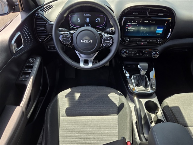 CARFAX One-Owner.Priced below KBB Fair Purchase Price!Odometer is 1886 miles below market average!27/33 City/Highway MPGGrey 2024 Kia Soul EX FWD CVT 2.0L I4 DOHCIf you don't drive here, you can't save here!Price may not include recon fee. 4-Wheel Disc Brakes, 6 Speakers, 6.5J x 17" Alloy Wheels, ABS brakes, Air Conditioning, Alloy wheels, AM/FM radio: SiriusXM, Apple CarPlay & Android Auto, Auto High-beam Headlights, Automatic temperature control, Brake assist, Bumpers: body-color, Cargo Tray Seatback Up, Carpeted Floor Mats, Compass, Delay-off headlights, Driver door bin, Driver vanity mirror, Dual front impact airbags, Dual front side impact airbags, Electronic Stability Control, Emergency communication system, Exterior Parking Camera Rear, Front anti-roll bar, Front Bucket Seats, Front Center Armrest, Front dual zone A/C, Front reading lights, Front wheel independent suspension, Fully automatic headlights, Heated door mirrors, Heated Front Bucket Seats, Heated front seats, Illuminated entry, Illuminated Scuff Plates, Leather Shift Knob, Leather steering wheel, Lifestyle Hitch, Low tire pressure warning, Navigation System, Occupant sensing airbag, Outside temperature display, Overhead airbag, Overhead console, Panic alarm, Passenger door bin, Passenger vanity mirror, Power door mirrors, Power driver seat, Power moonroof, Power steering, Power windows, Radio data system, Radio: AM/FM/MP3/HD Audio System, Rear seat center armrest, Rear window defroster, Rear window wiper, Remote keyless entry, Speed control, Speed-sensing steering, Split folding rear seat, Sports Pedal, Steering wheel mounted audio controls, Tachometer, Telescoping steering wheel, Tilt steering wheel, Traction control, Trip computer, Variably intermittent wipers, and Woven & Tricot Cloth Seat Trim.