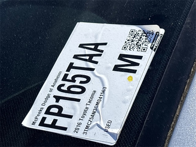 INTERIOR & EXTERIOR PROFESSIONALLY DETAILED FOR DELIVERY, MCPEEK CHRYSLER DODGE JEEP RAM FAMILY OWNED AND OPERATED SINCE 1961 !!!!!, 4WD.Silver Sky Metallic 2016 Toyota Tacoma SR V6 4WD 6-Speed AutomaticAwards: * 2016 KBB.com Best Buy Awards Finalist * 2016 KBB.com Best Resale Value AwardsReceive Free lube and oil filter changes for up to 45,000 miles for 3 years!!! McPeek's Dodge of Anahiem 1221 S. Auto Center Drive Anahiem, CA 92806 714-262-4902.