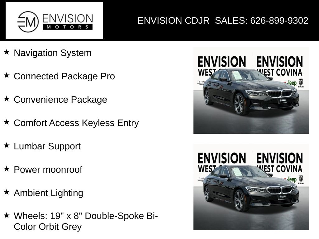 WE SPECIALIZE IN ALL CREDIT PROFILES! See what we can do for you! Call to find out (626) 899-9302.Clean CARFAX.Odometer is 16426 miles below market average! 26/36 City/Highway MPG Ambient Lighting, Comfort Access Keyless Entry, Connected Package Pro, Convenience Package, Lumbar Support, Navigation System, Power moonroof, Wheels: 19" x 8" Double-Spoke Bi-Color Orbit Grey.Jet Black2021 BMW 3 Series 330i RWD 8-Speed Automatic Sport 2.0L 4-Cylinder DOHC 16V Turbocharged**********All Pricing and Advertised Prices for any/all vehicles offered for sale does not include dealer installed accessories which can be purchased for an additional cost.********** The Factory Rebates may not be available on this vehicle if you elect to take advantage of a Special Alternative APR or Special Lease program. Some Factory Rebates are California Resident specific and may vary for residents of other states. NO sales to Dealers, Brokers or Exporters. For out of state purchase, customers must be present to purchase. If shipping is required, dealership must facilitate; no exceptions. Please contact us for special Multi-Vehicle or Fleet pricing. Prices are plus government fees and taxes, any finance charges, $85 documentary fee, $29 electronic registration fee, any emission testing charge and $1.75 per new tire state tire fee. *** We make every effort to provide accurate information, but please verify before purchasing. Leasing & financing available on approved credit. Trade-ins accepted. Subject to prior sale.