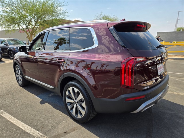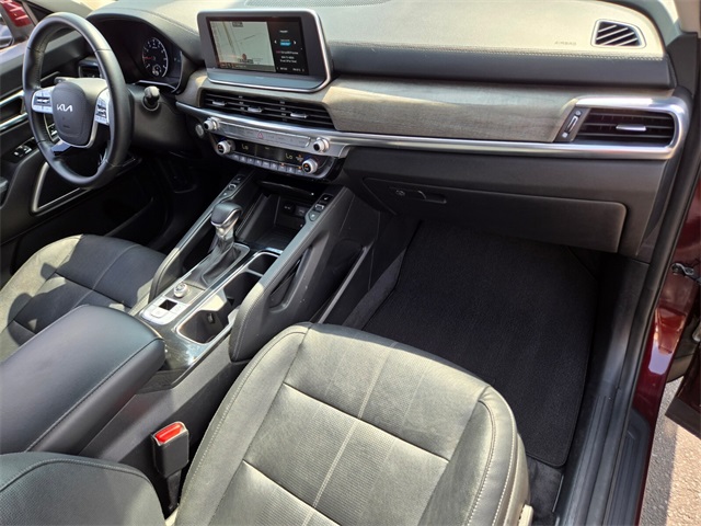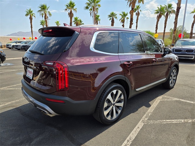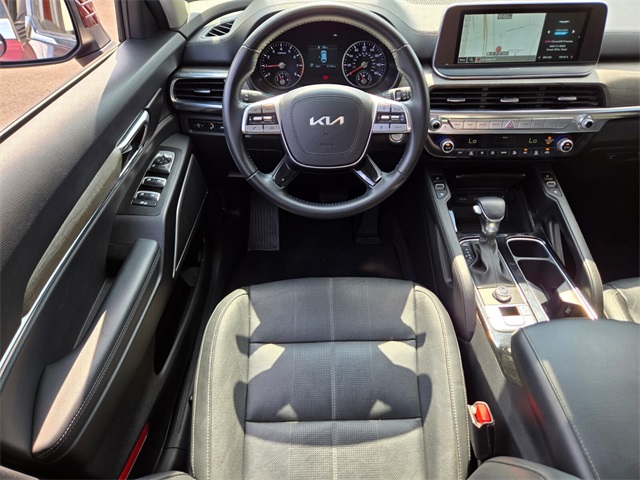 CARFAX One-Owner.Priced below KBB Fair Purchase Price!Odometer is 1212 miles below market average!20/26 City/Highway MPGSangria 2022 Kia Telluride EX FWD 8-Speed Automatic 3.8L V6 DOHCIf you don't drive here, you can't save here!Price may not include recon fee. EX Premium Package (20" x 7.5" Machined Alloy Wheels, 2nd Row Captain Chairs, LED Headlamps, and Satin Chrome Roof Rails), 3.648 Axle Ratio, 3rd row seats: split-bench, 4-Wheel Disc Brakes, 6 Speakers, ABS brakes, Air Conditioning, Alloy wheels, AM/FM radio: SiriusXM, Apple CarPlay & Android Auto, Auto-dimming Rear-View mirror, Automatic temperature control, Brake assist, Bumpers: body-color, Cargo Seatback Up Mat, Carpeted Floor Mats, Chrome Wheel Lock, Compass, Delay-off headlights, Driver door bin, Driver vanity mirror, Dual front impact airbags, Dual front side impact airbags, Electronic Stability Control, Emergency communication system: 911 Connect, Four wheel independent suspension, Front anti-roll bar, Front Bucket Seats, Front Center Armrest, Front dual zone A/C, Front reading lights, Fully automatic headlights, Heated & Ventilated Front Bucket Seats, Heated door mirrors, Heated front seats, Illuminated entry, Knee airbag, Leather Seat Trim, Leather Shift Knob, Leather steering wheel, Low tire pressure warning, Navigation System, Occupant sensing airbag, Outside temperature display, Overhead airbag, Overhead console, Panic alarm, Passenger door bin, Passenger vanity mirror, Power door mirrors, Power driver seat, Power Liftgate, Power moonroof, Power passenger seat, Power steering, Power windows, Radio data system, Radio: AM/FM Display Audio System, Rear air conditioning, Rear anti-roll bar, Rear audio controls, Rear reading lights, Rear seat center armrest, Rear window defroster, Rear window wiper, Reclining 3rd row seat, Remote keyless entry, Roof rack: rails only, Security system, Smart Key w/ Push Button and Remote Start, Speed control, Speed-sensing steering, Split folding rear seat, Spoiler, Steering wheel mounted audio controls, Tachometer, Telescoping steering wheel, Tilt steering wheel, Traction control, Trip computer, Turn signal indicator mirrors, Variably intermittent wipers, Ventilated front seats, and Wheels: 18" x 7.5" Machined Alloy.
