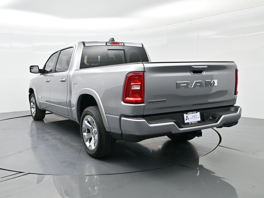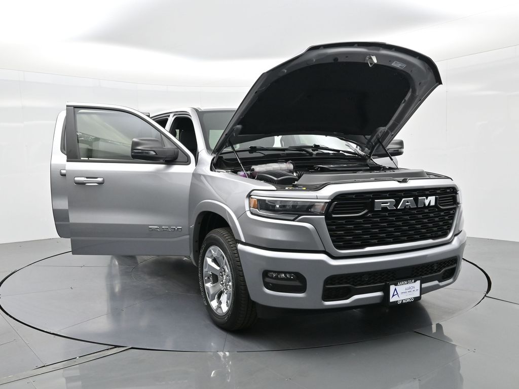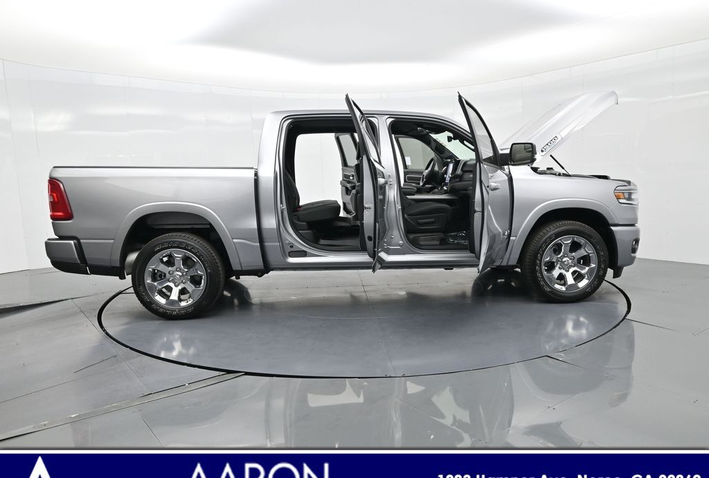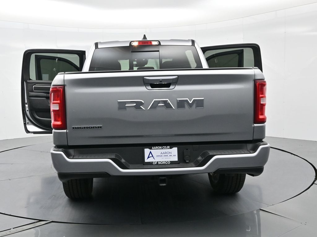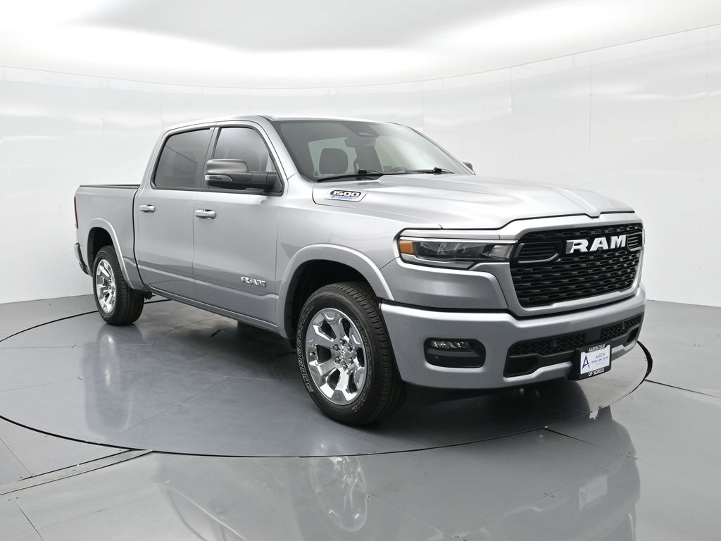 Introducing the bold and refined 2025 Ram 1500 Big Horn Crew Cab 4x2, an exceptionally well-equipped full-size pickup with just 3,456 miles and a spotless 1-owner Carfax history. Powered by the proven 3.6L Pentastar V6 engine with eTorque and paired to a smooth 8-speed automatic transmission, this Ram delivers confident everyday performance with efficiency and reliability. Designed for versatility and comfort, it offers an impressive EPA-estimated 20 MPG city / 25 MPG highway, making it a smart choice for both work and weekend driving. The striking Billet Silver Metallic Clear-Coat exterior is complemented by the optional Sport Appearance Package and Black Interior Accents, giving it a confident and modern stance. Inside, the Big Horn impresses with its spacious Deluxe Cloth Bucket Seat cabin and loaded tech including the upgraded Uconnect 5 NAV system with massive 12-inch touchscreen, wireless Apple CarPlay/Android Auto, integrated navigation, voice command, and SiriusXM 360L with 3-month trial subscription. Stay connected and in control with the 7-inch full-color digital driver display, 115V auxiliary power outlet, and dual-zone auto climate control. Convenience features include remote start, power-sliding rear window, automatic-dimming rearview mirror, and rear under-seat storage bins, while the Heated Front Seats, Heated Steering Wheel, and 8-way Power Driver Seat elevate comfort on colder mornings. This truck is also equipped with the Big Horn Level 2 Equipment Group, bundling advanced driver aids like ParkSense Front & Rear Park-Assist, ParkView Backup Camera, Blind Spot and Cross-Path Detection, and Full-Speed Forward-Collision Warning Plus. Outside, this Ram rides on premium 20-inch polished aluminum wheels with all-season tires, features automatic LED headlamps, chrome grille surround, power-folding heated mirrors, and a factory spray-in bed-liner with a Class IV receiver hitch for towing confidence. The 2025 Ram 1500 Big Horn sets the benchmark for comfort, technology, and performance in a rear-wheel-drive configuration thats ready for everyday driving or weekend towing. Backed by a 5-year/60,000-mile Powertrain Warranty and built for those who demand strength with style, this low-mileage Ram offers unbeatable value and modern capability. Contact us today to schedule a test drive or secure this like-new Big Horn before its gone. Premium full-size pickups in this condition and price point don't last long!