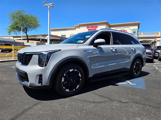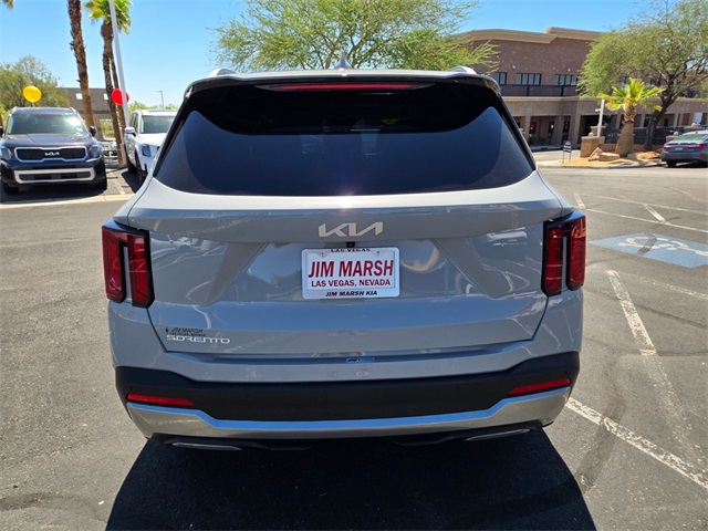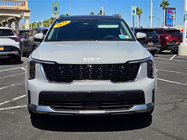 CARFAX One-Owner.Odometer is 3771 miles below market average!23/31 City/Highway MPGWolf Gray 2024 Kia Sorento S FWD 8-Speed Automatic 2.5L I4 DGI DOHC 16V LEV3-SULEV30 191hpIf you don't drive here, you can't save here!Price may not include recon fee. Panoramic Sunroof Package (LED Interior Lighting and Panoramic Power Sunroof w/Power Sunshade), 3.798 Axle Ratio, 3rd row seats: split-bench, 4-Wheel Disc Brakes, 6 Speakers, ABS brakes, Air Conditioning, Alloy wheels, AM/FM radio: SiriusXM, Apple CarPlay & Android Auto, Auto High-beam Headlights, Automatic temperature control, Brake assist, Bumpers: body-color, Carpeted Floor Mats, Delay-off headlights, Driver door bin, Driver vanity mirror, Dual front impact airbags, Dual front side impact airbags, EC Mirror w/HomeLink, Electronic Stability Control, Emergency communication system: 911 Connect, Exterior Parking Camera Rear, Four wheel independent suspension, Front anti-roll bar, Front Bucket Seats, Front Center Armrest, Front dual zone A/C, Front fog lights, Front reading lights, Fully automatic headlights, Heated door mirrors, Heated Front Bucket Seats, Heated front seats, Illuminated entry, Knee airbag, Leather Shift Knob, Leather steering wheel, Low tire pressure warning, Navigation System, Occupant sensing airbag, Outside temperature display, Overhead airbag, Overhead console, Panic alarm, Passenger door bin, Passenger vanity mirror, Power door mirrors, Power driver seat, Power steering, Power windows, Radio data system, Radio: AM/FM Audio System, Rear anti-roll bar, Rear reading lights, Rear seat center armrest, Rear side impact airbag, Rear window defroster, Rear window wiper, Remote keyless entry, Security system, Smart Key w/ Push Button and Remote Start, Speed control, Speed-sensing steering, Split folding rear seat, Spoiler, Steering wheel mounted audio controls, SynTex Artificial Leather Seat Trim, Tachometer, Telescoping steering wheel, Tilt steering wheel, Traction control, Trip computer, Turn signal indicator mirrors, Variably intermittent wipers, and Wheels: 7.5J x 18" Alloy w/Machine Finish.