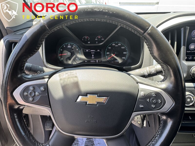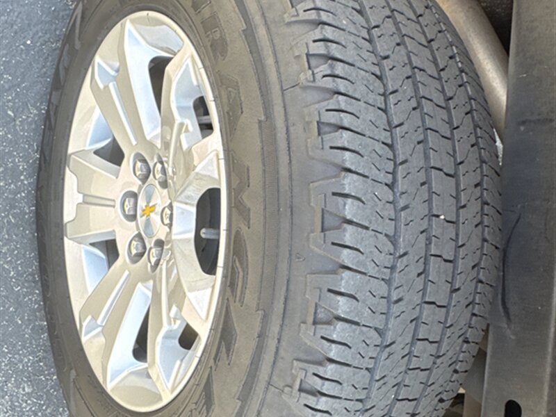 INSTALLED FEATURES: Air filtration, Front air conditioning, Front air conditioning zones: single, Airbag deactivation: occupant sensing passenger, Front airbags: dual, Side airbags: front, Side curtain airbags: front / rear, Antenna type: diversity / mast, Auxiliary audio input: Bluetooth / iPod/iPhone / jack / USB, Radio: AM/FM / touch screen display, Radio data system, Satellite radio: SiriusXM, Speed sensitive volume control, Total speakers: 6, ABS: 4-wheel, Braking assist, Electronic brakeforce distribution, Front brake type: ventilated disc, Power brakes, Rear brake type: ventilated disc, Floor mat material: carpet, Floor material: carpet, Floor mats: front / rear, Interior accents: chrome, Shift knob trim: urethane, Steering wheel trim: leather, Assist handle: front / rear, Capless fuel filler system, Center console: front console with armrest and storage, Cruise control, Cupholders: front / rear, Multi-function remote: keyless entry / panic alarm, One-touch windows: 1, Overhead console: front, Power outlet(s): 12V front / USB front / USB rear, Power steering: variable/speed-proportional, Reading lights: front, Rearview mirror: auto-dimming, Steering wheel: tilt and telescopic, Steering wheel mounted controls: audio / cruise control / multi-function / phone / voice control, Storage: door pockets / in dash / sunglasses holder / under rear seats, Vanity mirrors: dual illuminating, Bumper detail: rear step, Door handle color: body-color, Front bumper color: body-color, Grille color: black with chrome accents, Mirror color: body-color, Pickup bed light, Rear bumper color: body-color, Side door type: dual rear-hinged access, Tailgate: lift assist / power locking, Window trim: chrome, Connected in-car apps: app marketplace integration, Infotainment: Chevrolet Infotainment System, Infotainment screen size: 8 in., Smartphone integration: Android Auto / Apple CarPlay, Clock, Digital odometer, External temperature display, Fuel economy display: MPG / range, Gauge: oil pressure / tachometer, Instrument cluster screen size: 4.2 in., Multi-function display, Trip odometer, Warnings and reminders: low fuel level / low oil level / maintenance due, Daytime running lights, Headlights: auto delay off / auto on/off / halogen, Side mirror adjustments: manual folding / power, Battery: maintenance-free, Battery saver, Camera system: rearview, Check rear seat reminder, Child seat anchors: LATCH system, Programmable safety key, Rearview monitor: in dash, Emergency locking retractors: front, Front seatbelts: 3-point, Rear seatbelts: 3-point, Seatbelt force limiters: front, Seatbelt pretensioners: front, Seatbelt warning sensor: front, Driver seat manual adjustments: reclining, Driver seat power adjustments: 6 / height, Front headrests: 2 / adjustable, Front seat type: bucket, Passenger seat manual adjustments: 2 / reclining, Rear headrests: 2 / fixed, Rear seat type: jumpseats, Upholstery: cloth, Anti-theft system: alarm / vehicle immobilizer, Power door locks: anti-lockout / auto-locking, Hill holder control, Stability control, Traction control, Trailer stability control, Front shock type: twin-tube gas, Front spring type: coil, Front stabilizer bar, Front struts, Front suspension classification: independent, Front suspension type: upper and lower control arms, Rear shock type: twin-tube gas, Rear spring type: leaf, Rear suspension classification: solid live axle, Rear suspension type: multi-leaf, Driver assistance app: roadside assistance, Electronic messaging assistance: voice operated / with read function, Hands-free phone call integration: voice operated, Satellite communications: OnStar / voice guided directions, Smart device app compatibility: myChevrolet with Connected Access, Smart device app function: maintenance status / vehicle location, Wi-Fi: hotspot, Wireless data link: Bluetooth, Spare tire mount location: underbody, Spare tire size: temporary, Spare wheel type: aluminum alloy, Tire Pressure Monitoring System, Wheels: aluminum alloy, Front wipers: variable intermittent, Power windows: safety reverse
