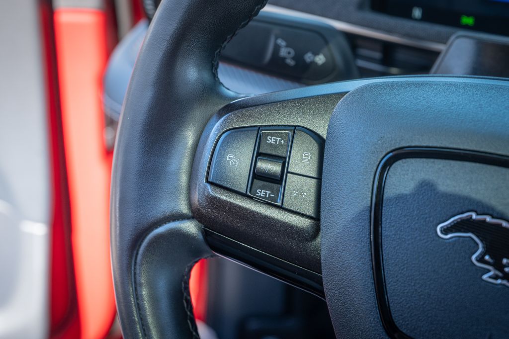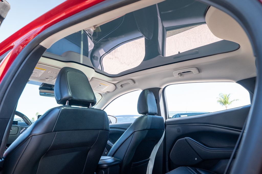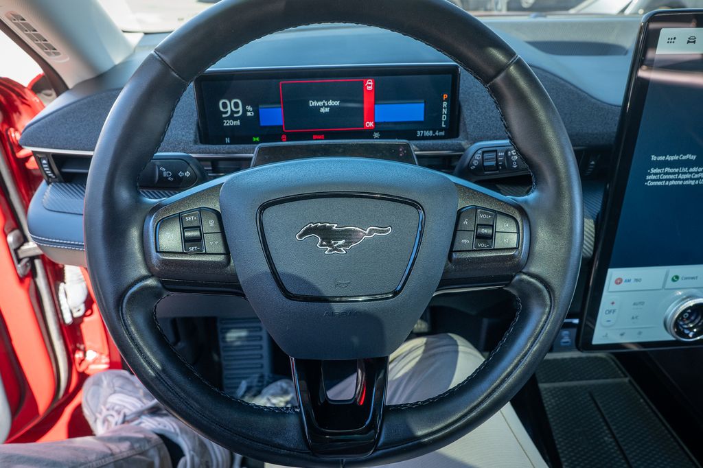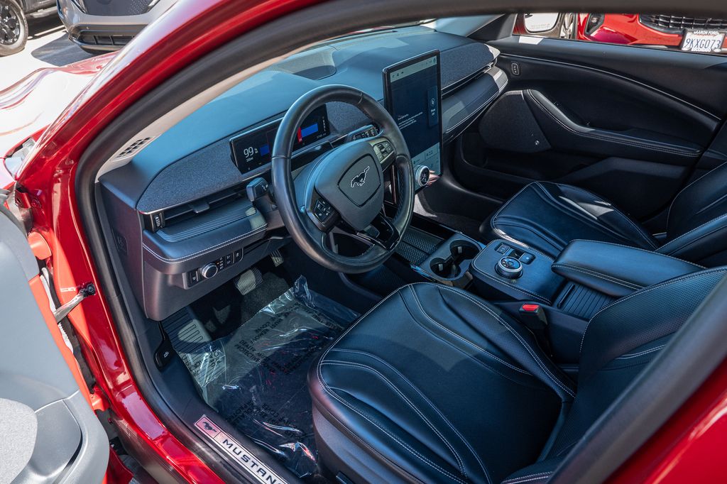Red 2022 Ford Mustang Mach-E Premium RWD Single-Speed Automatic Dual Electric Motor 10 Speakers, Alloy wheels, Apple CarPlay/Android Auto, Front Bucket Seats, Front dual zone A/C, Memory seat, Navigation system: Connected Navigation, Power driver seat, Power Liftgate, SiriusXM Radio w/360L, Speed control, Wheels: 19" Machined-Face Aluminum.Odometer is 4835 miles below market average! 110/96 City/Highway MPG