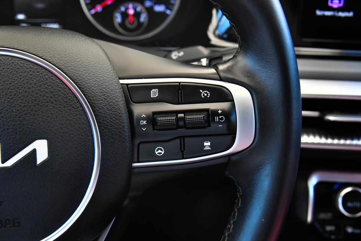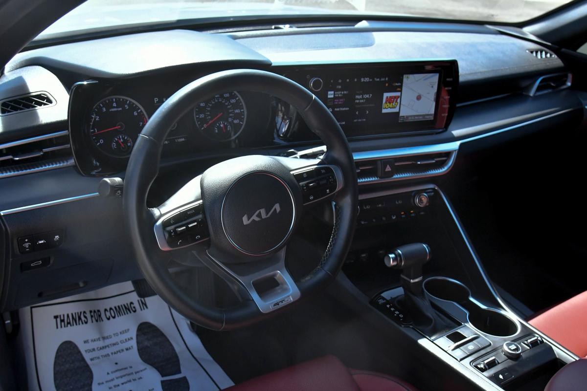 Only 11,057 Miles! Delivers 37 Highway MPG and 27 City MPG! This Kia K5 boasts a Intercooled Turbo Regular Unleaded I-4 1.6 L/98 engine powering this Automatic transmission. WOLF GRAY, GT-LINE RED INTERIOR PACKAGE, GT-LINE PREMIUM PACKAGE -inc: Smart Cruise Control w/Stop & Go, LED Projection Headlamps, Highway Driving Assist, Forward Collision Avoidance-Assist, cyclist and junction turning.*This Kia K5 Features the Following Options *GT-LINE PANORAMIC SUNROOF PACKAGE -inc: LED Interior Lighting, Panoramic Sunroof, Gloss Black Trim, gloss black b-pillar, windshield trim and shark fin , CARGO MAT, BLACK, CLOTH/SYNTEX SEAT TRIM -inc: GT-Line logo, Window Grid Antenna, Wheels: 18 Gloss Black Machined Finish Alloy, Variable Intermittent Wipers, Urethane Gear Shifter Material, Turn-By-Turn Navigation Directions, Trunk Rear Cargo Access, Trip Computer.