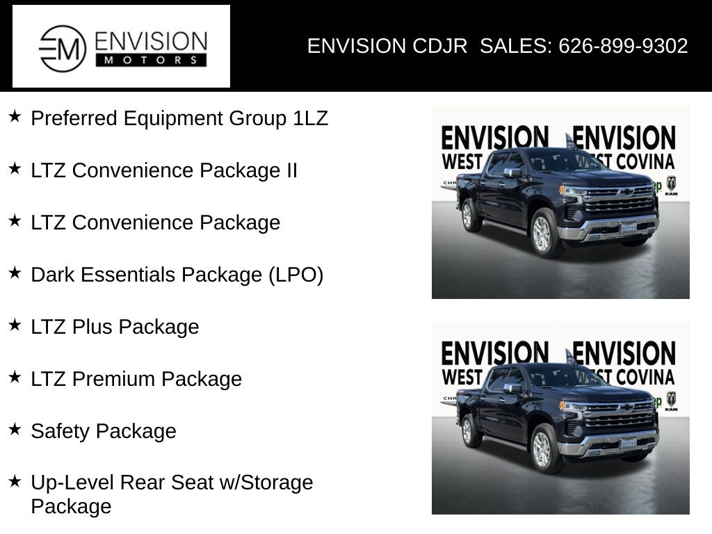 WE SPECIALIZE IN ALL CREDIT PROFILES! See what we can do for you! Call to find out (626) 899-9302.CARFAX One-Owner. Clean CARFAX.Odometer is 2631 miles below market average! 10-Speed Automatic, 4WD, Jet Black Leather, 10-Way Power Driver Seat w/Lumbar, 10-Way Power Passenger Seat Adjuster w/Lumbar, 12.3" Multicolor Reconfigurable Digital Display, 120-Volt Bed Mounted Power Outlet, 120-Volt Interior Power Outlet, 2 USB Data Ports, 2nd Row Heated Outboard Seats, Adaptive Cruise Control, Auto-Dimming Inside Rear-View Mirror, Auto-Locking Rear Differential, Black Name Plates (LPO), Bluetooth® For Phone, Chevrolet Connected Access Capable, Chrome Mirror Caps, Color-Keyed Carpeting Floor Covering, Dark Essentials Package (LPO), Deep-Tinted Glass, Driver Memory, Dual Rear USB Ports (Charge Only), Electric Rear-Window Defogger, Electrical Steering Column Lock, Electronic Cruise Control, Floor Mounted Center Console, Front Frame-Mounted Black Recovery Hooks, Front LED Fog Lamps, Front Rain-Sensing Wipers, Front Rubberized Vinyl Floor Mats, HD Surround Vision, Heated Driver & Front Outboard Passenger Seats, Heated Steering Wheel, High Capacity Suspension Package, Hitch Guidance, Hitch Guidance w/Hitch View, In-Vehicle Trailering System App, Integrated Trailer Brake Controller, Keyless Open & Start, LED Cargo Area Lighting, LTZ Convenience Package, LTZ Convenience Package II, LTZ Plus Package, LTZ Premium Package, OnStar & Chevrolet Connected Services Capable, Outside Heated Power-Adjustable Mirrors, Perimeter Lighting, Power Front Passenger Windows w/Express Up/Down, Power Front Windows w/Driver Express Up/Down, Power Rear Windows w/Express Down, Power Sliding Rear Window w/Rear Defogger, Power Sunroof, Power Tailgate, Power Tilt & Telescoping Steering Column, Preferred Equipment Group 1LZ, Premium Bose 7-Speaker Sound System, Rear Cross Traffic Braking, Rear Pedestrian Alert, Rear Rubberized-Vinyl Floor Mats, Rear Wheelhouse Liners, Remote Vehicle Starter System, Safety Alert Seat, Safety Package, SiriusXM w/360L, Standard Tailgate, Steering Wheel Audio Controls, Theft Deterrent System (Unauthorized Entry), Trailer Camera Provisions, Trailer Side Blind Zone Alert, Trailering Package, Ultrasonic Front & Rear Park Assist, Universal Home Remote, Up-Level Rear Seat w/Storage Package, Ventilated Driver & Front Passenger Seats, Wheels: 20" x 9" Sterling Silver Painted Aluminum, Wi-Fi Hot Spot Capable, Wireless Charging, Wrapped Steering Wheel.Dark Ash Metallic2024 Chevrolet Silverado 1500 LTZ 4WD 10-Speed Automatic EcoTec3 5.3L V8**********All Pricing and Advertised Prices for any/all vehicles offered for sale does not include dealer installed accessories which can be purchased for an additional cost.********** The Factory Rebates may not be available on this vehicle if you elect to take advantage of a Special Alternative APR or Special Lease program. Some Factory Rebates are California Resident specific and may vary for residents of other states. NO sales to Dealers, Brokers or Exporters. For out of state purchase, customers must be present to purchase. If shipping is required, dealership must facilitate; no exceptions. Please contact us for special Multi-Vehicle or Fleet pricing. Prices are plus government fees and taxes, any finance charges, $85 documentary fee, $29 electronic registration fee, any emission testing charge and $1.75 per new tire state tire fee. *** We make every effort to provide accurate information, but please verify before purchasing. Leasing & financing available on approved credit. Trade-ins accepted. Subject to prior sale.