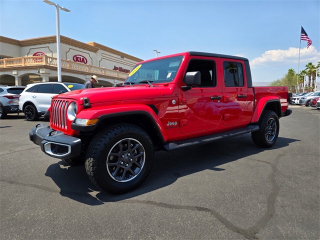 Recent Arrival!CARFAX One-Owner.Priced below KBB Fair Purchase Price!Firecracker Red Clearcoat 2021 Jeep Gladiator Overland 4WD 8-Speed Automatic 3.6L V6 24V VVTIf you don't drive here, you can't save here!Price may not include recon fee. 8.4" Radio & Premium Audio Group (1-Year SiriusXM Guardian Trial, 5-Year SiriusXM Traffic Service, 5-Year SiriusXM Travel Link Service, 8.4" Touchscreen Display, Alpine Premium Audio System, Auto-Dimming Rear-View Mirror, Emergency/Assistance Call, For Details, Visit DriveUconnect.com, GPS Navigation, HD Radio, Radio: Uconnect 4C Nav w/8.4" Display, SiriusXM Traffic Plus, and SiriusXM Travel Link), Cold Weather Group (Heated Front Seats and Heated Steering Wheel), Quick Order Package 24G, Trailer Tow Package (240 Amp Alternator, Class IV Hitch Receiver, Heavy-Duty Engine Cooling, and Trailer Hitch Zoom), 110 mph Vehicle Max Speed Calibration, 3.73 Rear Axle Ratio, 4-Wheel Disc Brakes, 400W Inverter, 8 Speakers, ABS brakes, Air Conditioning, Alloy wheels, AM/FM radio: SiriusXM, Apple CarPlay/Android Auto, Automatic temperature control, Black 3-Piece Hard Top, Brake assist, Compass, Delay-off headlights, Driver door bin, Driver vanity mirror, Dual front impact airbags, Dual front side impact airbags, Electronic Stability Control, Freedom Panel Storage Bag, Front anti-roll bar, Front Bucket Seats, Front Center Armrest w/Storage, Front dual zone A/C, Front fog lights, Front reading lights, Fully automatic headlights, Garage door transmitter, Heated door mirrors, Illuminated entry, Integrated roll-over protection, Leather steering wheel, Low tire pressure warning, Manufacturer's Statement of Origin, Normal Duty Plus Suspension, Occupant sensing airbag, Outside temperature display, Overland Cloth Bucket Seats, Panic alarm, ParkView Rear Back-Up Camera, Passenger door bin, Passenger vanity mirror, Power door mirrors, Power steering, Power windows, Premium Door Trim Panel, Radio data system, Radio: Uconnect 4 w/7" Display, Rear anti-roll bar, Rear reading lights, Rear Sliding Window, Rear Window Defroster, Remote keyless entry, Remote Start System, Security system, Speed control, Split folding rear seat, Steering wheel mounted audio controls, Tachometer, Telescoping steering wheel, Tilt steering wheel, Traction control, Trip computer, Variably intermittent wipers, Voltmeter, and Wheels: 18" x 7.5" Granite Crystal AluminuM.