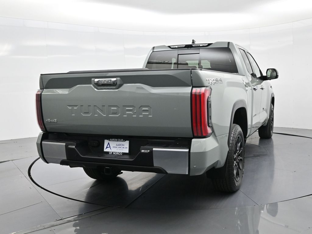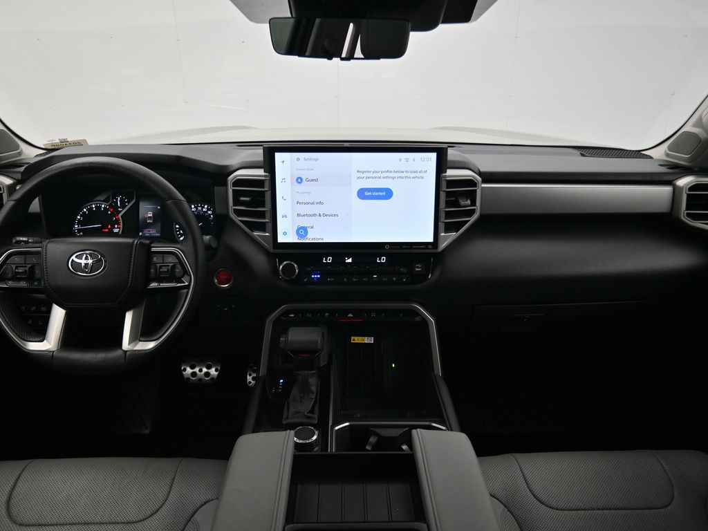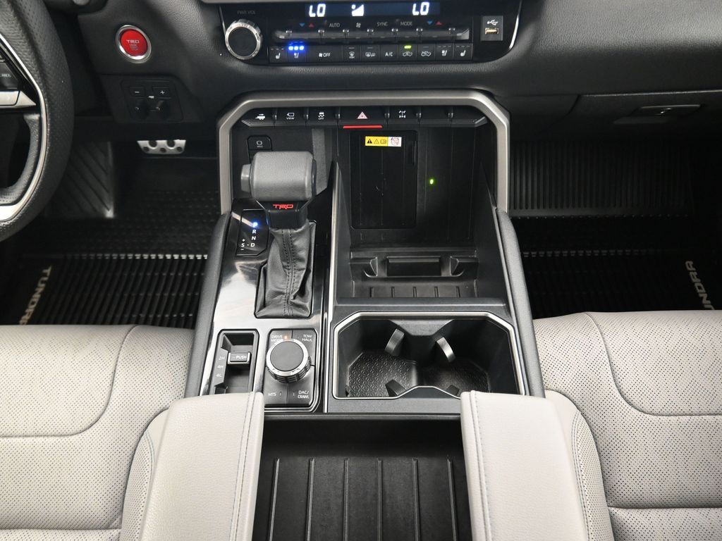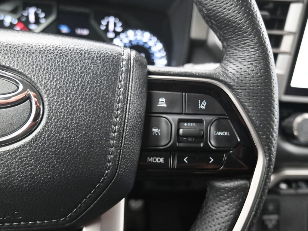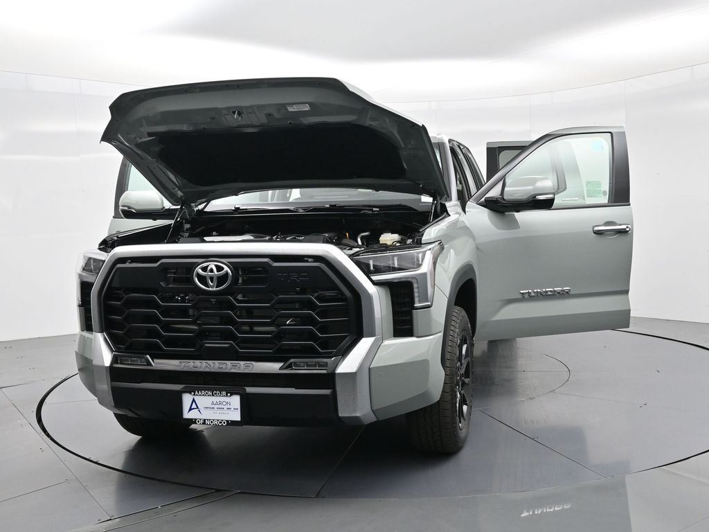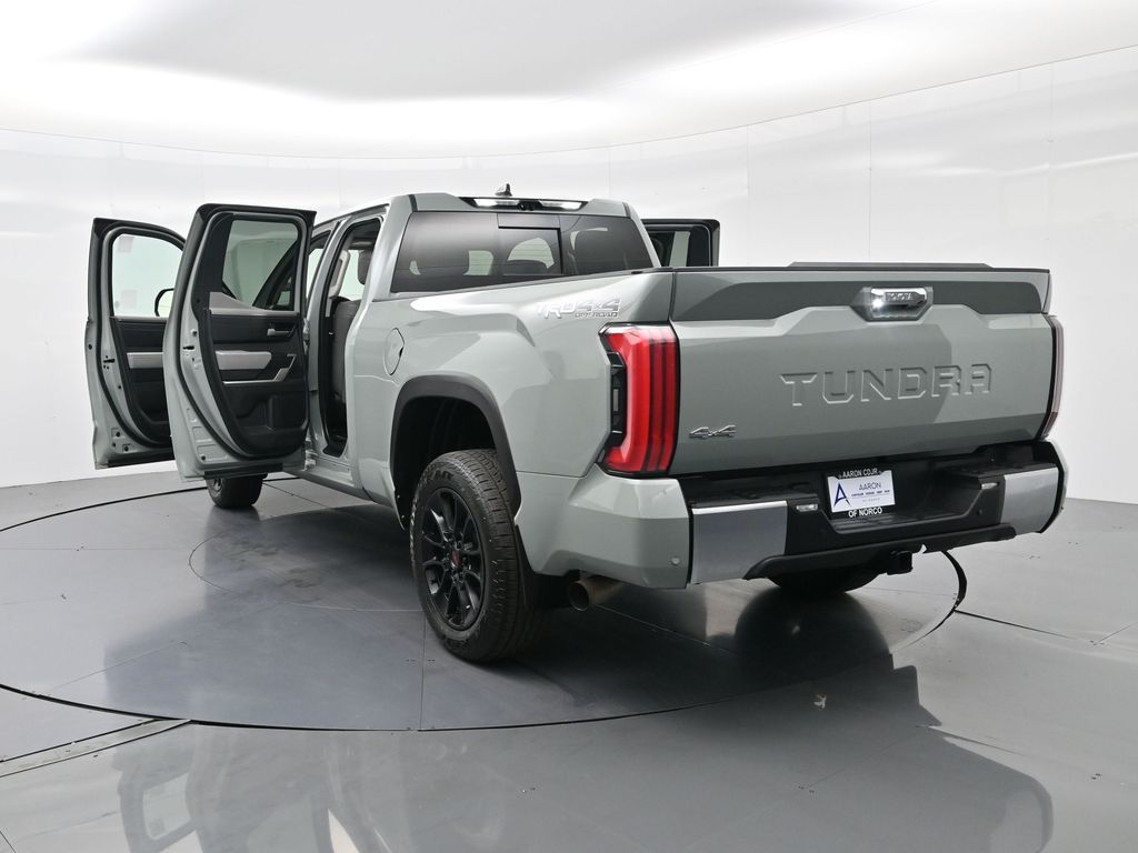 Built to lead with strength, comfort, and cutting-edge technology, this 2023 Toyota Tundra Limited 4x4 CrewMax is a powerhouse full-size pickup engineered for both hard work and premium daily driving. With only 11,212 miles and one previous owner, this well-equipped truck blends low-mileage value with the confidence of Toyotas engineering legacy. Powered by the robust 3.4L i-FORCE Twin-Turbo V6 engine paired with a 10-speed electronically controlled automatic transmission, this Tundra delivers an impressive 389 horsepower, responsive torque, and smooth shifts, all while offering solid efficiency with an EPA-estimated 17 MPG city and 22 MPG highway. The advanced 4WDemand part-time 4WD system with an electronically controlled transfer case, Multi-Terrain Select, and Crawl Control ensures youre ready for everything from job sites to trails. Dressed in Lunar Rock with bold 20-inch wheels, LED lighting, power-folding heated mirrors, and rugged TRD Off-Road Package, including Bilstein shocks, skid plates, and a locking rear differential, this Tundra makes a commanding statement. Inside, luxury meets durability with Boulder SofTex-trimmed heated and ventilated 8-way power front seats, a heated leather-wrapped steering wheel, a panoramic moonroof, and dual-zone automatic climate control. The cabin also features a massive 14-inch touchscreen, JBL premium audio, Apple CarPlay/Android Auto, navigation, Bluetooth, HomeLink, and a full suite of smart storage and charging solutions. Driver confidence is reinforced with Toyota Safety Sense 2.5, including Pre-Collision System with Pedestrian Detection, Lane Tracing Assist, Radar Cruise Control, Blind Spot Monitor with Rear Cross-Traffic Alert, and Parking Assist. Additional factory upgrades include the TRD Front Skid Plate, Limited Power and Premium Packages, all-weather floor liners, heated steering wheel, and PVM with BSM outer mirrors. With a maximum tow rating of 11,175 lbs, 1,820 lb payload capacity, and 4-/7-pin trailer connectors, this Tundra is work-ready from day one. Backed by Toyotas industry-leading 5-year/60,000-mile powertrain warranty, this Tundra Limited 4x4 offers a rare combination of luxury, utility, and reliability. Dont miss your chance to own one of the most sought-after trucks on the marketschedule your test drive today and experience the Toyota Tundra difference firsthand.