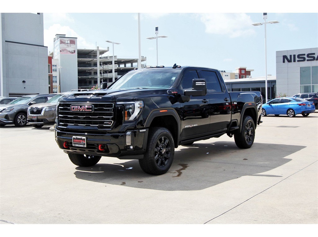 Central Houston Nissan is proud to present you with another True Market Priced Pre-Owned Vehicle. This 2024 GMC Sierra 2500HD AT4 is loaded with the following Factory Options: 10-Speed Automatic, 4WD, and Jet Black With Kalahari Accents Leather AT4 Preferred Package (Adaptive Cruise Control, LED Smoked Amber Roof Marker Lamps, Power Sliding Rear Window w/Defogger, and Universal Home Remote), Preferred Equipment Group 4SB (120-Volt Bed Mounted Power Outlet, 120-Volt Instrument Panel Power Outlet, 2 Charge-Only Rear USB Ports, 2 Charge/Data USB Ports Inside Center Console, 2 USB Ports, 2-Speed Active Transfer Case, Bed View Camera w/2 Trailer Camera Provisions, Bose Premium 7-Speaker Sound System, Deep-Tinted Glass, Electric Rear-Window Defogger, Floor-Mounted Center Console, Front Prem Floor Liners w/Removable Carpet Insert, Front Rain-Sensing Wipers, Gloss Black Header Grille & Grille Insert Bars, GMC Connected Access Capable, HD Surround Vision, Heated 2nd Row Outboard Seats, Heated Driver & Front Outboard Passenger Seats, Integrated Trailer Brake Controller, Keyless Open & Start, LED Cargo Area Lighting, Manual Tilt-Wheel/Telescoping Steering Column, OnStar & GMC Connected Services Capable, Power Front Passenger Windows w/Express Up/Down, Push Button Start, Rear Cross Traffic Alert, Rear Prem Floor Liners w/Removable Carpet Insert, Rear Wheelhouse Liners, Remote Vehicle Starter System, Safety Alert Seat, SiriusXM w/360L, Spray-On Bedliner w/AT4 Logo, Steering Wheel Audio Controls, Trailer Cam Provisions & Trailer Viewing Software, Trailer Side Blind Zone Alert, Ultrasonic Front & Rear Park Assist, Unauthorized Entry Theft-Deterrent System, Ventilated Driver & Front Passenger Seats, Wireless Charging, and Wireless Phone Projection), Technology Package (Inside Rearview Auto-Dimming Rear Camera Mirror and Multicolor 15" Diagonal Head-Up Display), X31 Off-Road Package (Hill Descent Control), 10-Speed Automatic, 4WD, Jet Black With Kalahari Accents Leather, 10-Way Power Driver Seat Adjuster w/Lumbar, 10-Way Power Passenger Seat Adjuster w/Lumbar, 1st & 2nd Rows All-Weather Floor Liners (LPO), 220-Amp Alternator, 3.42 Axle Ratio, 3.73 Rear Axle Ratio, 4-Wheel Disc Brakes, 7 Speakers, ABS brakes, Air Conditioning, Alloy wheels, AM/FM radio: SiriusXM with 360L, Apple CarPlay/Android Auto, Auto High-beam Headlights, Auto-dimming door mirrors, Auto-dimming Rear-View mirror, Automatic Emergency Braking, Automatic temperature control, Brake assist, Buckle to Drive, Bumpers: body-color, Compass, Delay-off headlights, Driver door bin, Driver Memory, Driver vanity mirror, Dual front impact airbags, Dual front side impact airbags, Electronic Stability Control, Engine Block Heater, Exhaust Brake, Following Distance Indicator, Forward Collision Alert, Front anti-roll bar, Front Bucket Seats, Front Center Armrest, Front dual zone A/C, Front fog lights, Front License Plate Kit, Front Pedestrian Braking, Front reading lights, Front wheel independent suspension, Fully automatic headlights, Heated door mirrors, Heated front seats, Heated rear seats, Heated steering wheel, Heavy-Duty 80 Amp Battery, Hitch Guidance w/Hitch View, Illuminated entry, In-Vehicle Trailering System App, IntelliBeam Automatic High Beam On/Off, Lane Departure Warning System, Low tire pressure warning, Memory seat, Occupant sensing airbag, Off-Road Suspension, Outside temperature display, Overhead airbag, Overhead console, Panic alarm, Passenger door bin, Passenger vanity mirror, Perforated Leather-Appointed Front Seat Trim, Pickup Box, Power door mirrors, Power driver seat, Power passenger seat, Power steering, Power windows, Premium audio system: Premium GMC Infotainment System, Radio: AM/FM w/Premium GMC Infotainment System, Rain sensing wipers, Rear reading lights, Rear seat center armrest, Rear step bumper, Rear window defroster, Remote keyless entry, Security system, Speed control, Speed-sensing steering, Split folding rear seat, Steering wheel mounted audio controls,