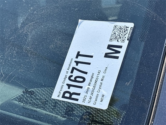 Granite Crystal Metallic Clearcoat 2025 Jeep Wrangler Sport S 4WD 8-Speed Automatic 3.6L V6 24V VVT INTERIOR & EXTERIOR PROFESSIONALLY DETAILED FOR DELIVERY, MCPEEK CHRYSLER DODGE JEEP RAM FAMILY OWNED AND OPERATED SINCE 1961 !!!!!.All prices are subject to change without notice. All vehicles subject to prior sale. Advertised price does not include Dealer Installed Accessories or Commercial Bed/Body Upfits. Please contact dealer to receive the most up to date pricing information and complete details. Price includes: $1500 - 2025 National Bonus Cash . Exp. 02/02/2026 $2000 - 2025 National Select Inventory Bonus Cash w/ 3FV . Exp. 02/02/2026 $2500 - 2025 National Retail Bonus Cash . Exp. 02/02/2026